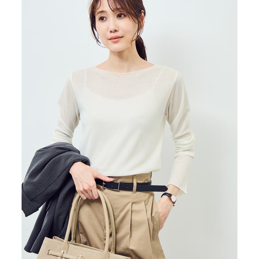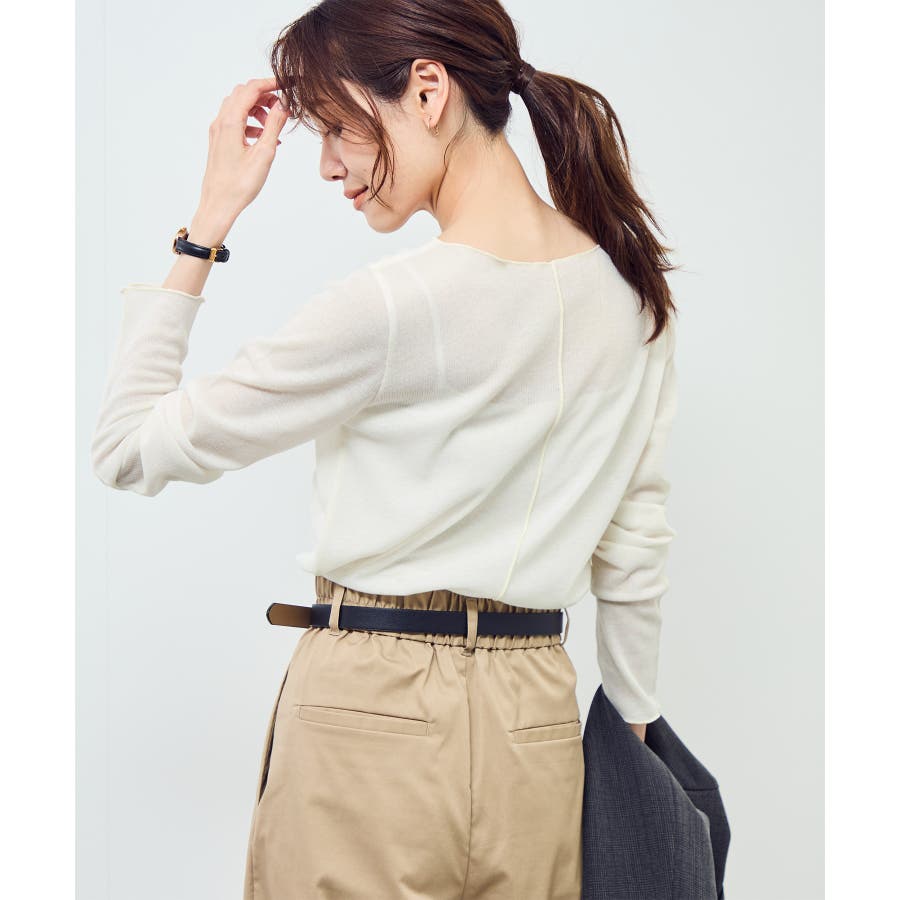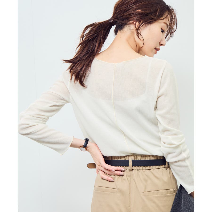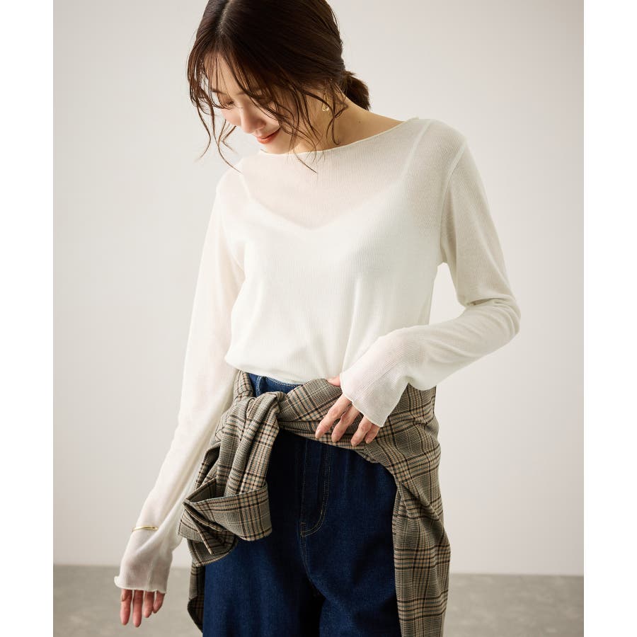 ・肌をほのかに透かしつつ、ラメの輝きで印象を引き上げるロングスリーブカットソー。