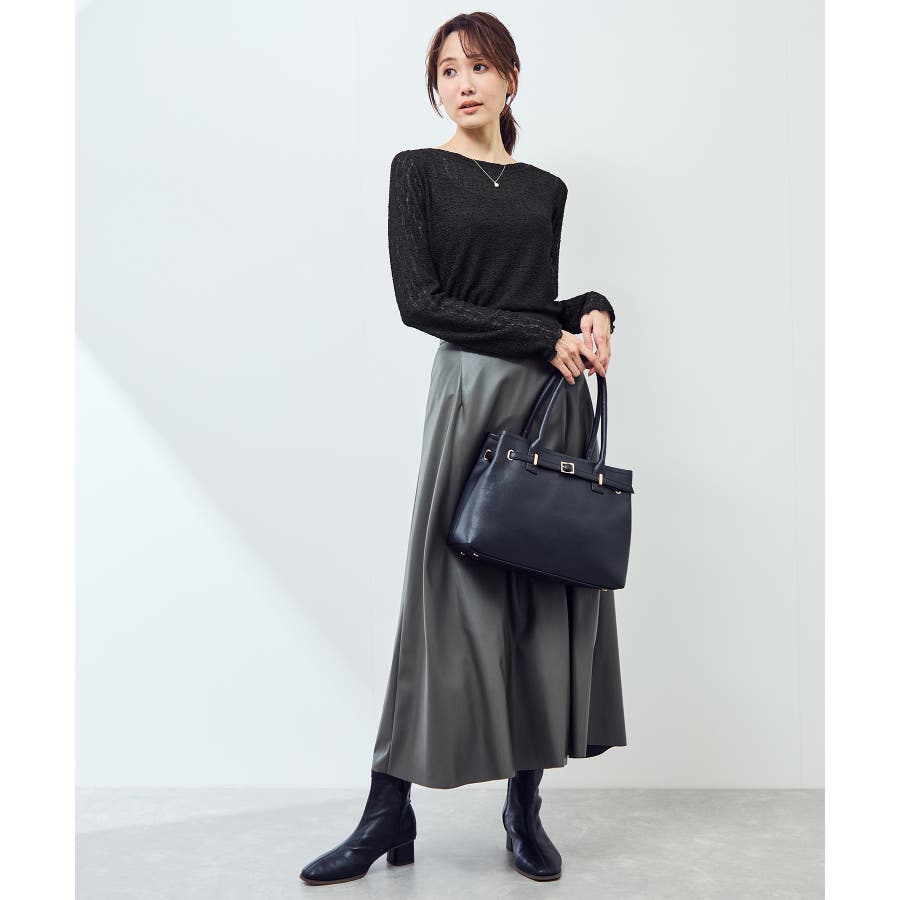 ・ロングスカート合わせでフェミニンな印象もアップ。