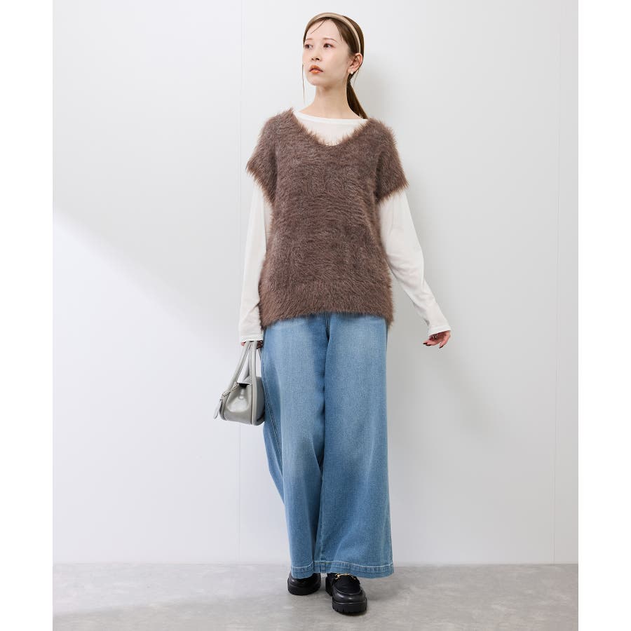 ・キャミソールやタンクトップの上に重ねて主役として着るのはもちろん、ジレやサロペット、Vネックニットのインナーとしても大活躍。ロングシーズン着回せる万能アイテム。