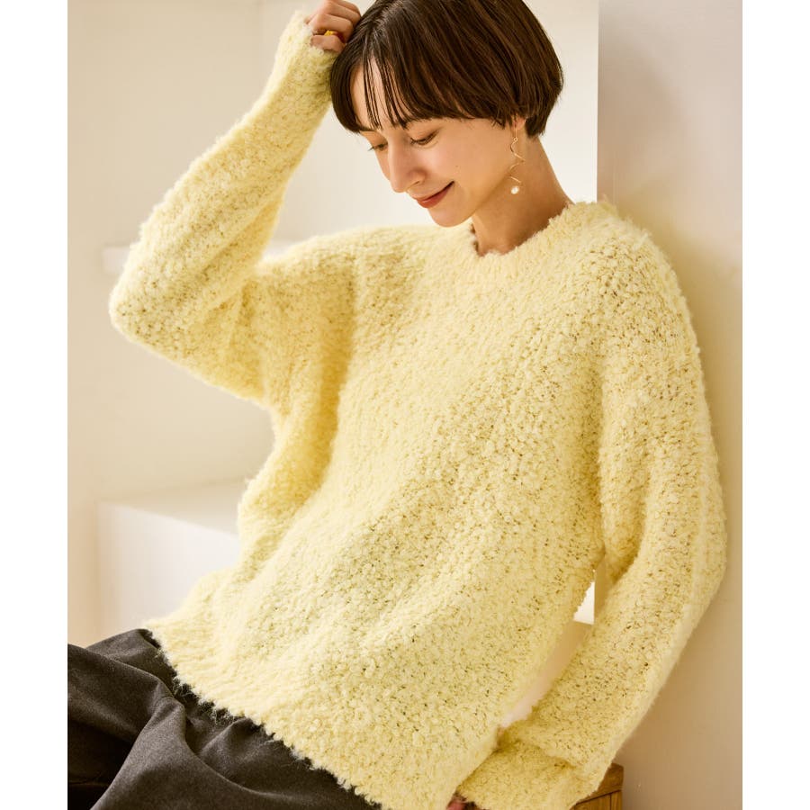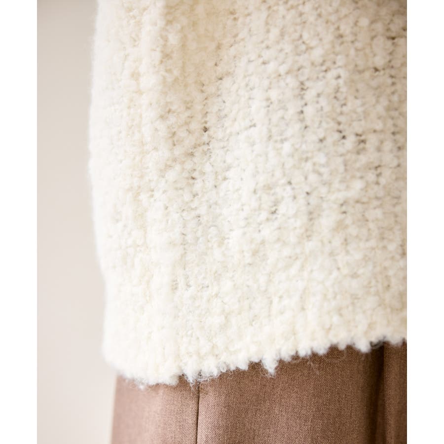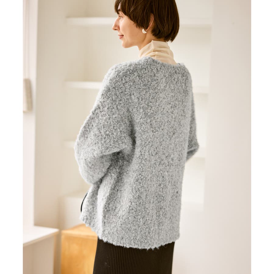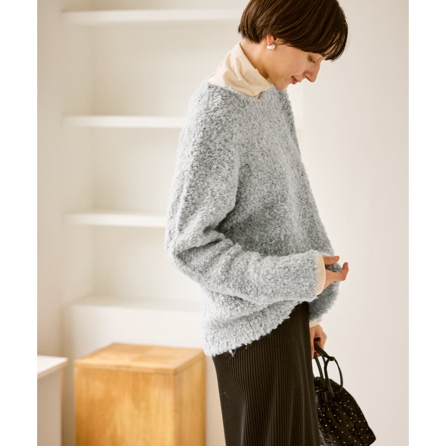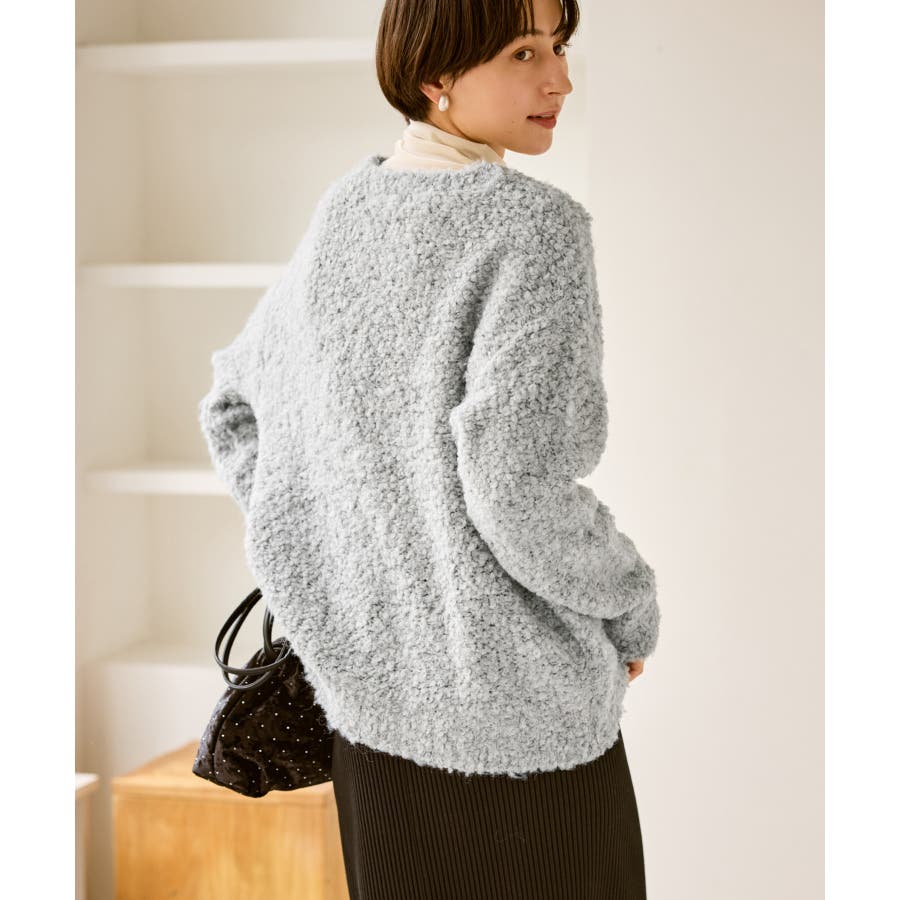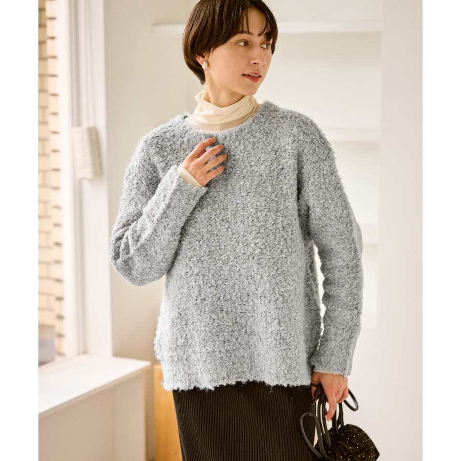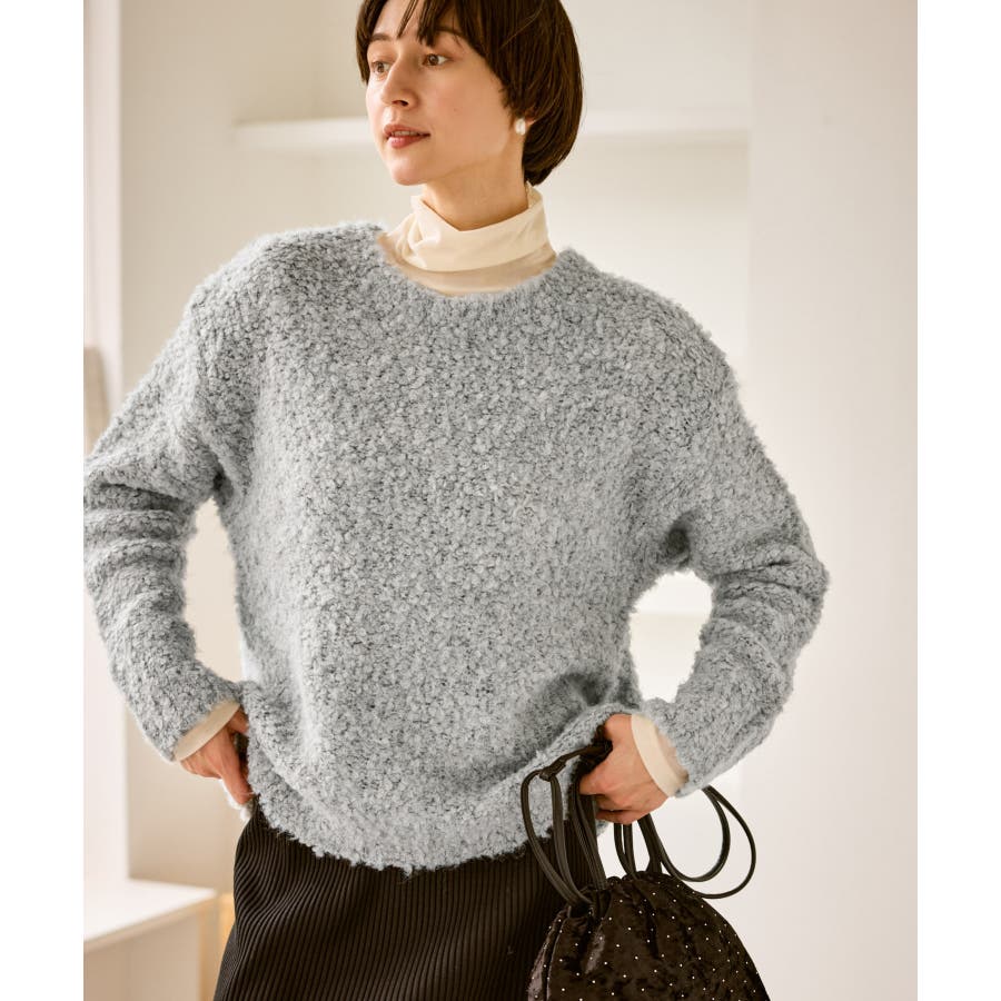 ・柔らかなブークレの質感。冬のスタイルに立体感をプラス。