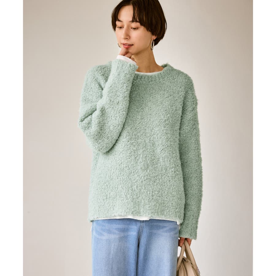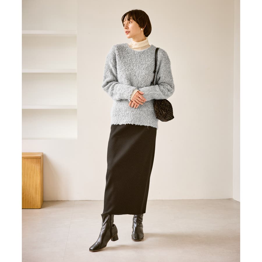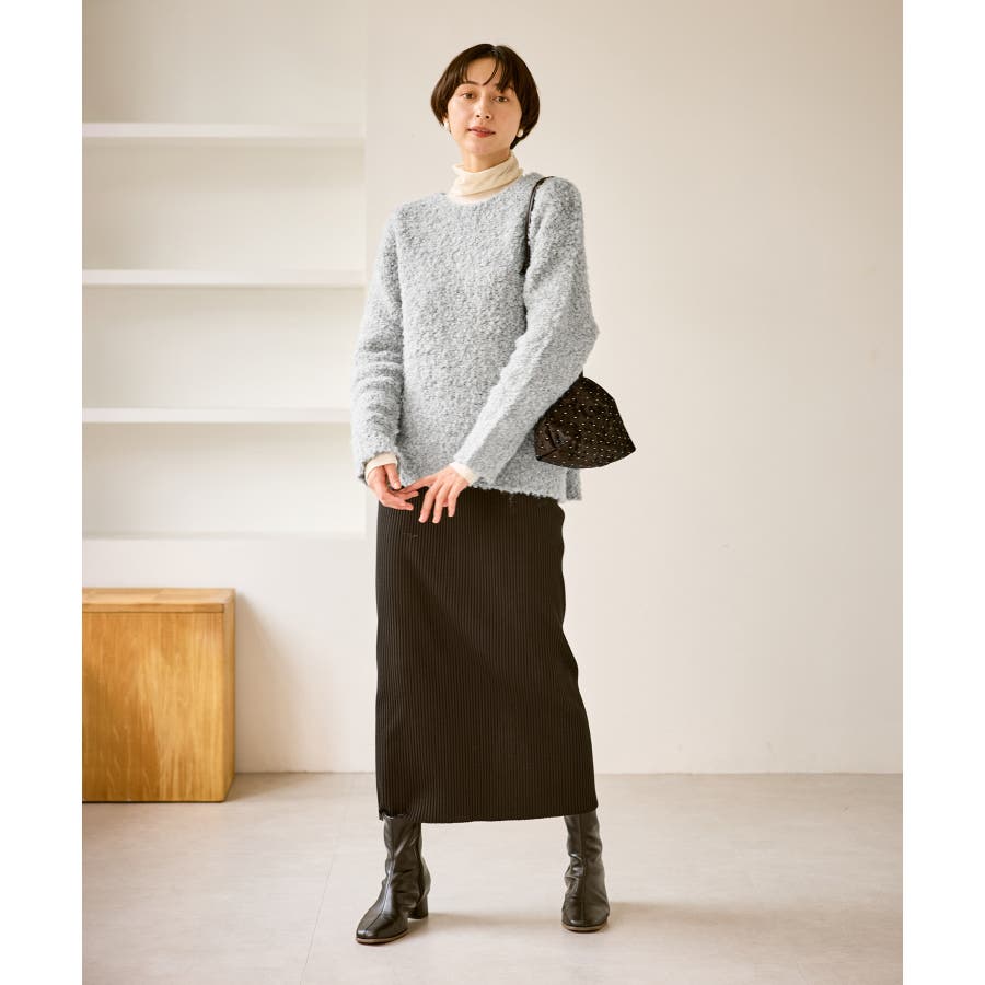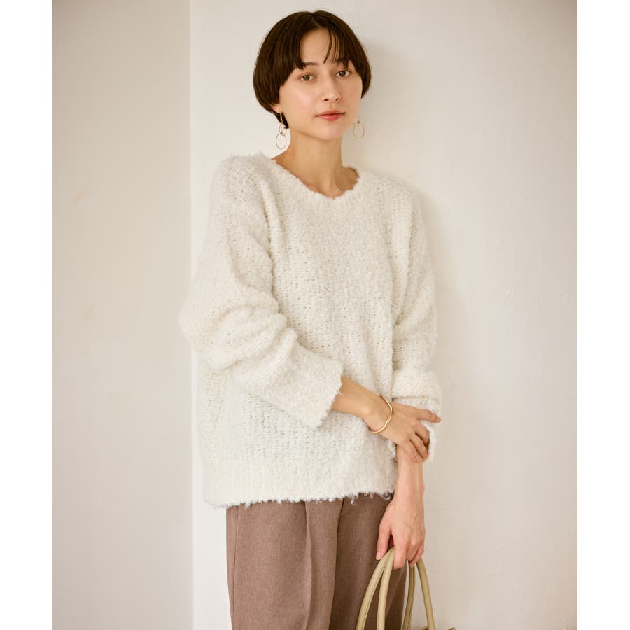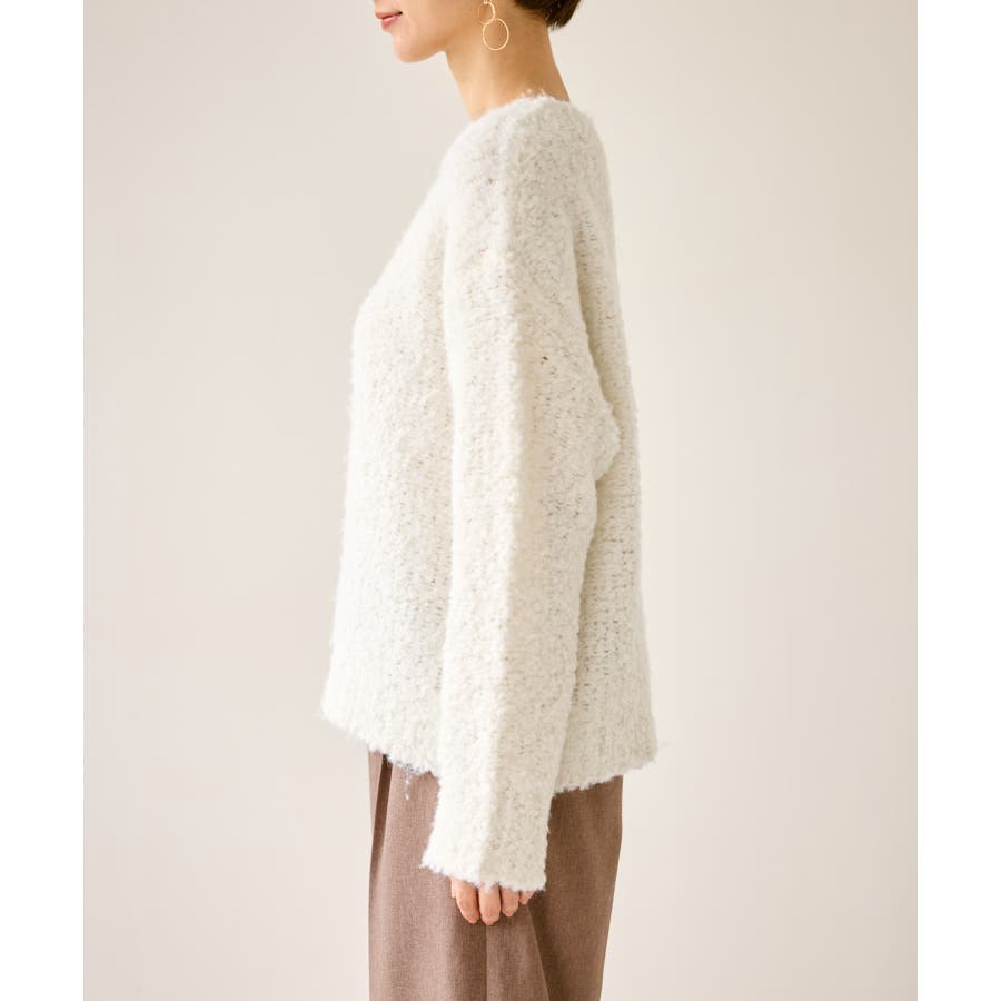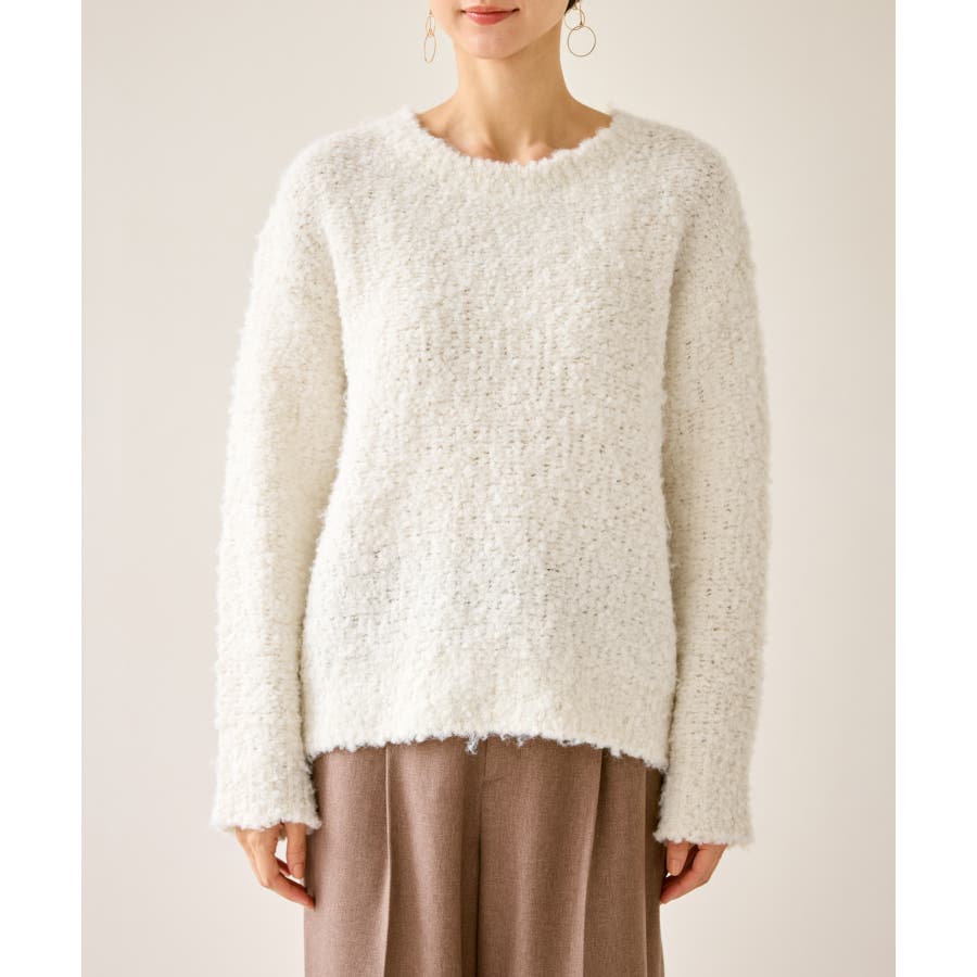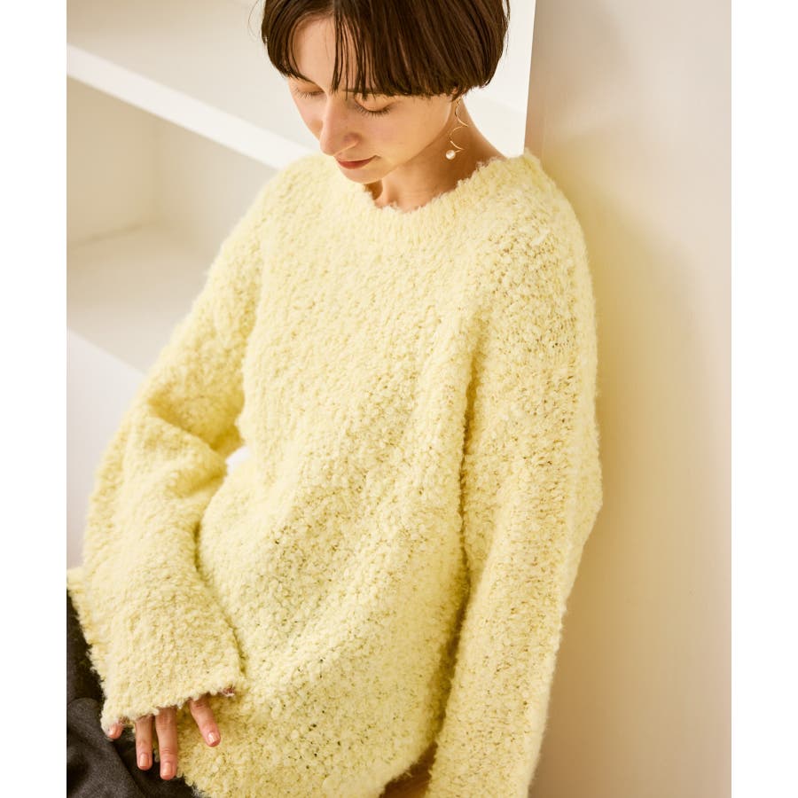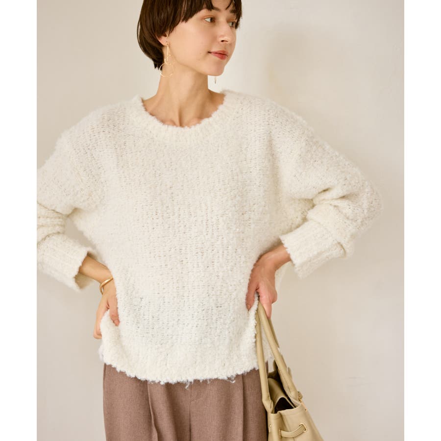 ・柔らかなブークレの質感。冬のスタイルに立体感をプラス。