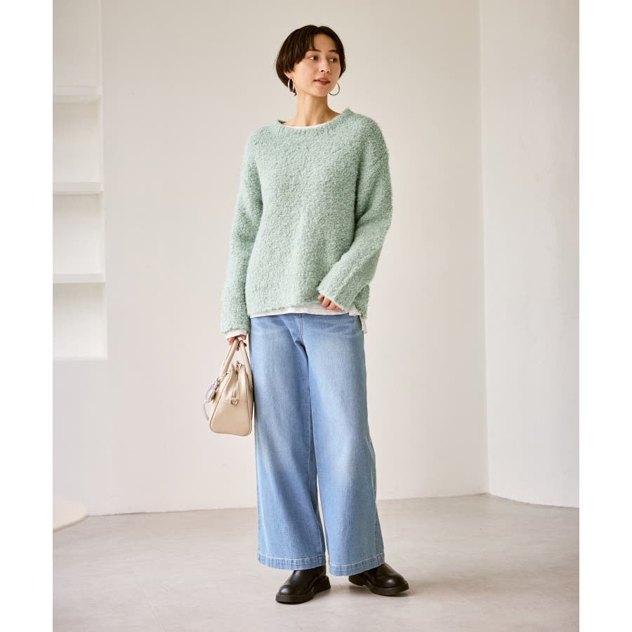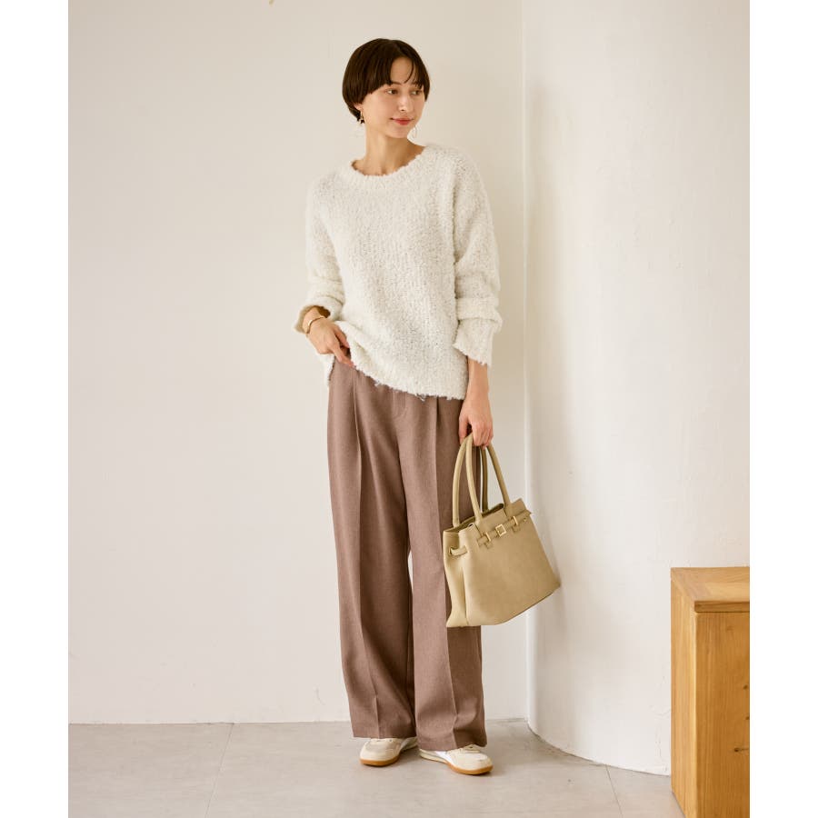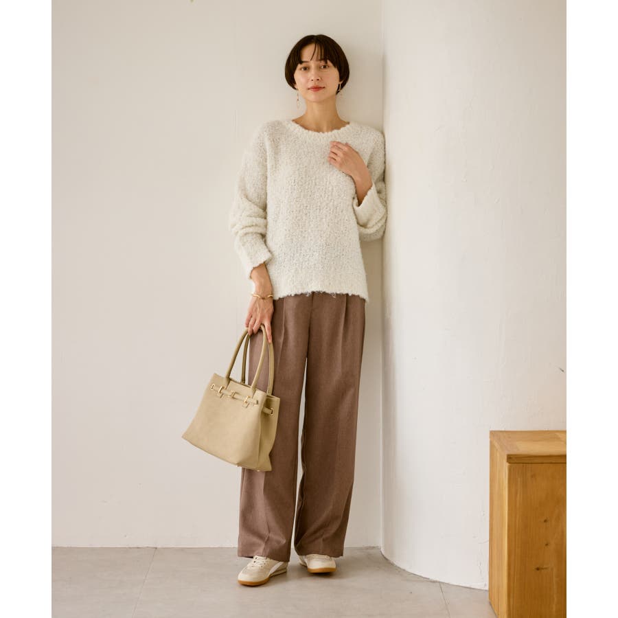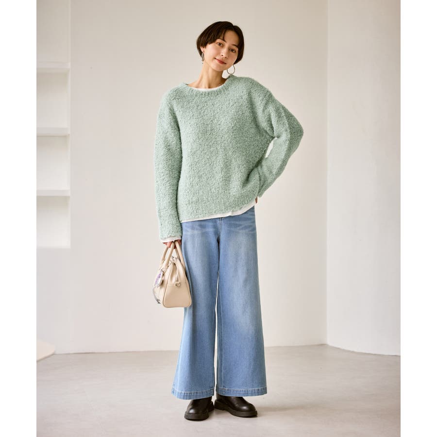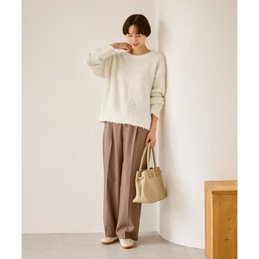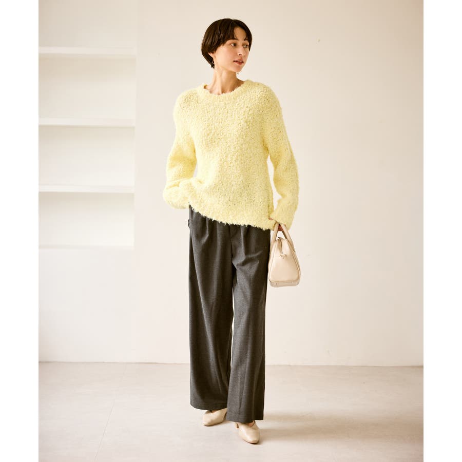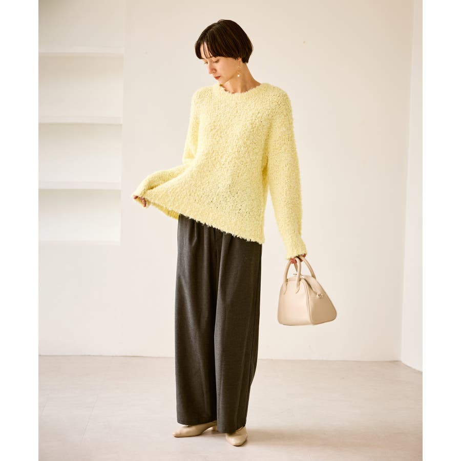・柔らかなブークレの質感。冬のスタイルに立体感をプラス。