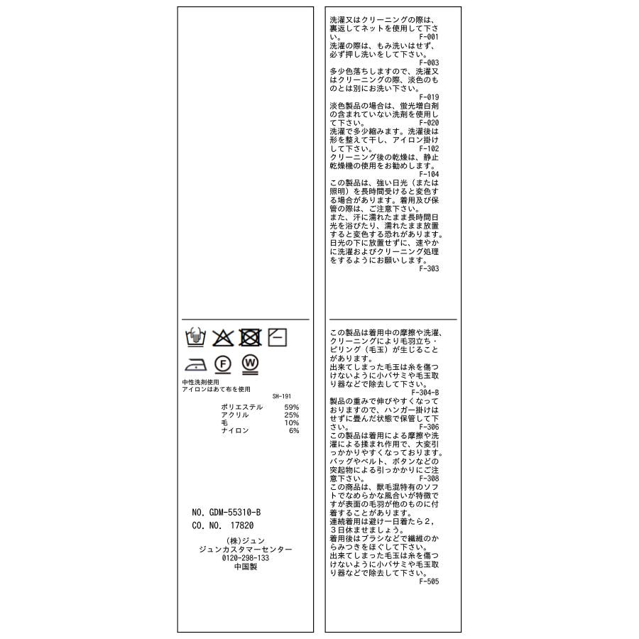 | 素材 | ポリエステル 59% アクリル 25% 毛 10% ナイロン 6% |