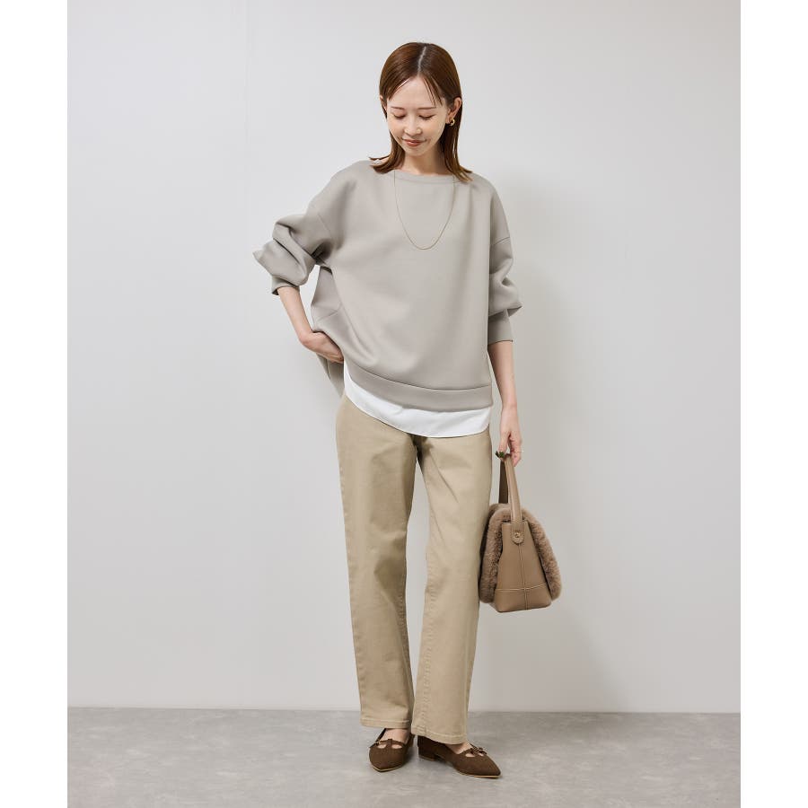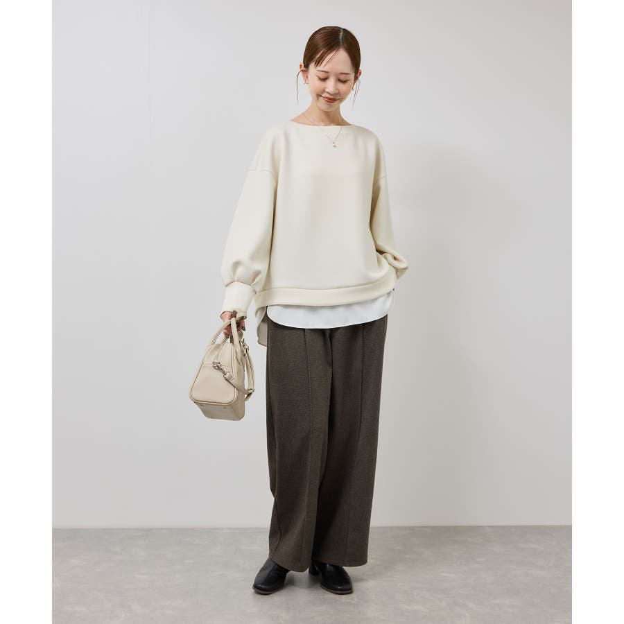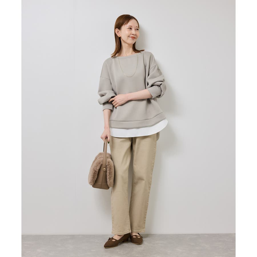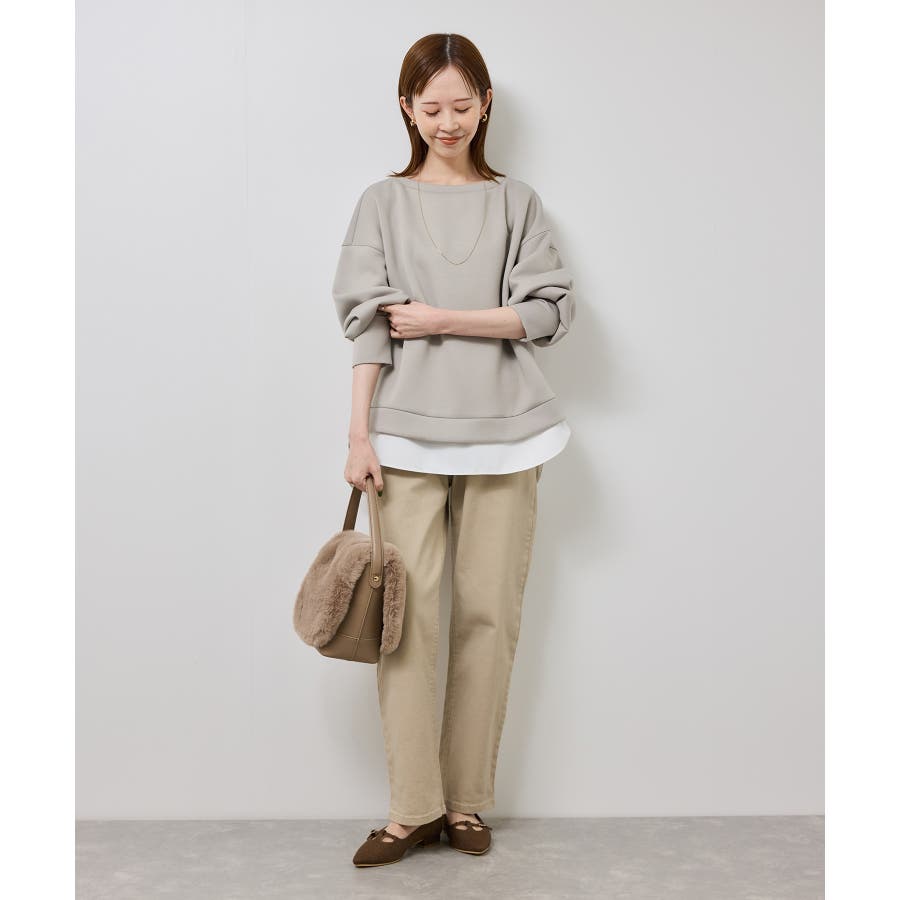 ・どんな骨格にもマッチするやさしいラウンドの襟ぐりと着ぶくれしないシルエット。