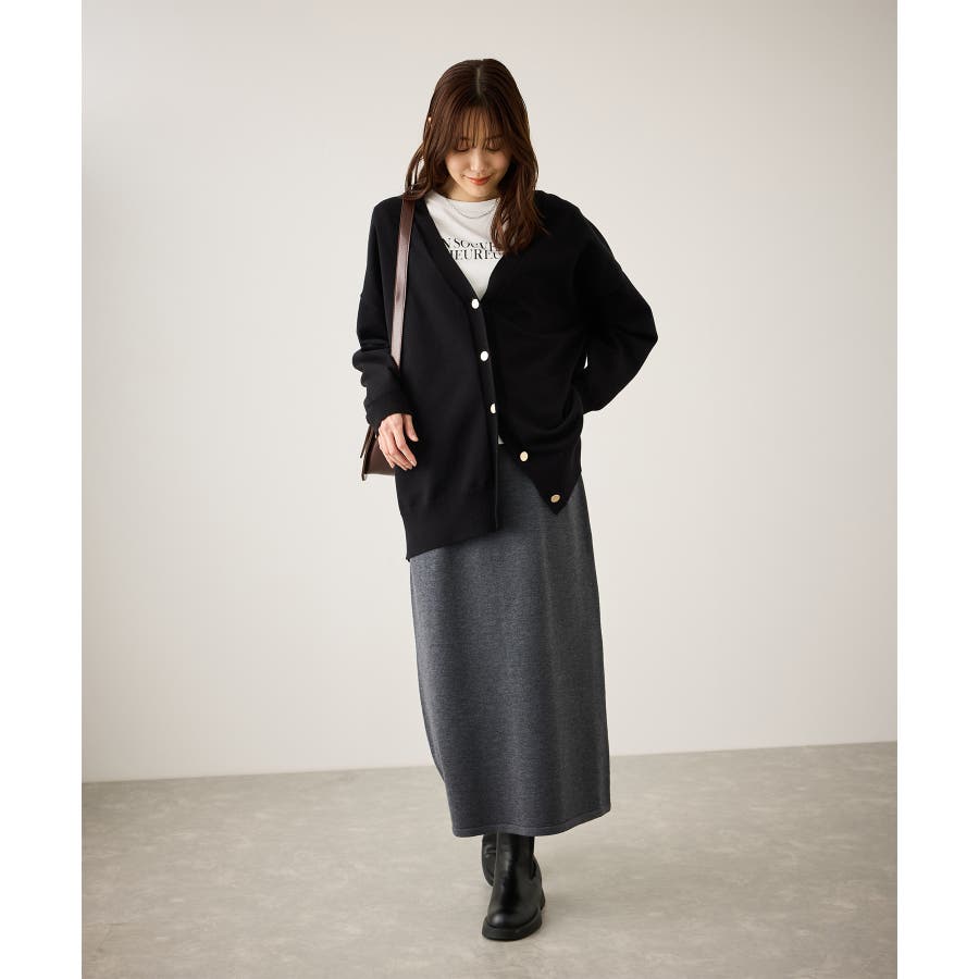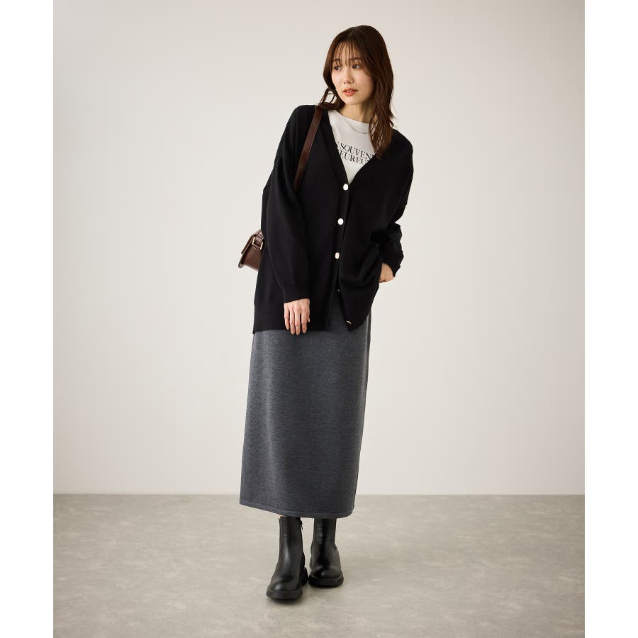 ・Iラインシルエットスカートにブーツと合わせると落ち着いたカジュアルスタイルに。