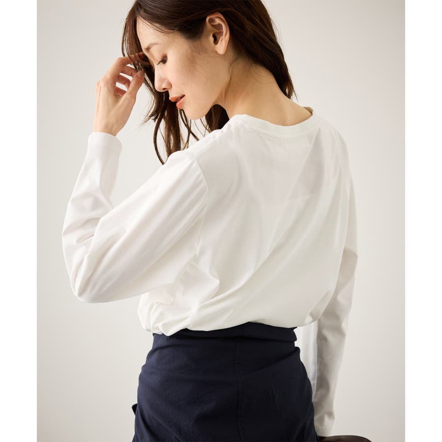 ・きれいめカジュアルなカットソーで幅広いスタイリングに合わせられる。