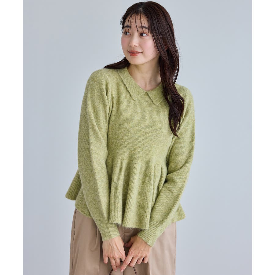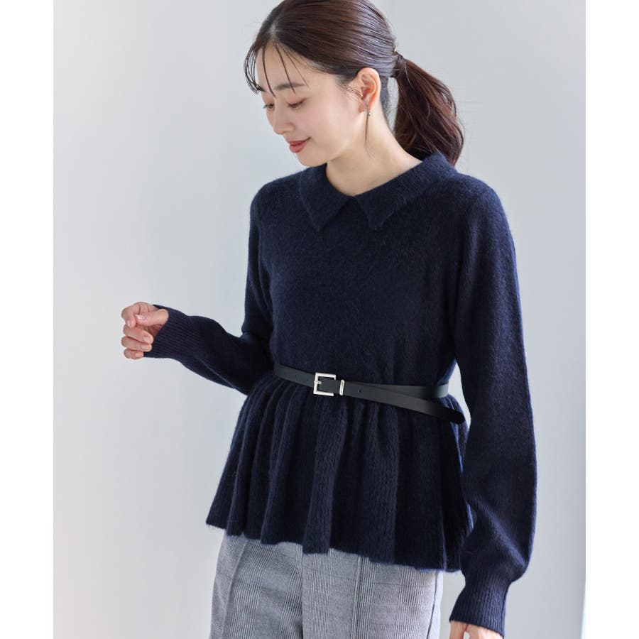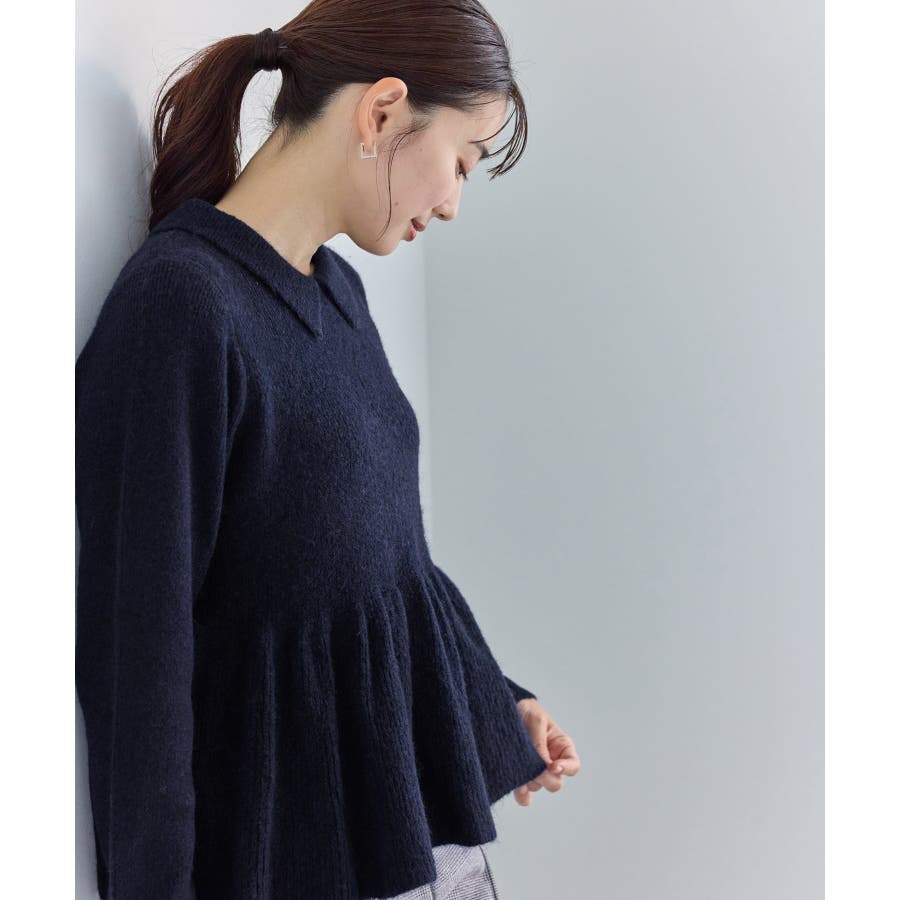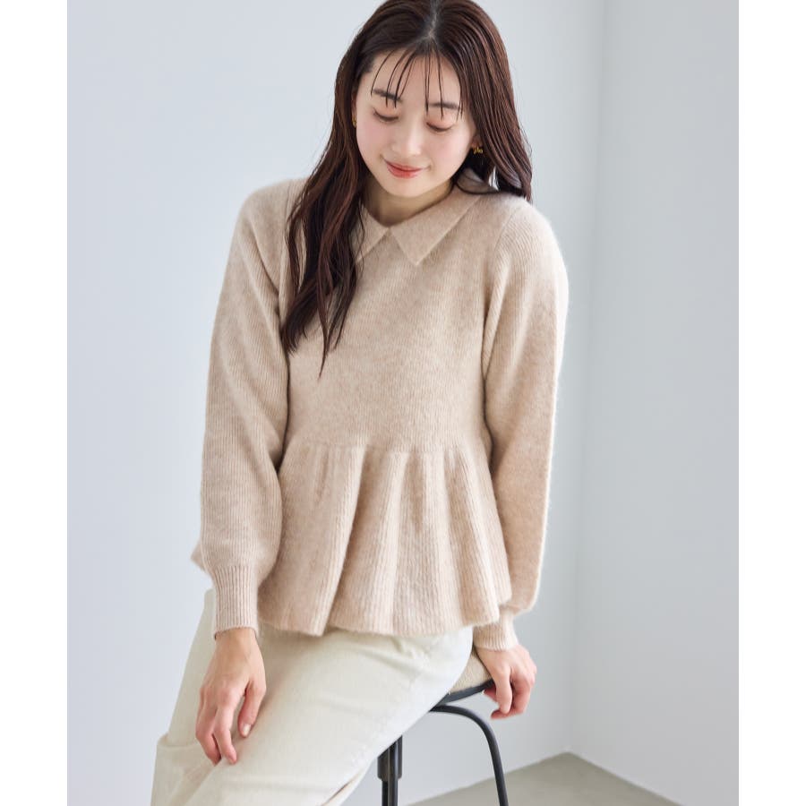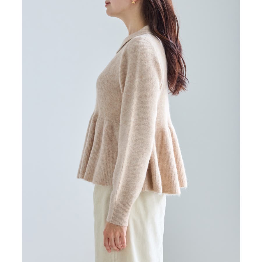 ・アンゴラ混のふんわりとした柔らかさを活かした、女性らしいペプラムニット。
