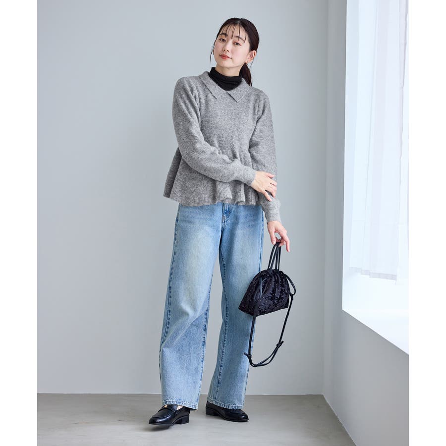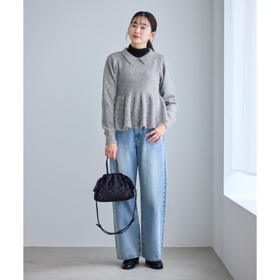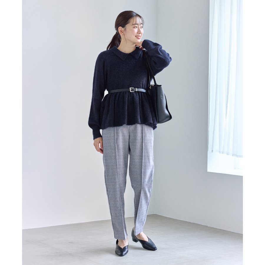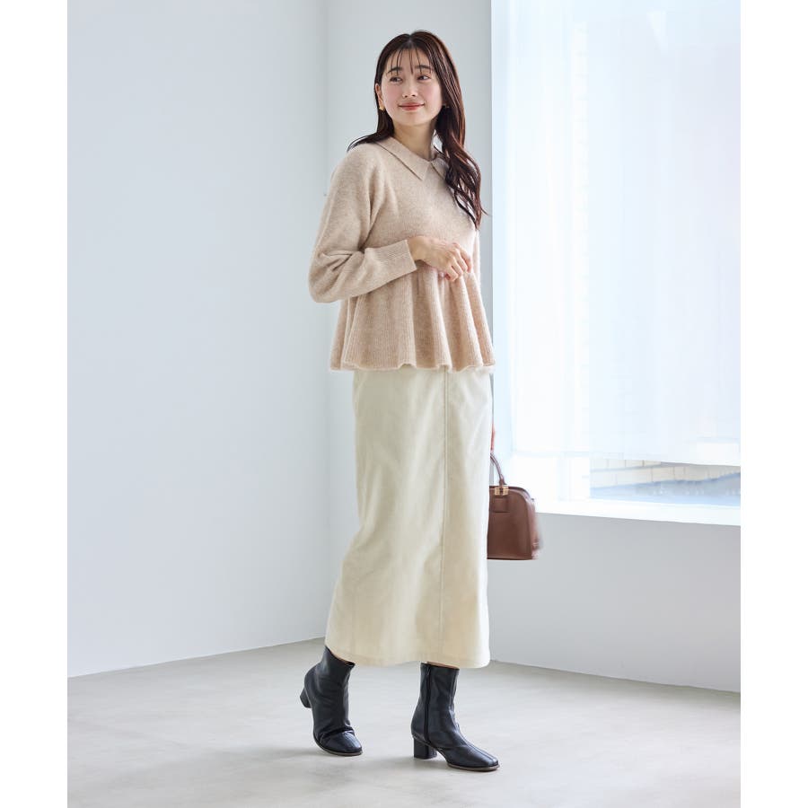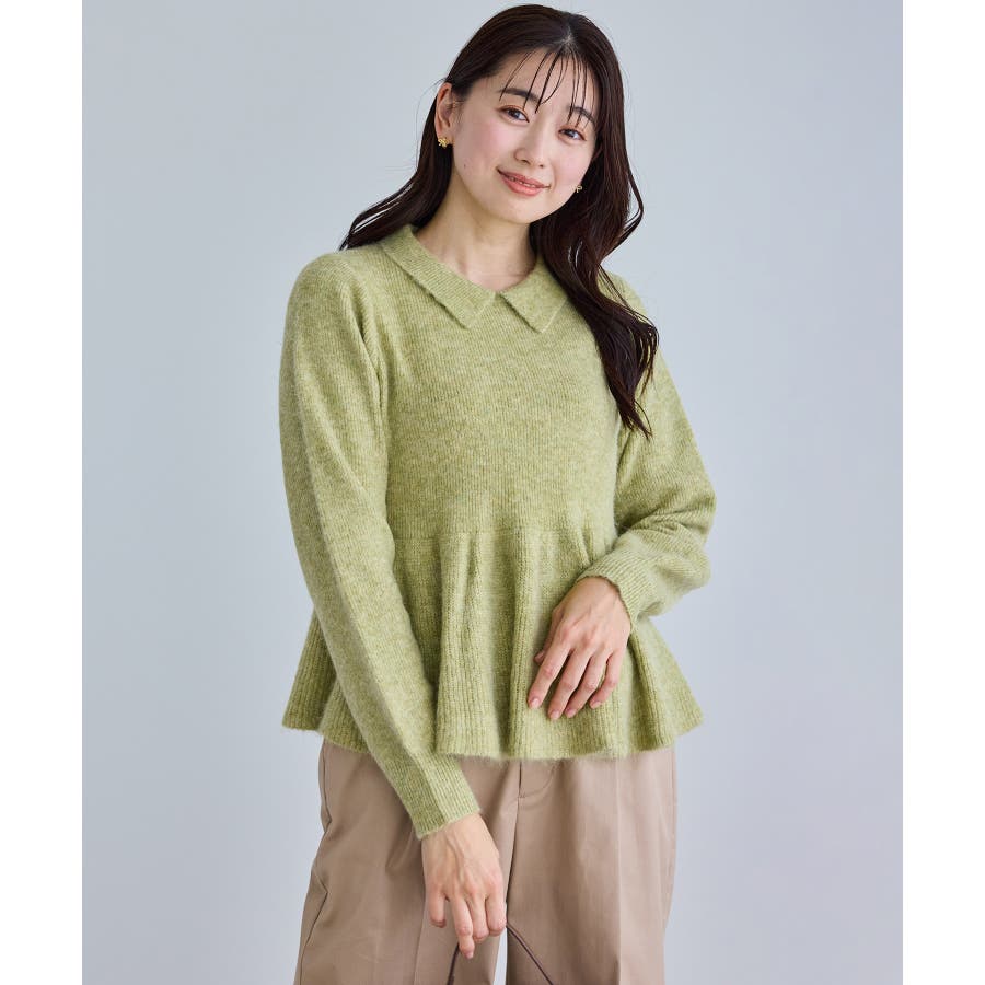 ・アンゴラ混のふんわりとした柔らかさを活かした、女性らしいペプラムニット。
