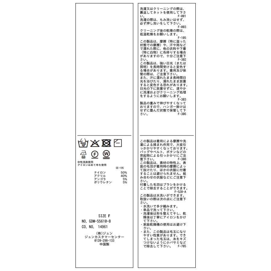 | 素材 | ナイロン 50% アクリル 40% アンゴラ 5% ポリウレタン 5% |
