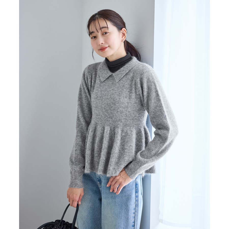 アンゴラ混ペプラムニット