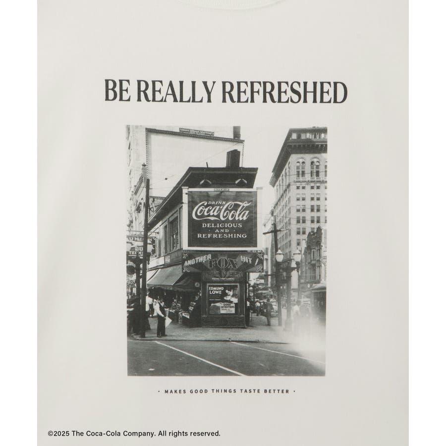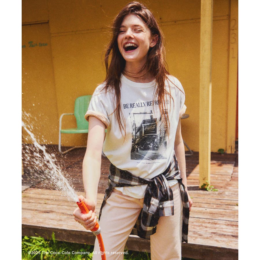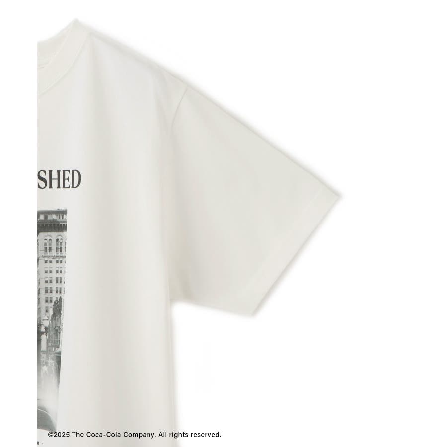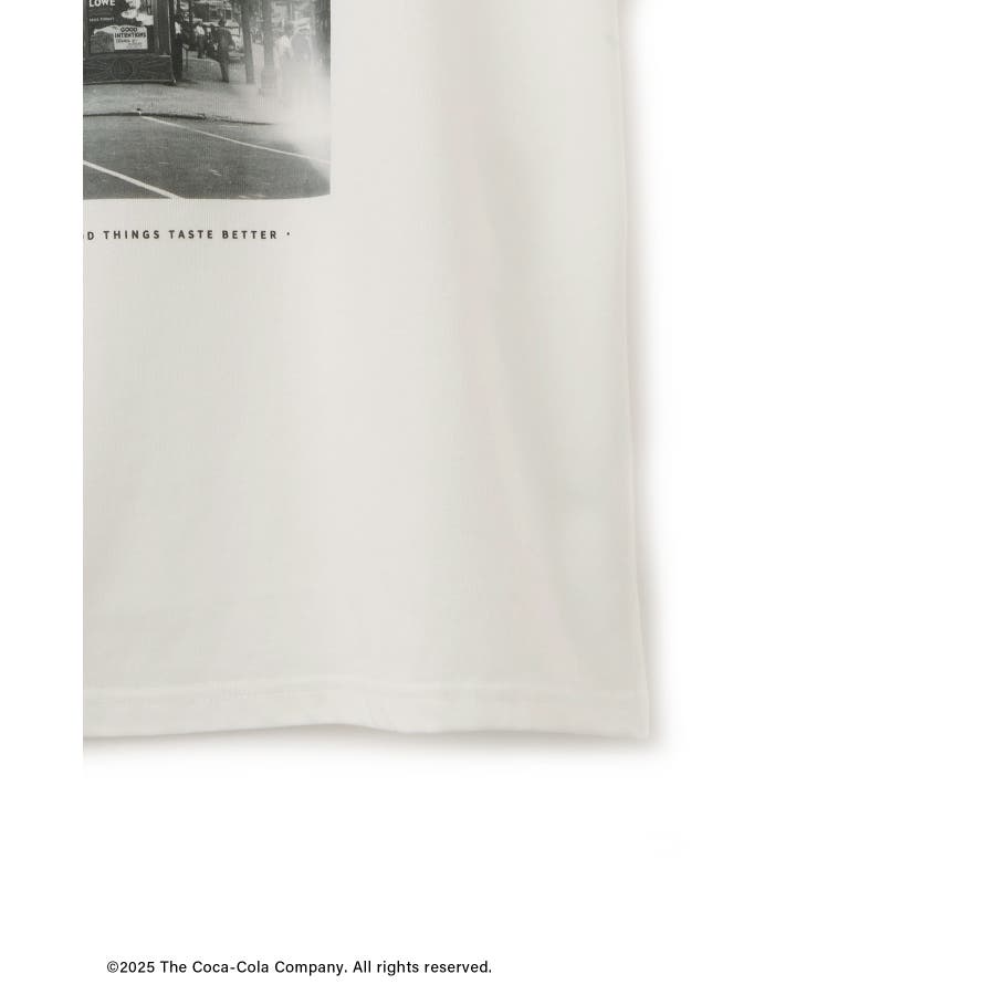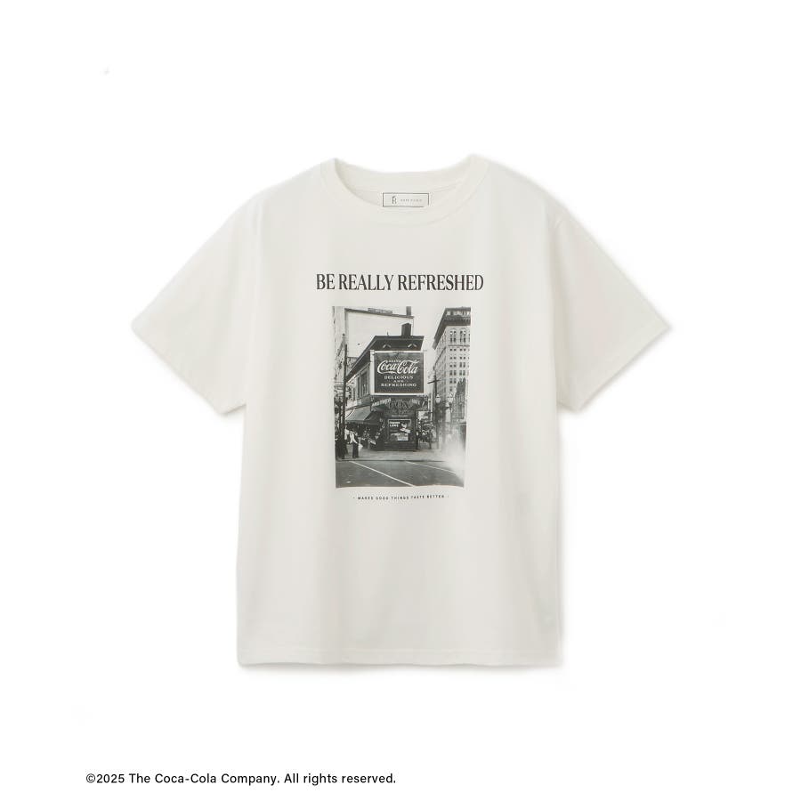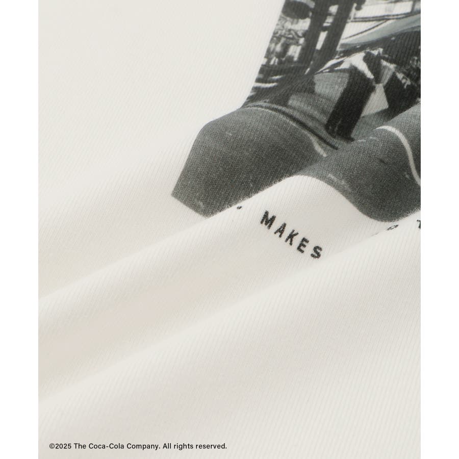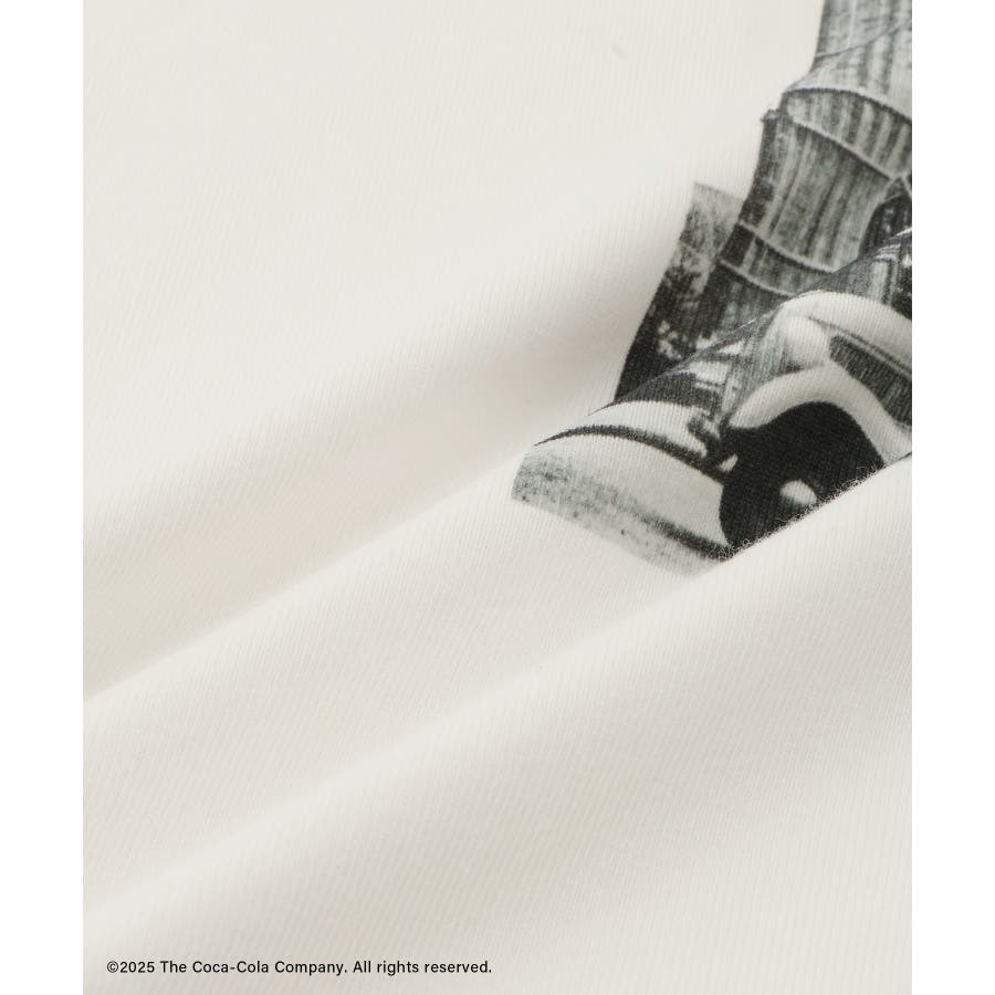 ・コカ・コーラをイメージしたフォトと公式ロゴをプリントしたアーティスティックなグラフィックTシャツ。
