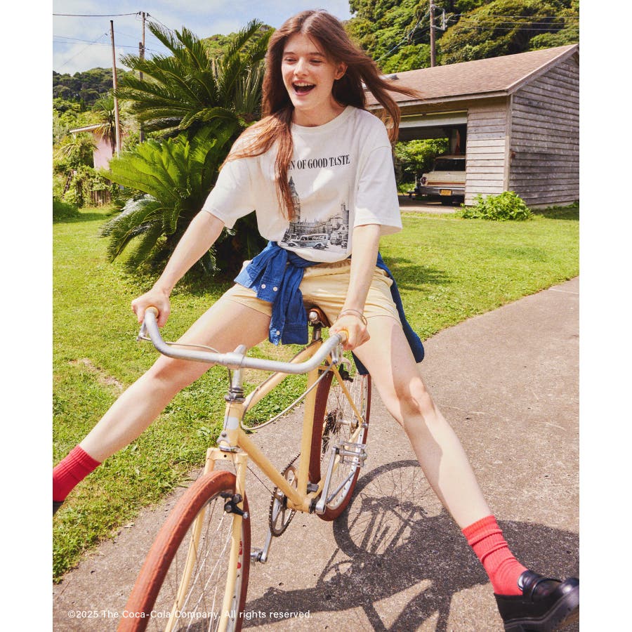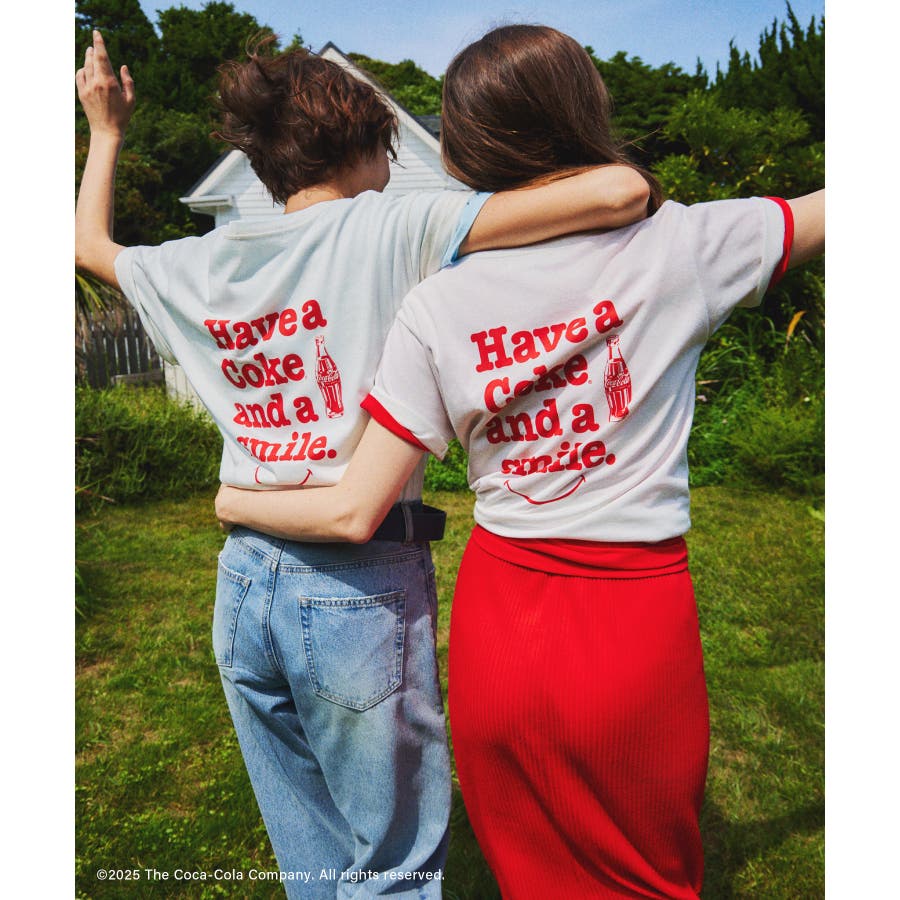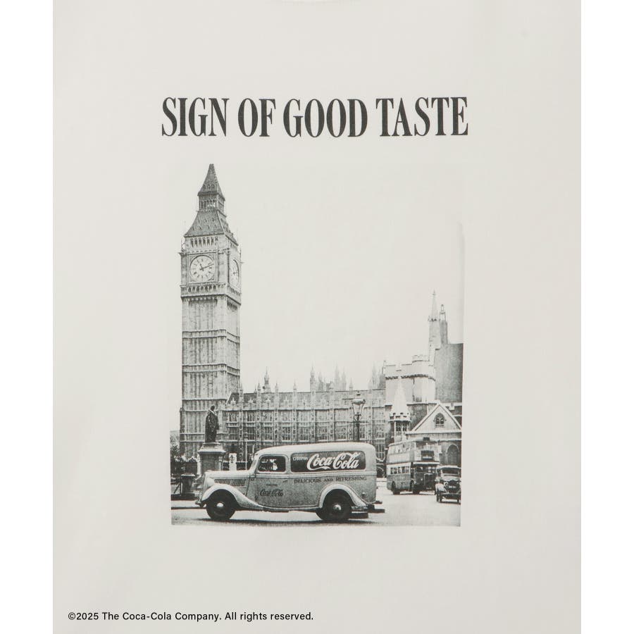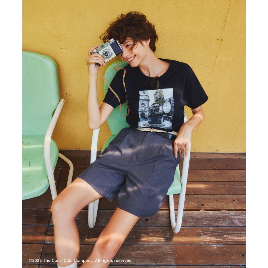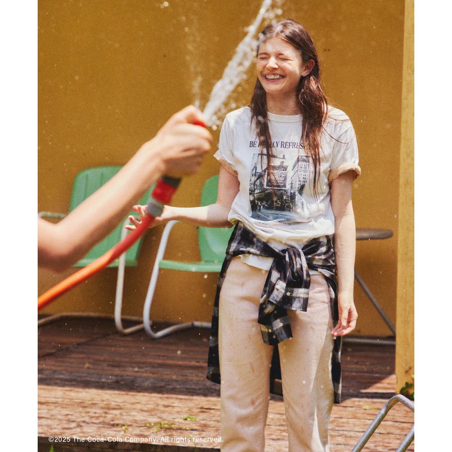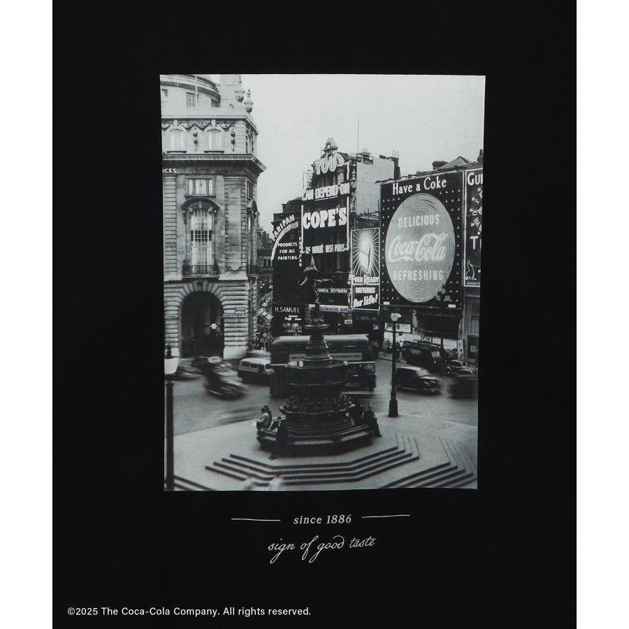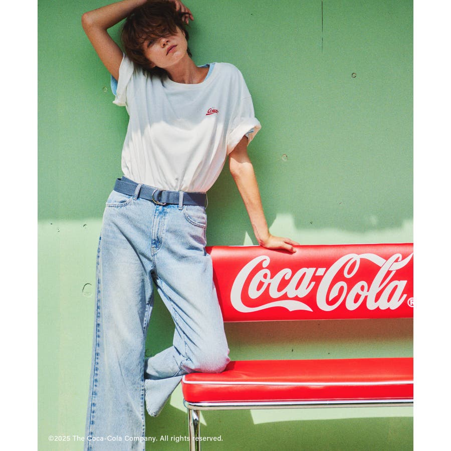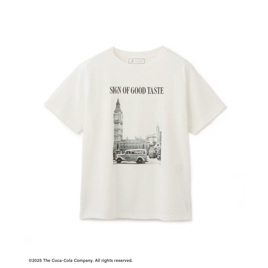・コカ・コーラをイメージしたフォトと公式ロゴをプリントしたアーティスティックなグラフィックTシャツ。