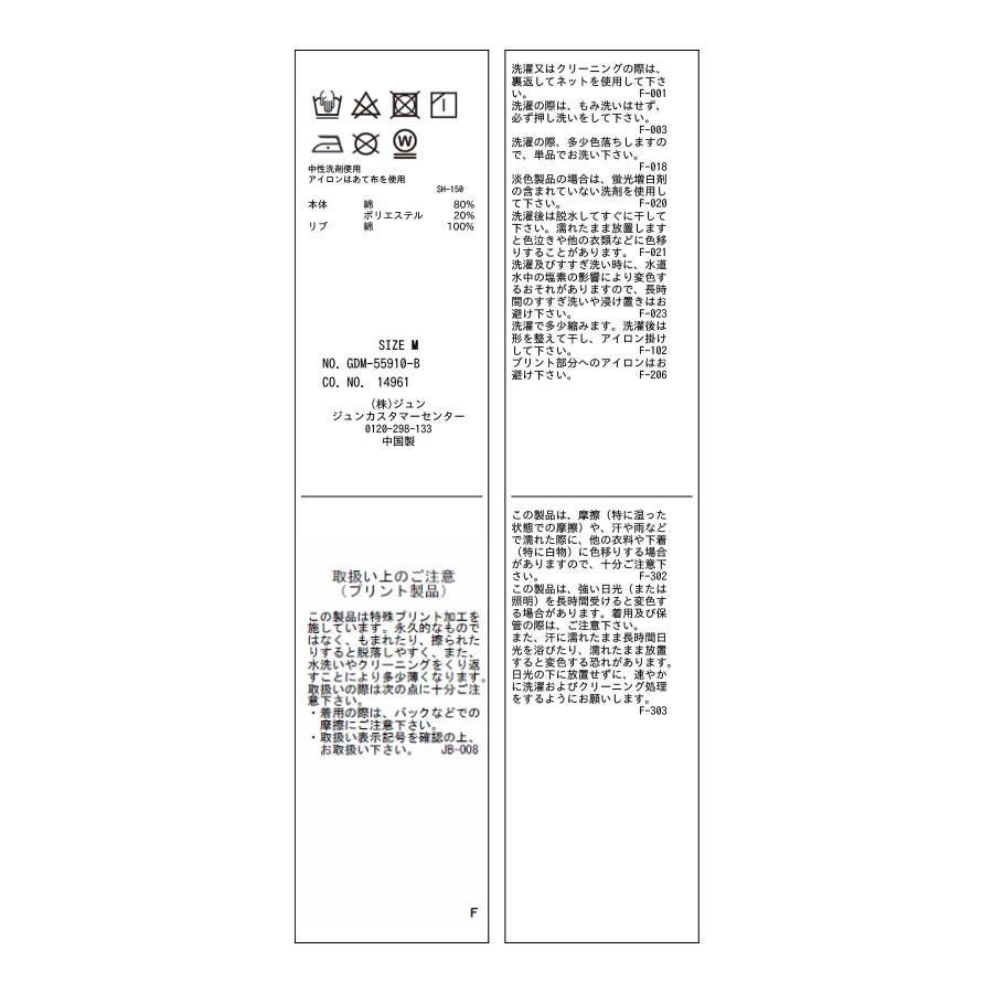 | 素材 | (本体) 綿 80% ポリエステル 20% (リブ) 綿 100% |