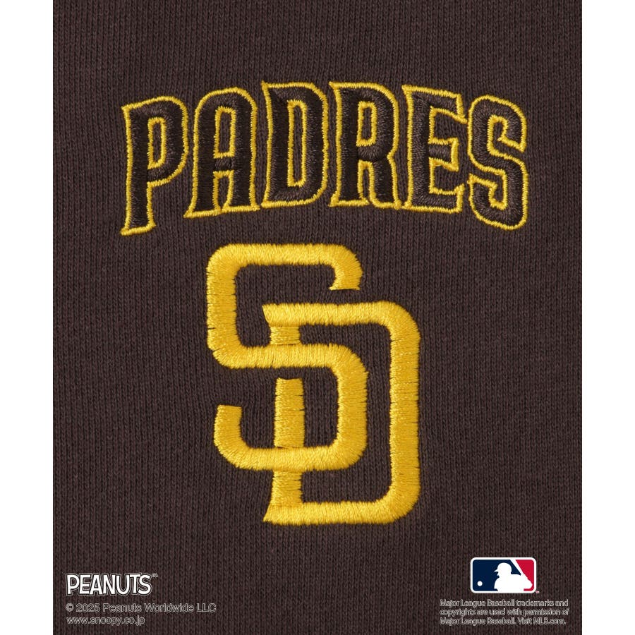 ・パドレスはブラウンイエローのチームカラーが今年のトレンド感に合うので胸元に目立つよう、程よいサイズ感で刺繍。