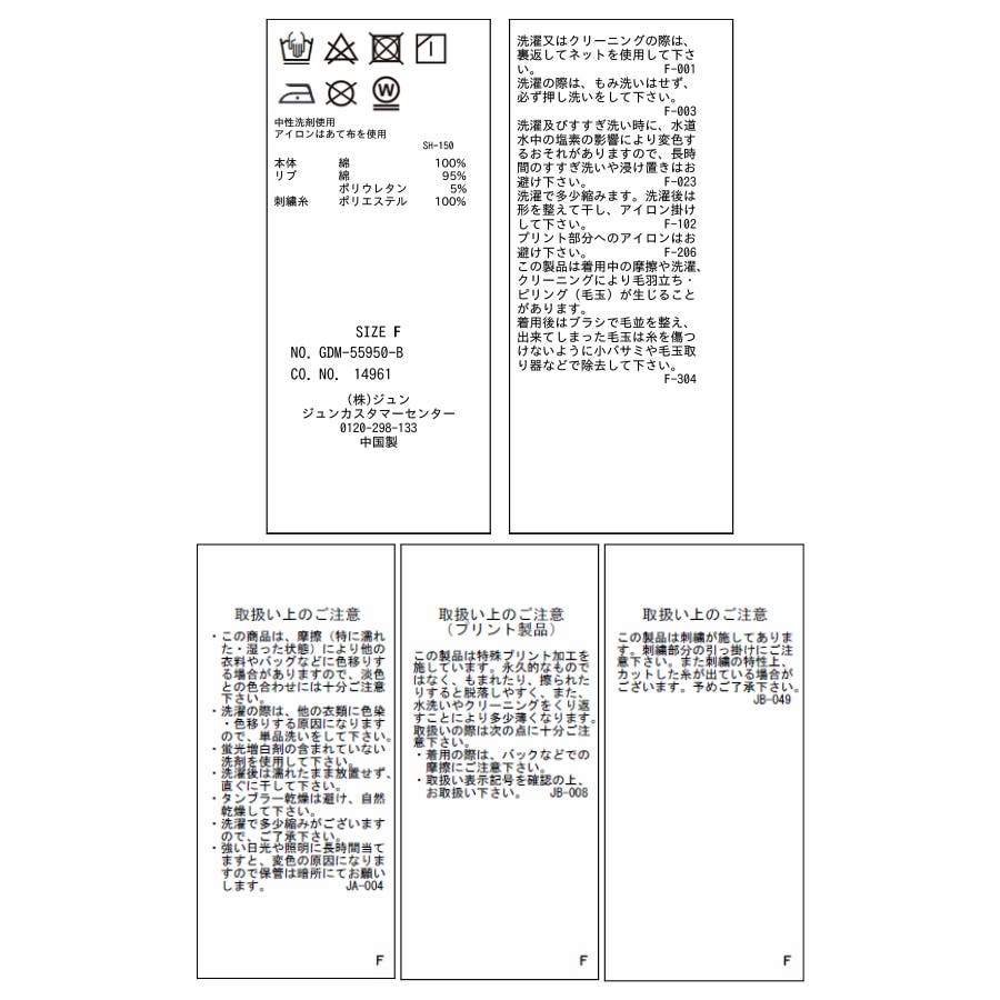 | 素材 | (本体)綿 100% (リブ)綿 95% ポリウレタン 5%(刺繍糸)ポリエステル 100% |