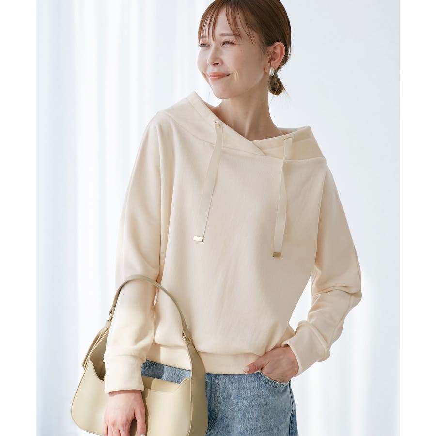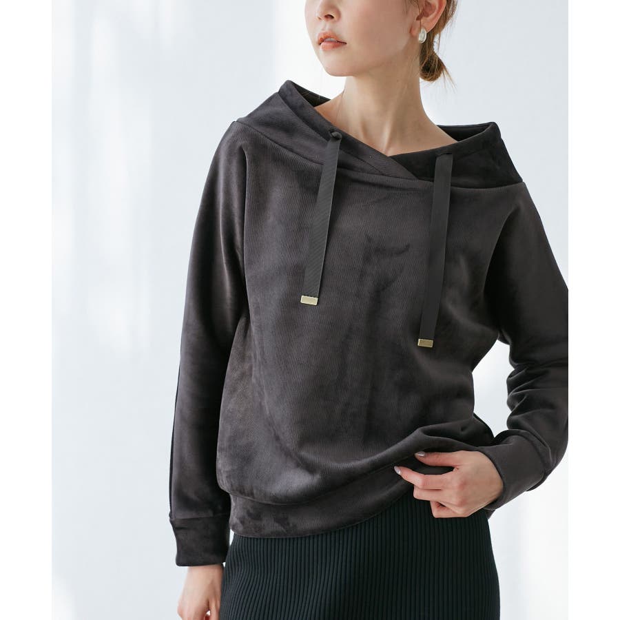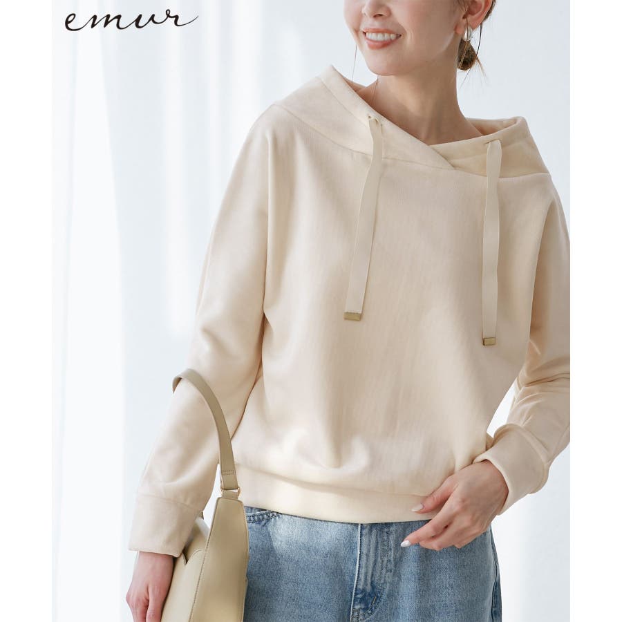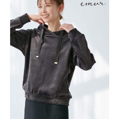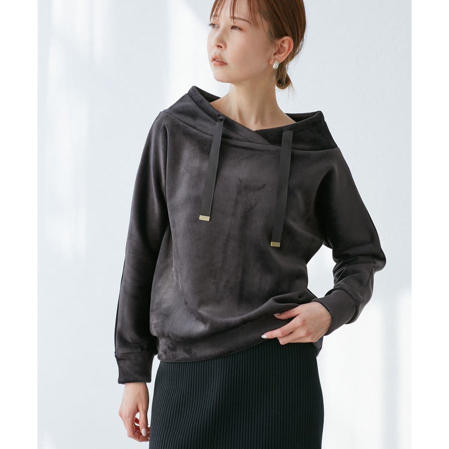 【素材感】 ・リブ仕立てのベロア生地を使った長袖プルオーバー。 【デザイン・シルエット】 ・セーラーカラー風の襟に、コードを通したデザイン。 ・フロントが重なった抜け感のある襟元がポイント。 ・スウェットシャツ感覚で気軽に着られる。 【カラー】 ・インクブラック、アイボリーのこなれた2色を展開。 【スタイリングポイント】 ・素材感を活かすならシンプルなボトム合わせがベスト。 ・ワイドパンツでトレンド感のあるカジュアルルックに。 ・ロングスカートなら大人っぽく決まる。 ----------------------------- 裏地:なし 透け感なし 伸縮性:ややあり 生地感・厚さ:普通 ポケット:なし 季節:春・秋・冬 ----------------------------- ※撮影時の光、お使いのモニター環境によって色の見え方が違う場合がございます。 ※モデル身長:165cm 着用サイズ:38 : 【emur(エミュール)】 ロペピクニックが展開する大人ライン。 目まぐるしい時代を強く艶(あで)やかに生きる、大人の女性のためのタイムレス・リュクスなニュースタンダードウェア。 ファッション経験値のある女性に提案できる上質な品質と素材感のアイテムを、手に入りやすいプレミアムプライスで提供します。 WEBサイト/一部店舗限定になります。