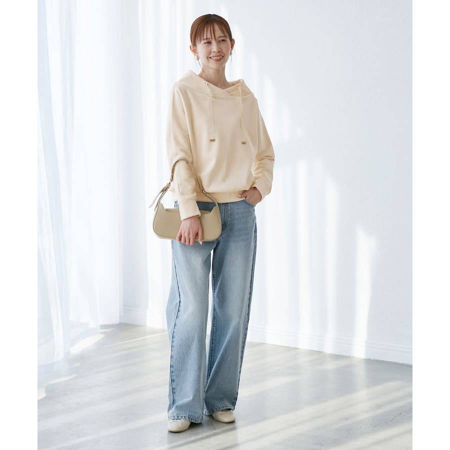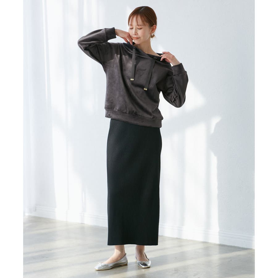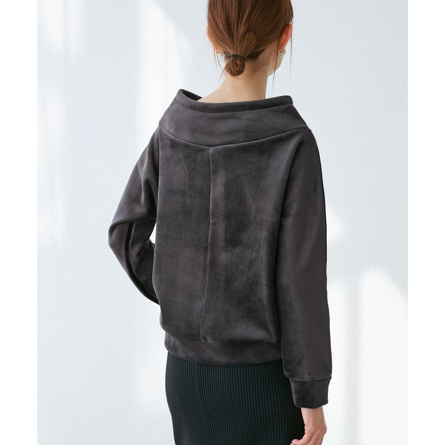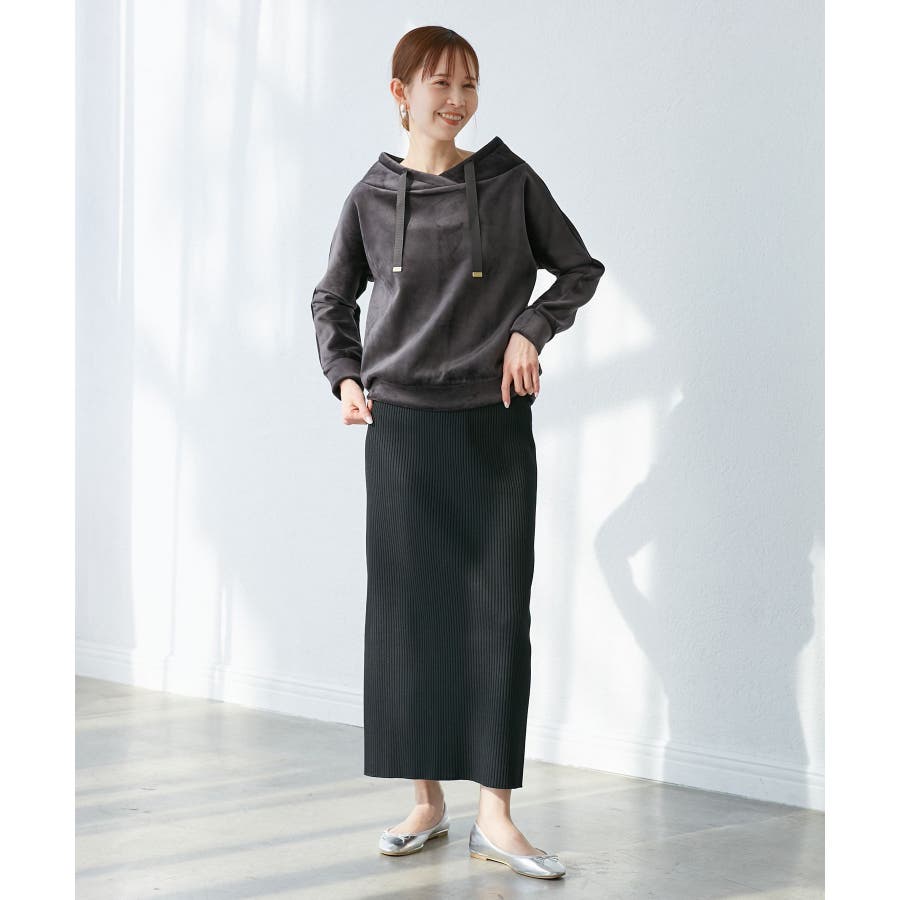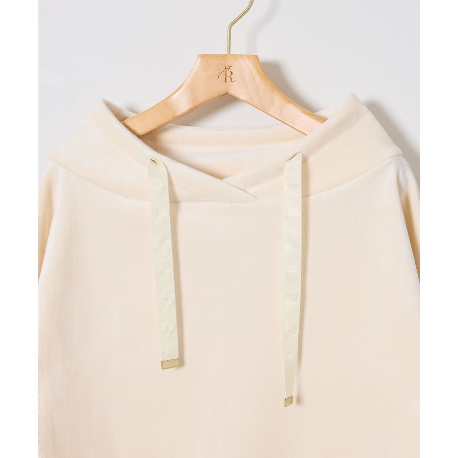 【素材感】 ・リブ仕立てのベロア生地を使った長袖プルオーバー。 【デザイン・シルエット】 ・セーラーカラー風の襟に、コードを通したデザイン。 ・フロントが重なった抜け感のある襟元がポイント。 ・スウェットシャツ感覚で気軽に着られる。 【カラー】 ・インクブラック、アイボリーのこなれた2色を展開。 【スタイリングポイント】 ・素材感を活かすならシンプルなボトム合わせがベスト。 ・ワイドパンツでトレンド感のあるカジュアルルックに。 ・ロングスカートなら大人っぽく決まる。 ----------------------------- 裏地:なし 透け感なし 伸縮性:ややあり 生地感・厚さ:普通 ポケット:なし 季節:春・秋・冬 ----------------------------- ※撮影時の光、お使いのモニター環境によって色の見え方が違う場合がございます。 ※モデル身長:165cm 着用サイズ:38 : 【emur(エミュール)】 ロペピクニックが展開する大人ライン。 目まぐるしい時代を強く艶(あで)やかに生きる、大人の女性のためのタイムレス・リュクスなニュースタンダードウェア。 ファッション経験値のある女性に提案できる上質な品質と素材感のアイテムを、手に入りやすいプレミアムプライスで提供します。 WEBサイト/一部店舗限定になります。