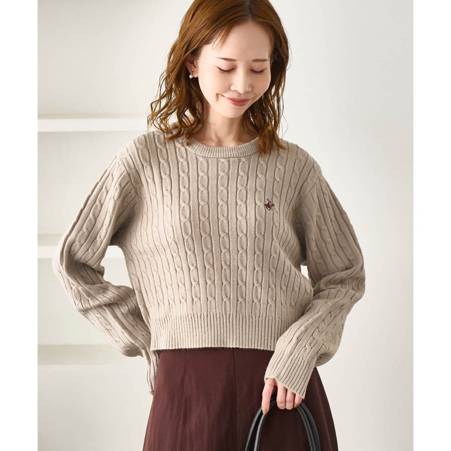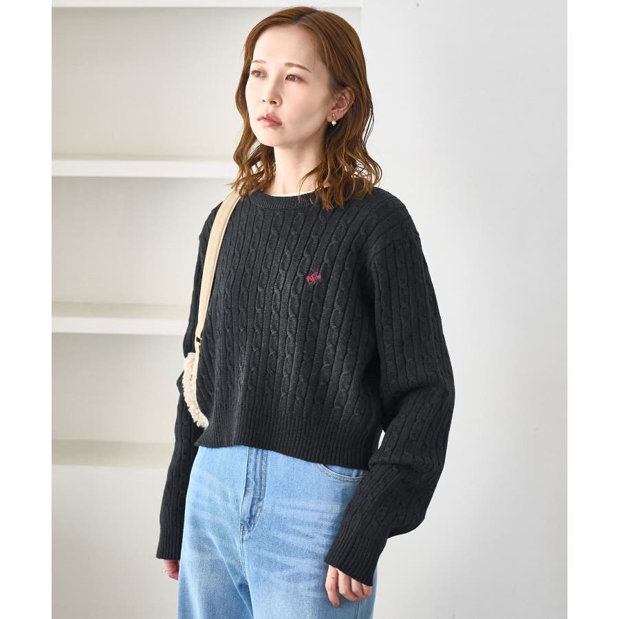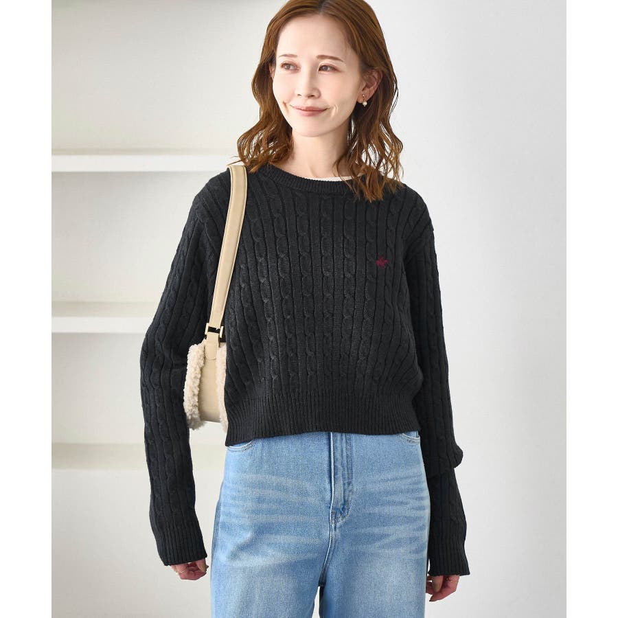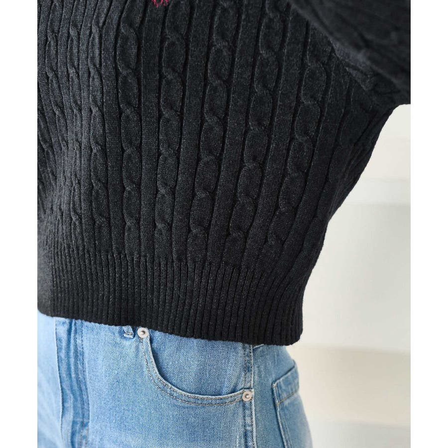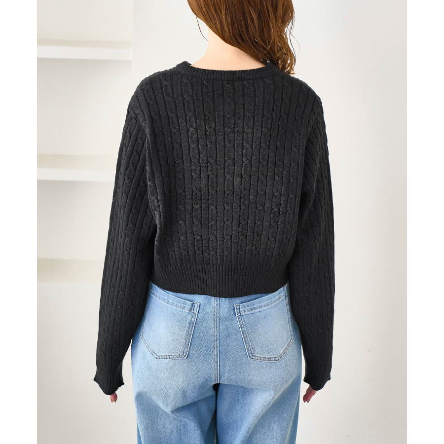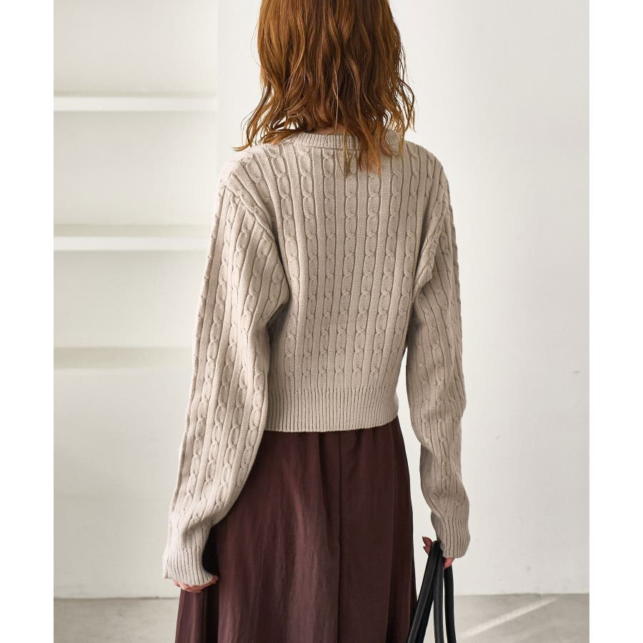 ・立体感のあるケーブル編みと、ほんのり短めのクロップド丈が絶妙にマッチ。