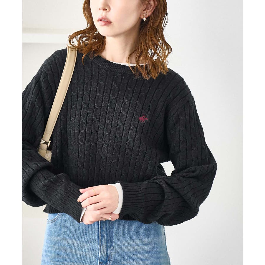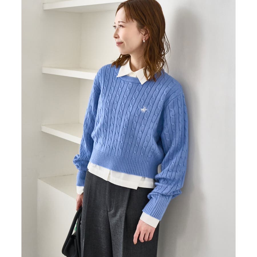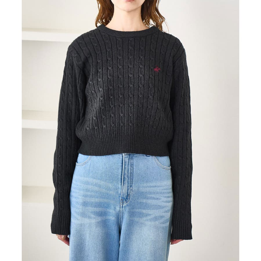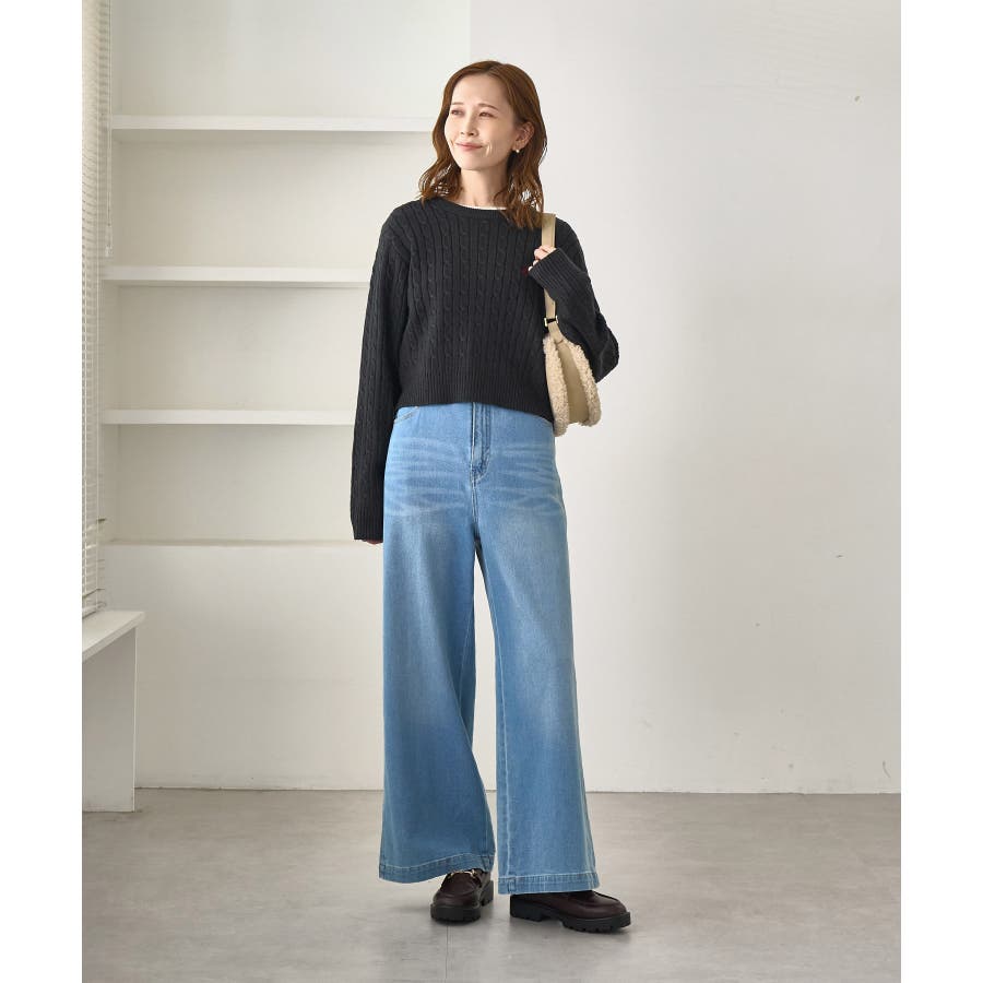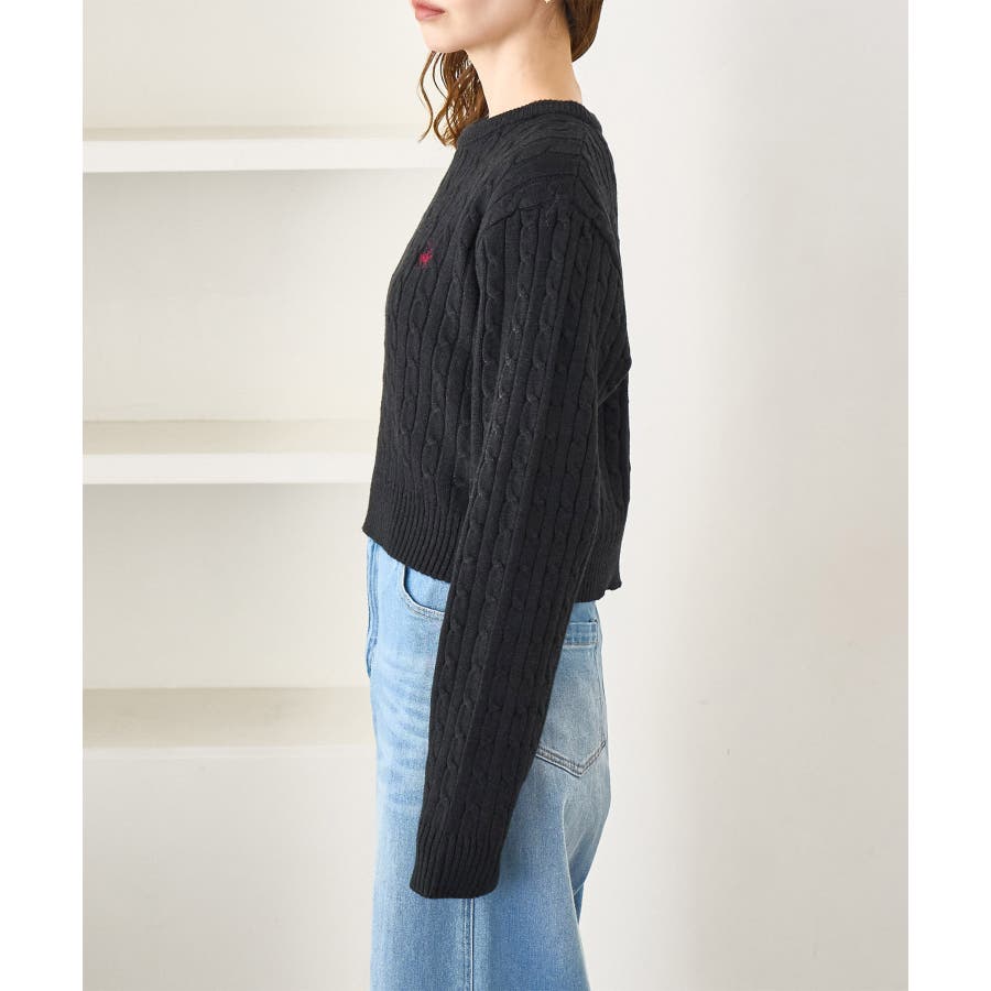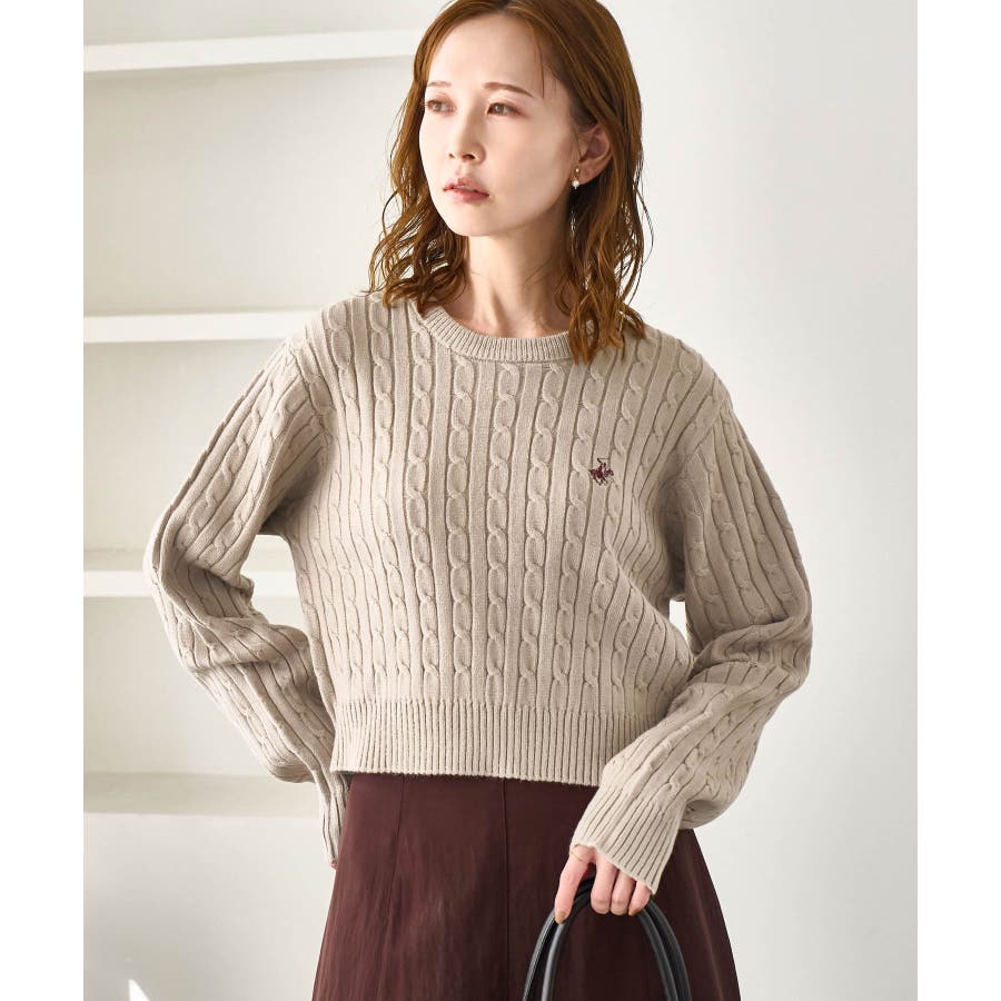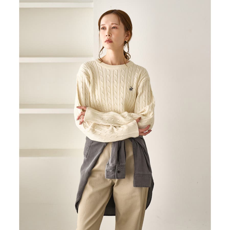 ・立体感のあるケーブル編みと、ほんのり短めのクロップド丈が絶妙にマッチ。