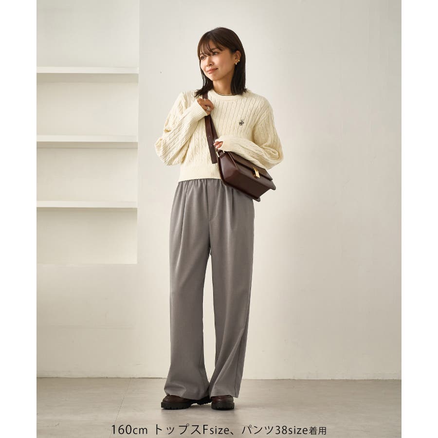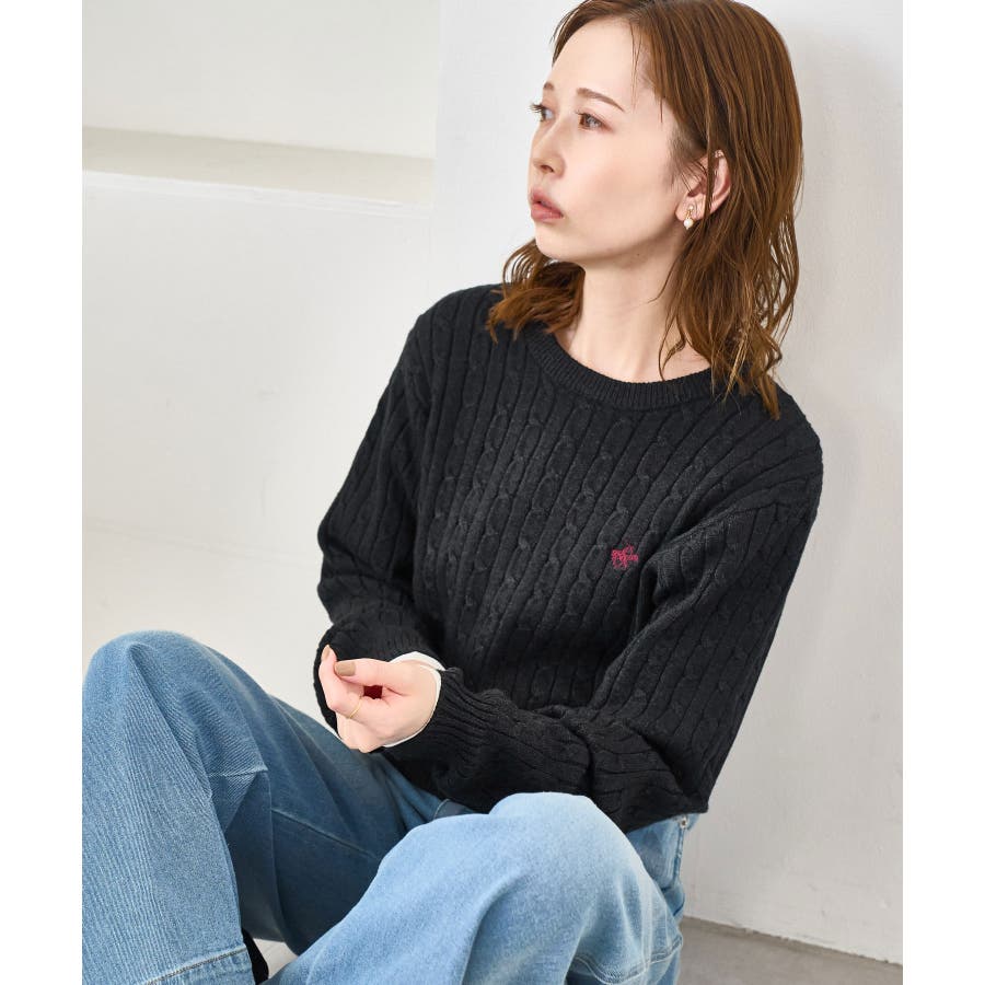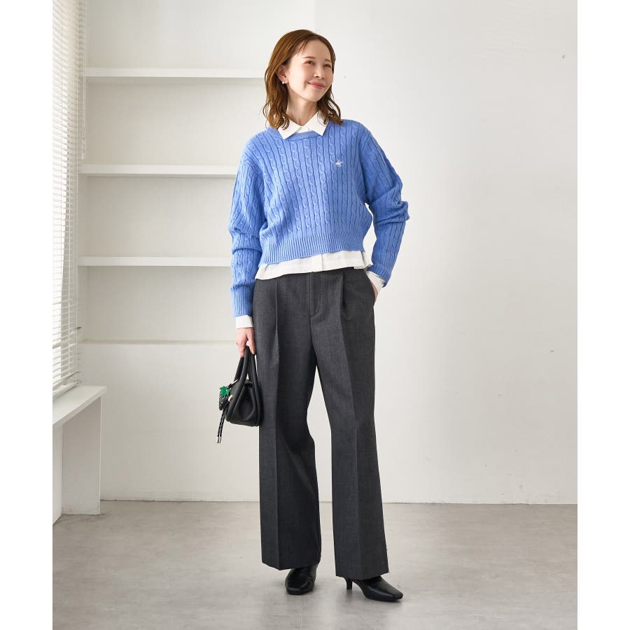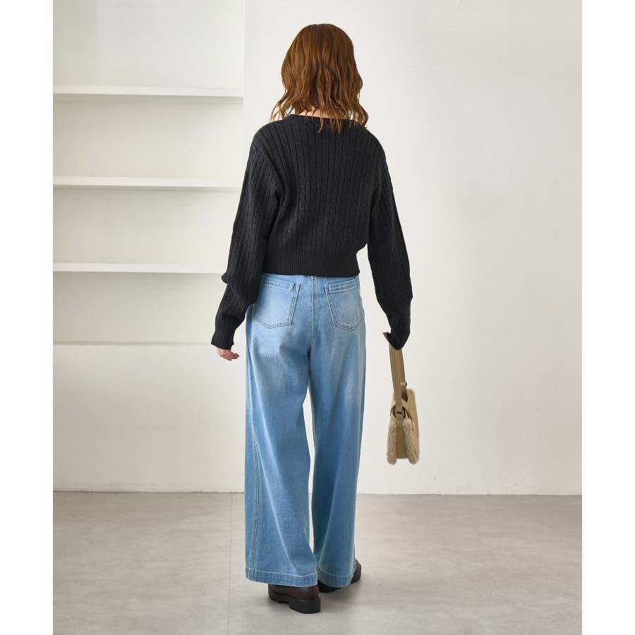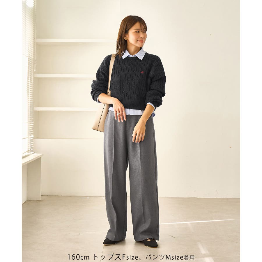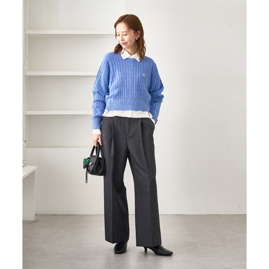 ・立体感のあるケーブル編みと、ほんのり短めのクロップド丈が絶妙にマッチ。