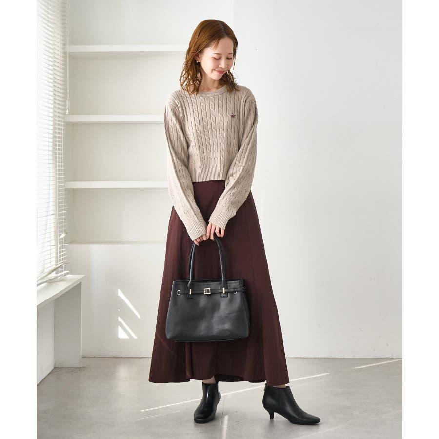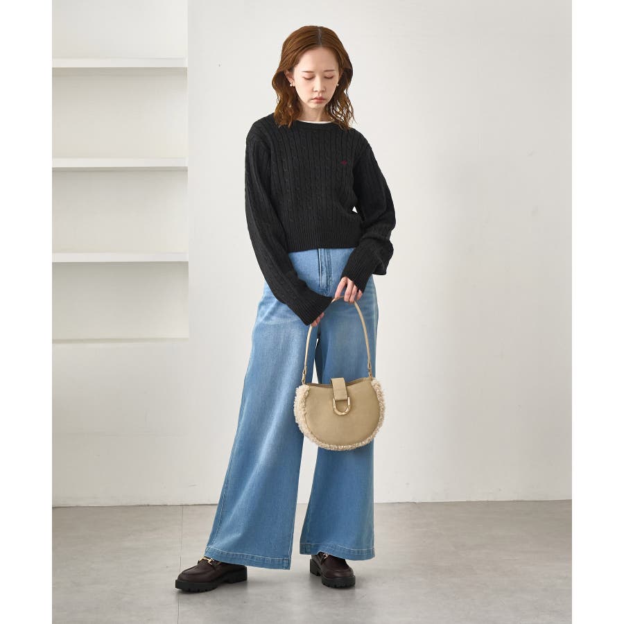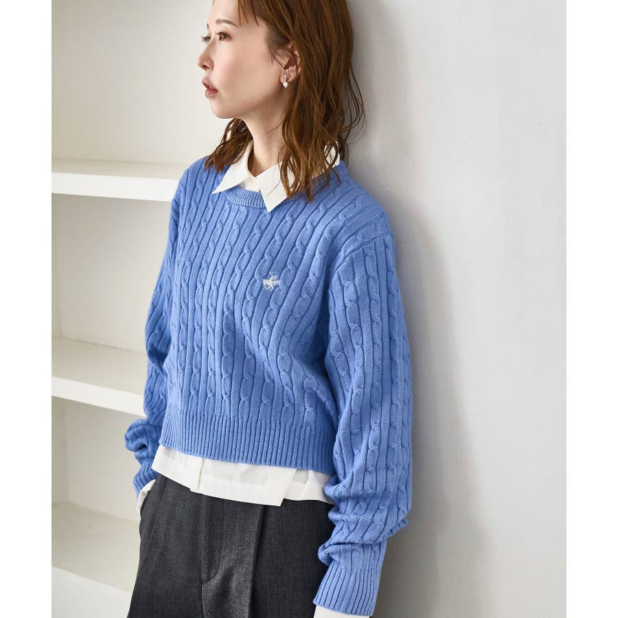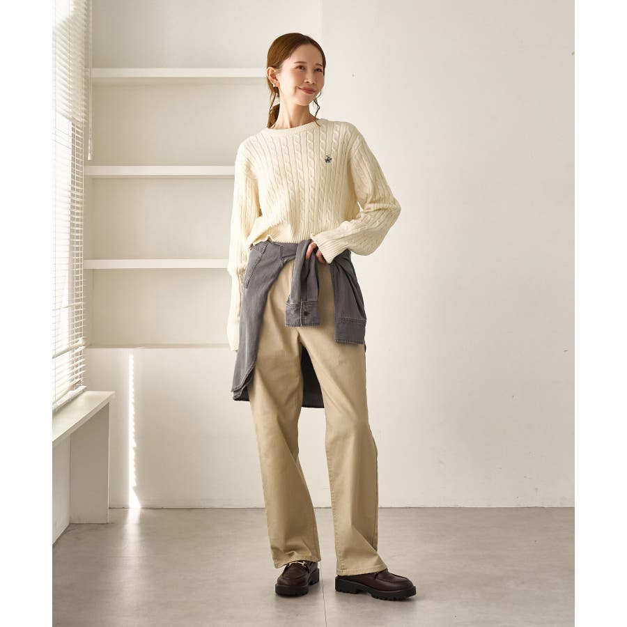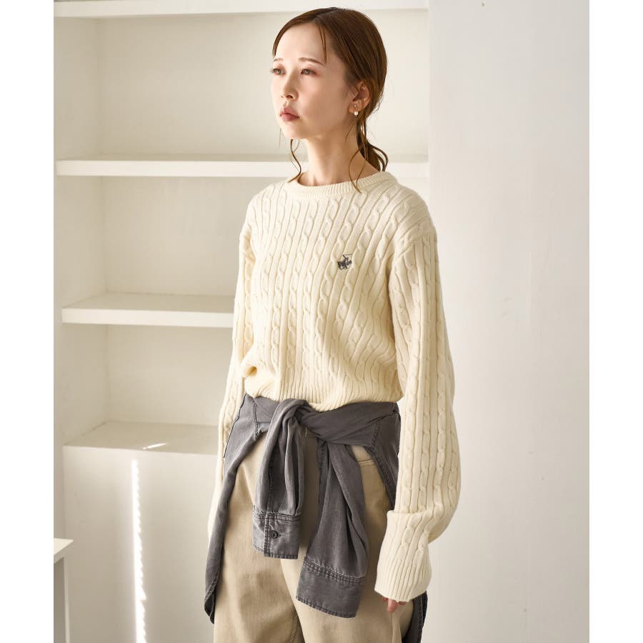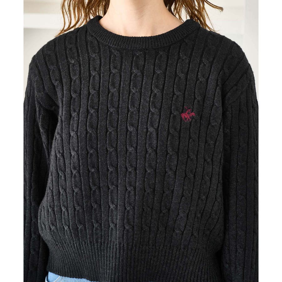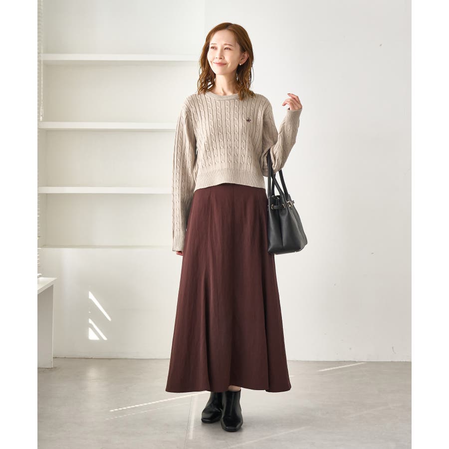 ・立体感のあるケーブル編みと、ほんのり短めのクロップド丈が絶妙にマッチ。