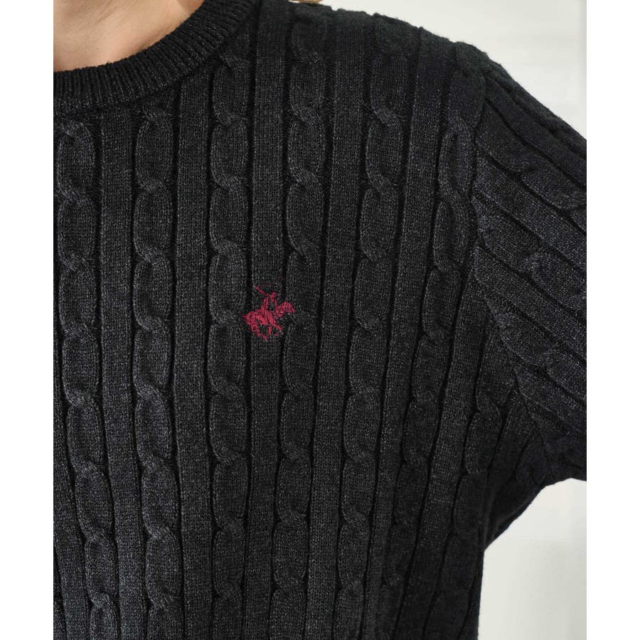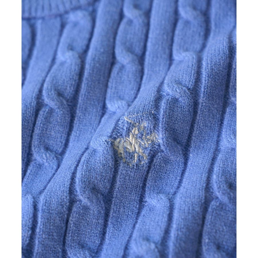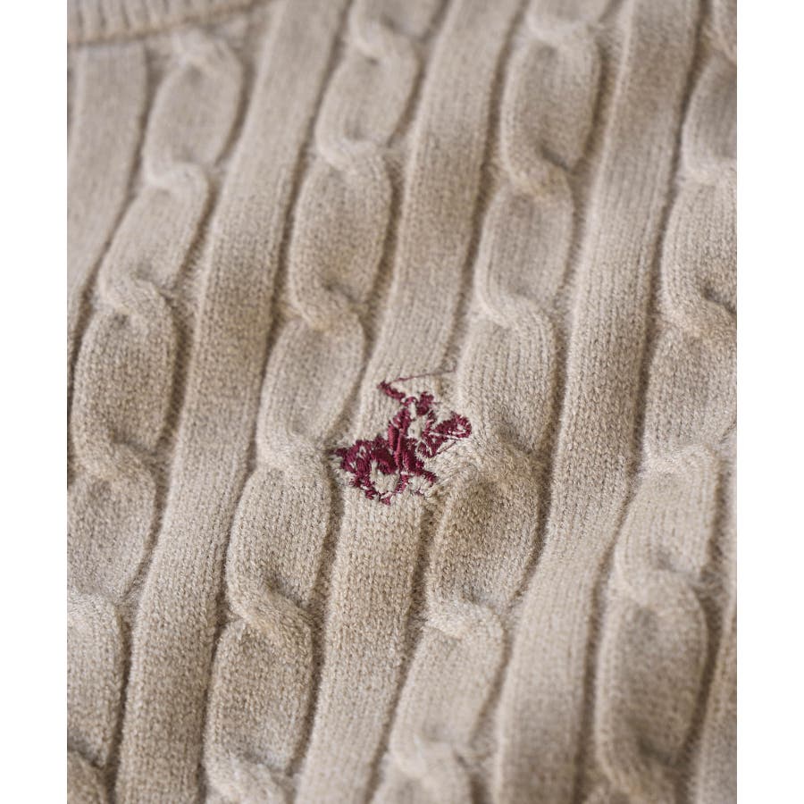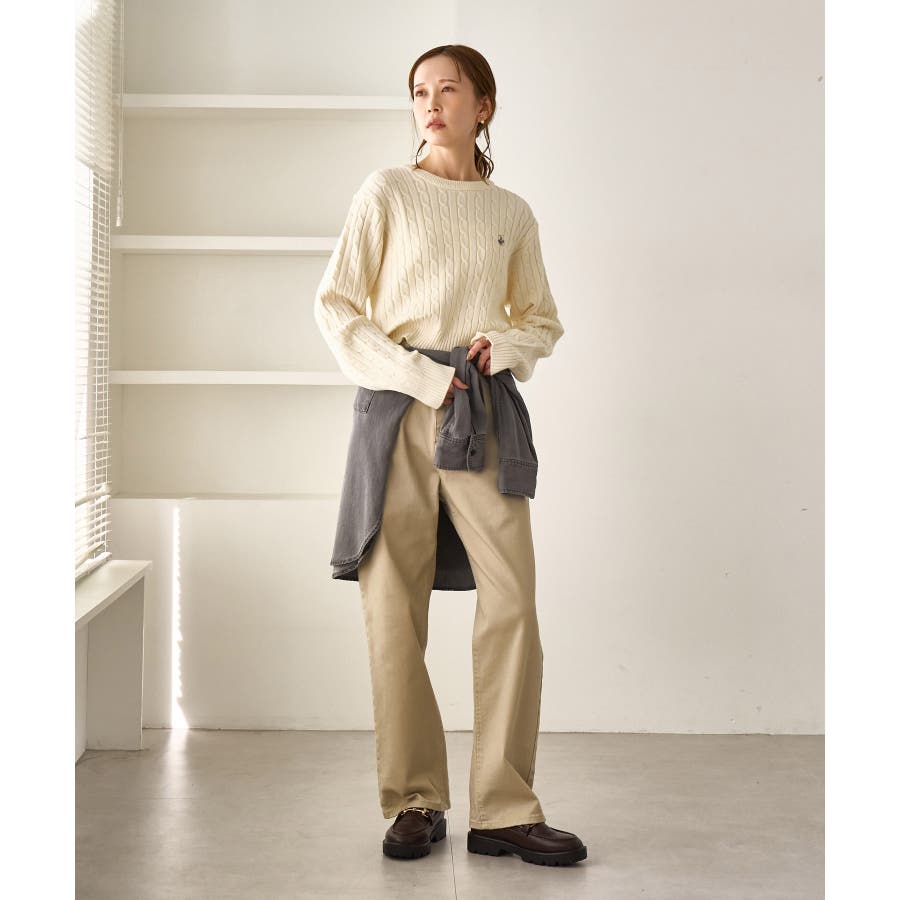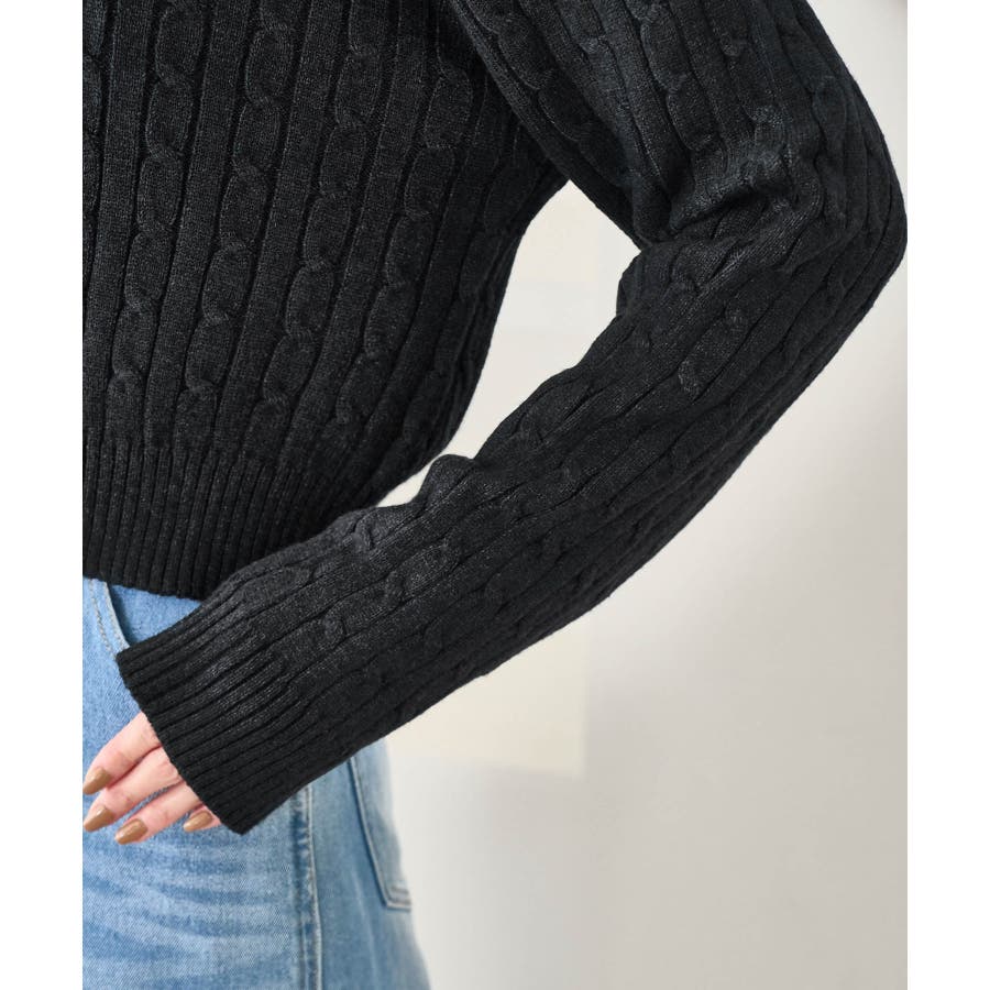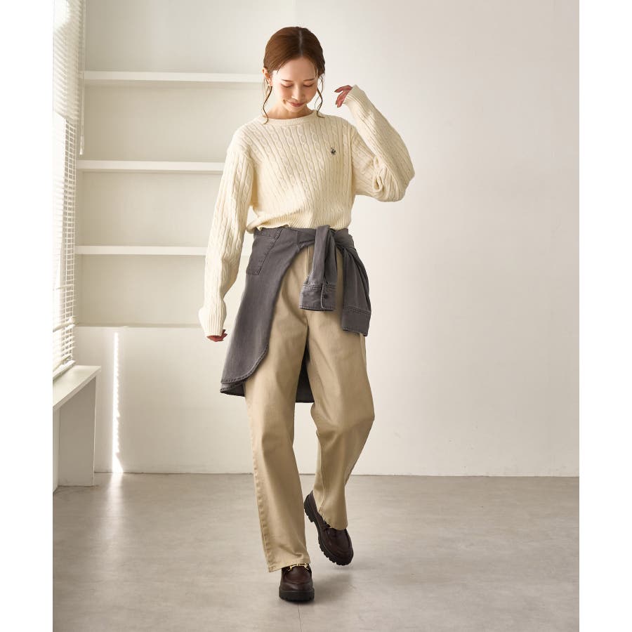 ・立体感のあるケーブル編みと、ほんのり短めのクロップド丈が絶妙にマッチ。