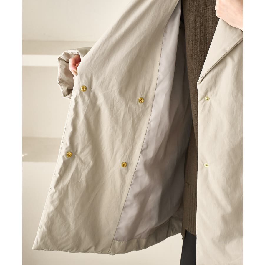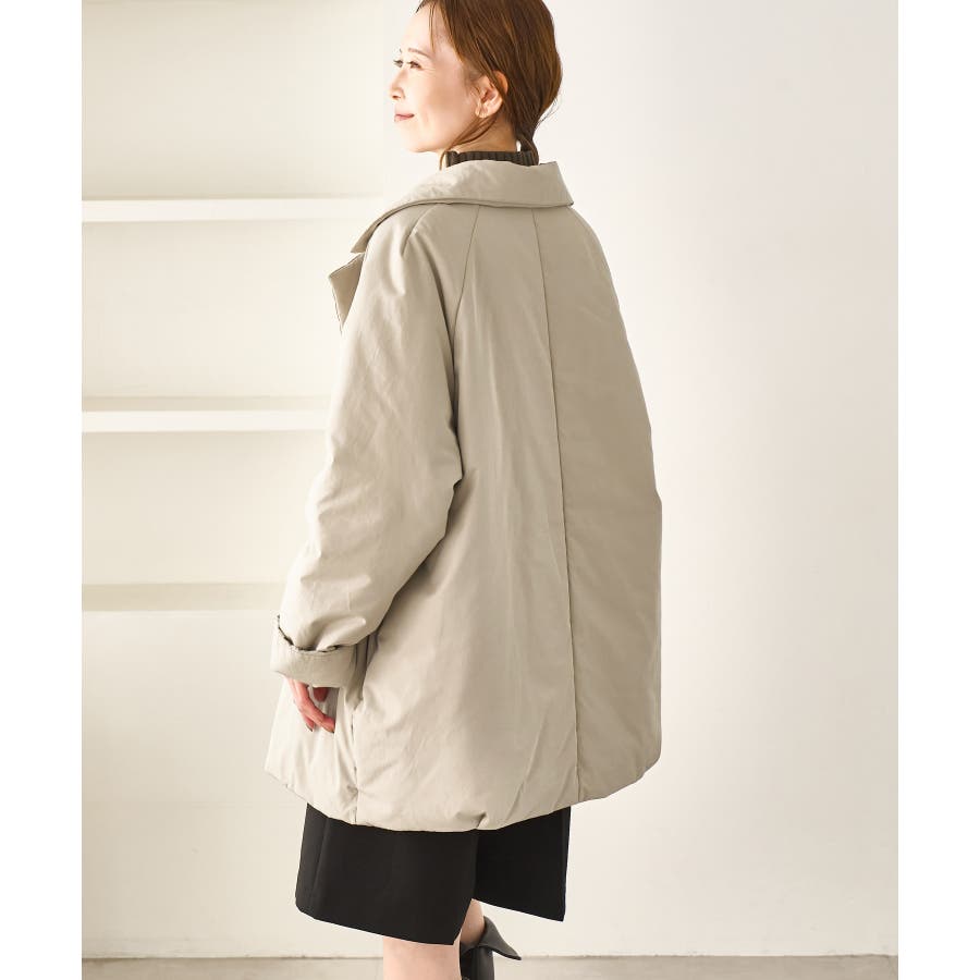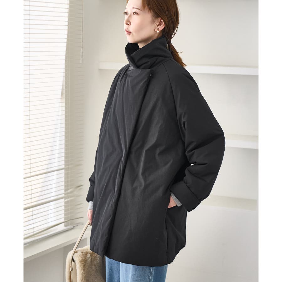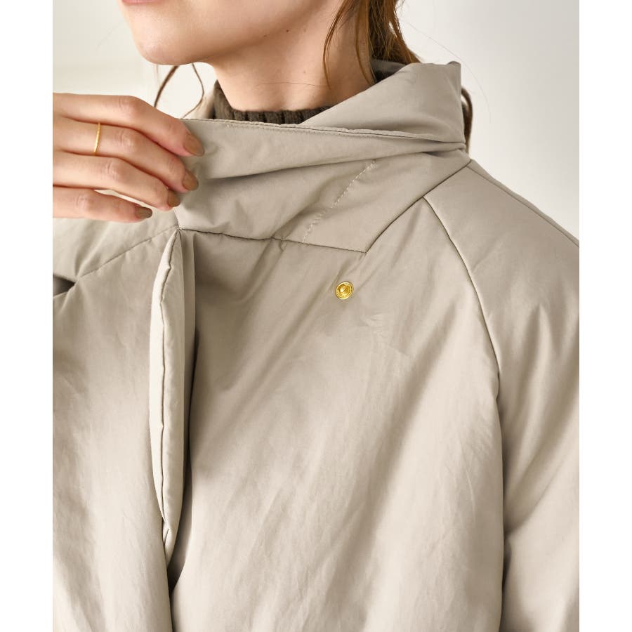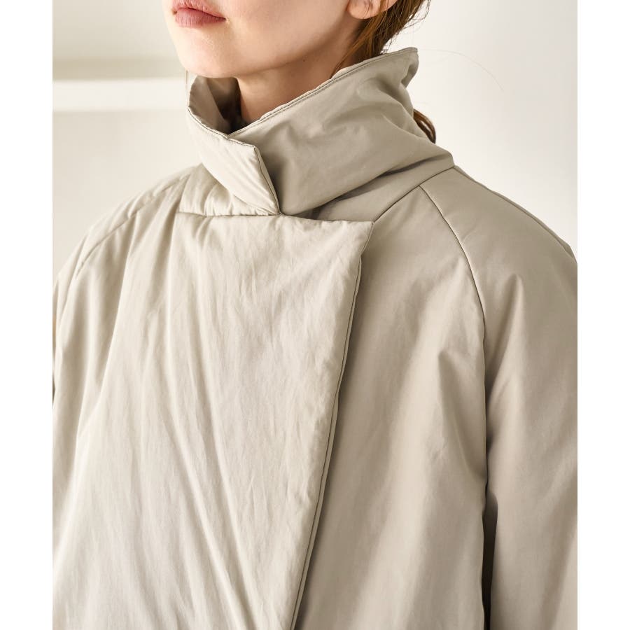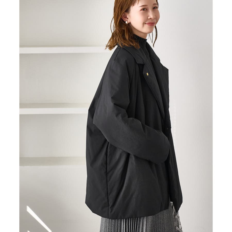 ・フロントのドットボタンの開閉でテーラードデザイン、上衿を立てるとスタンドデザインに。着こなしに変化を与える中綿アウター。