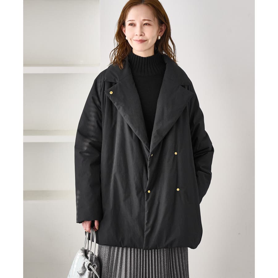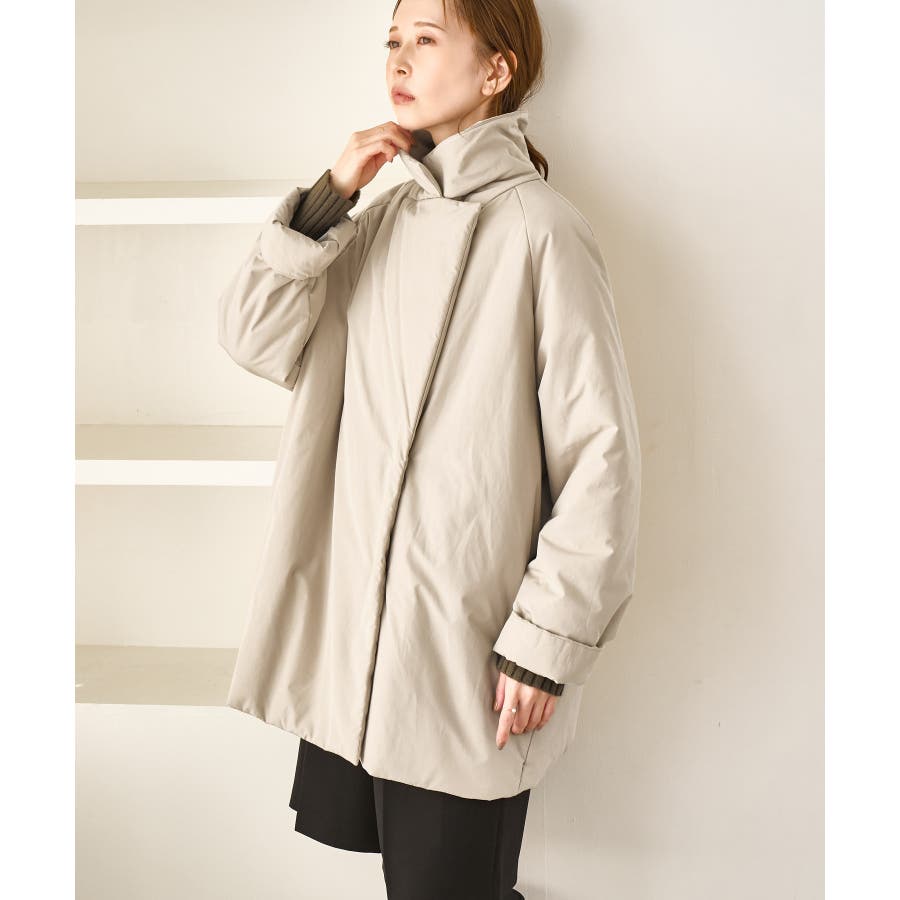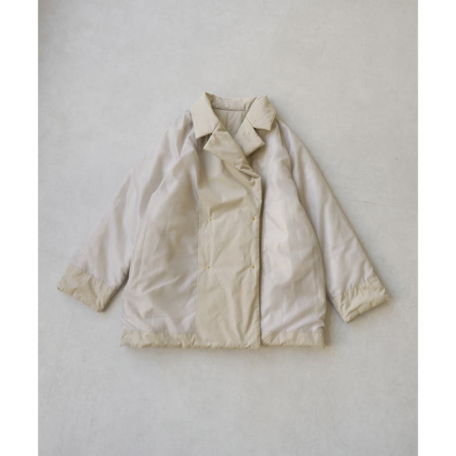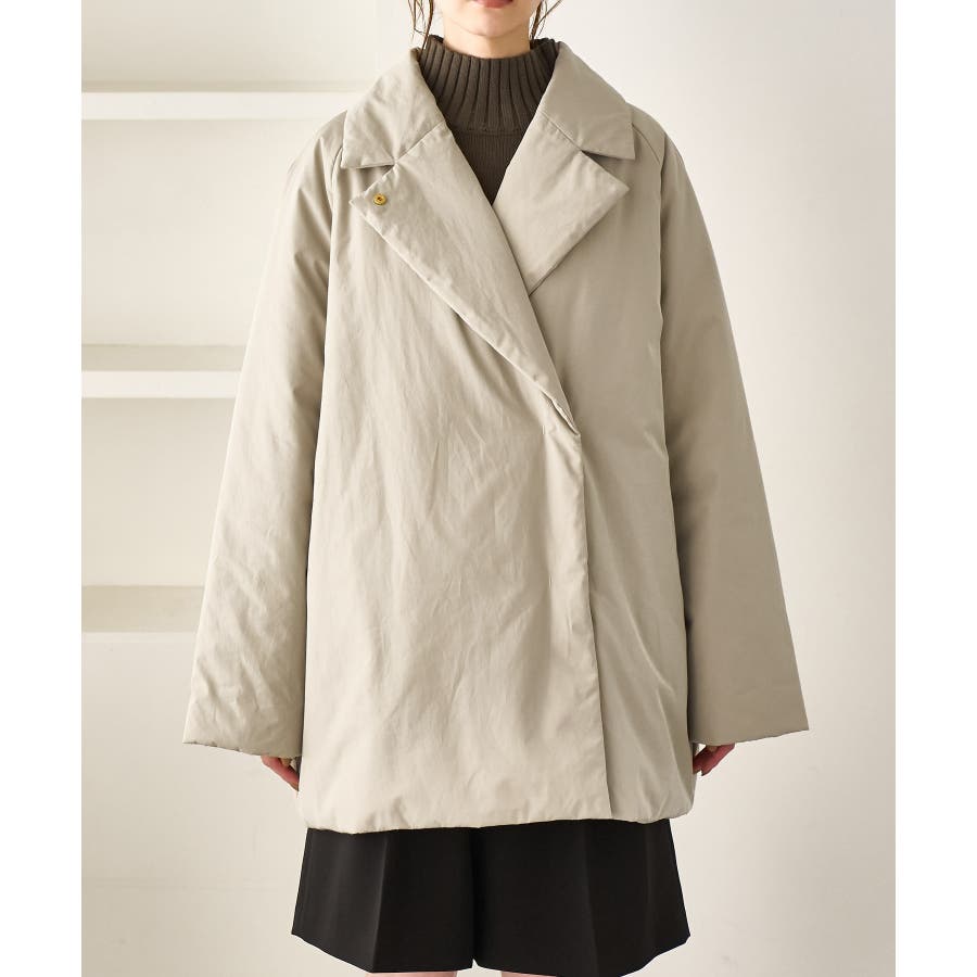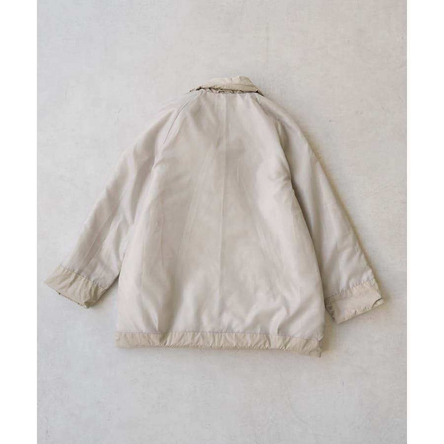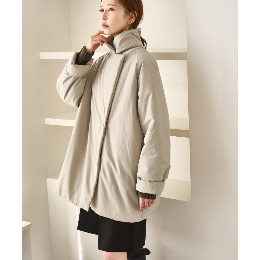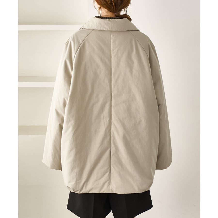 ・フロントのドットボタンの開閉でテーラードデザイン、上衿を立てるとスタンドデザインに。着こなしに変化を与える中綿アウター。