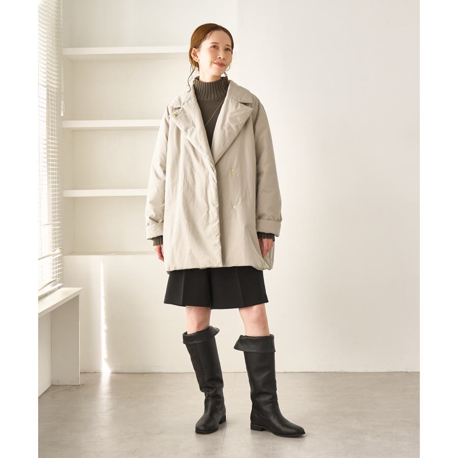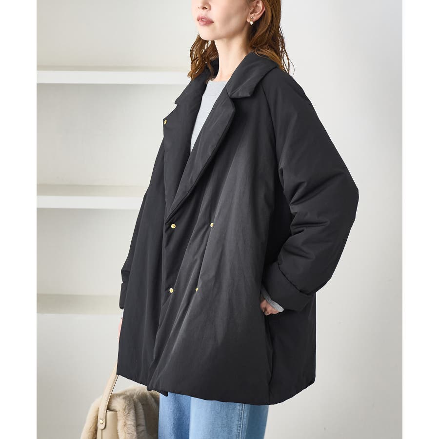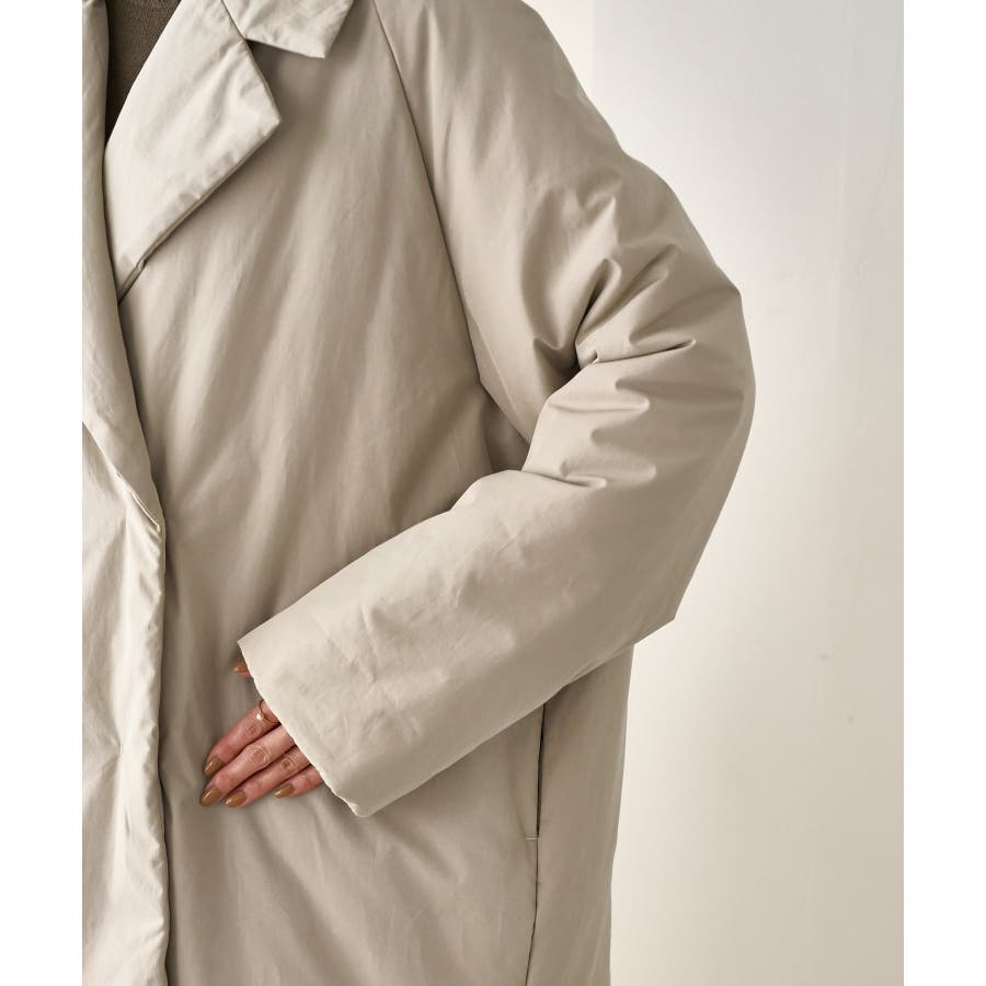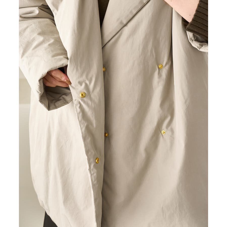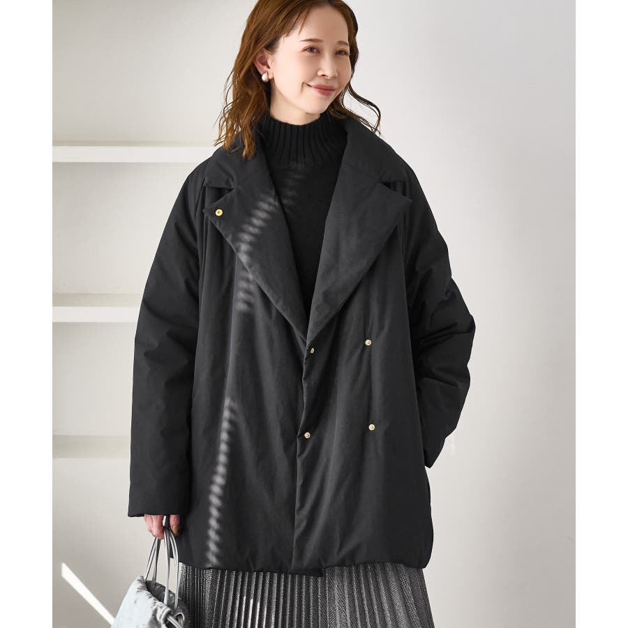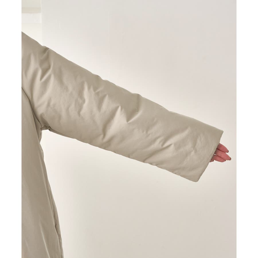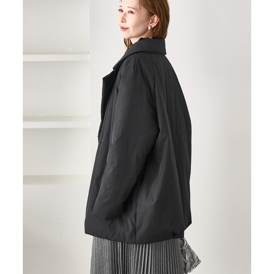 ・フロントのドットボタンの開閉でテーラードデザイン、上衿を立てるとスタンドデザインに。着こなしに変化を与える中綿アウター。