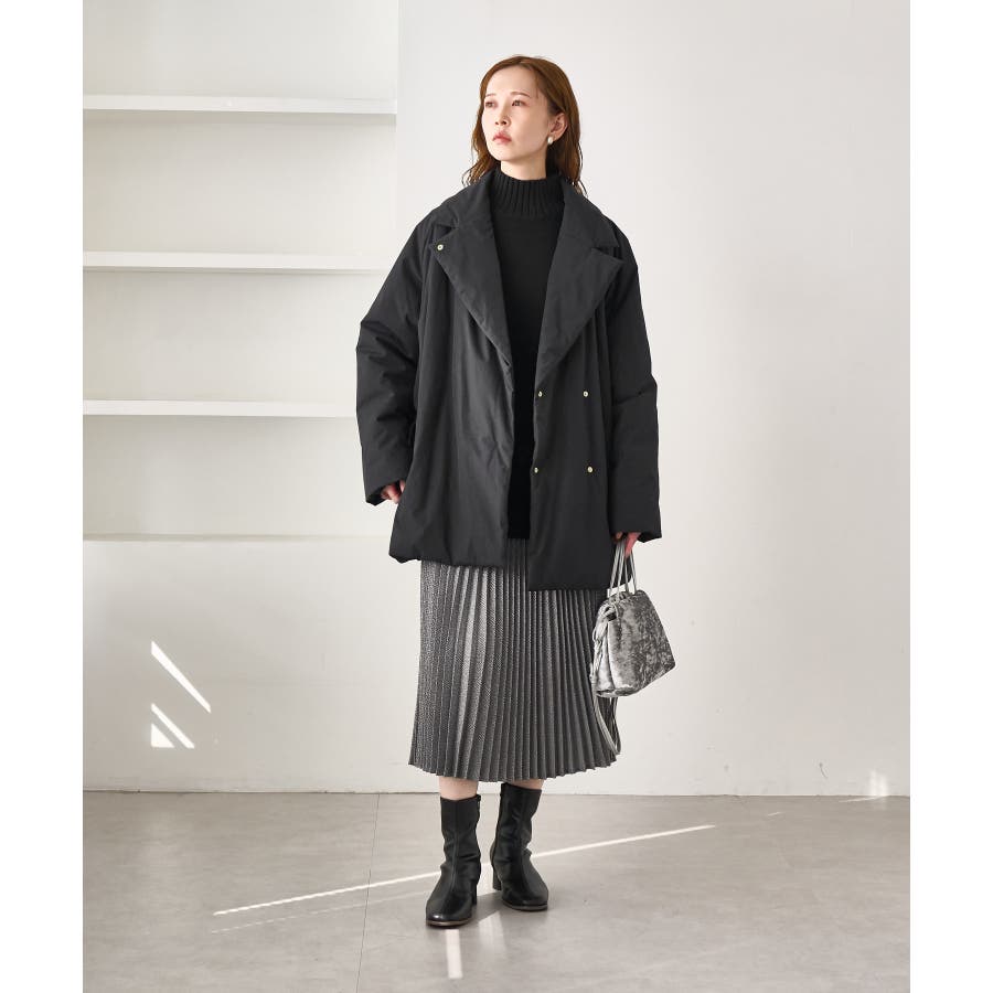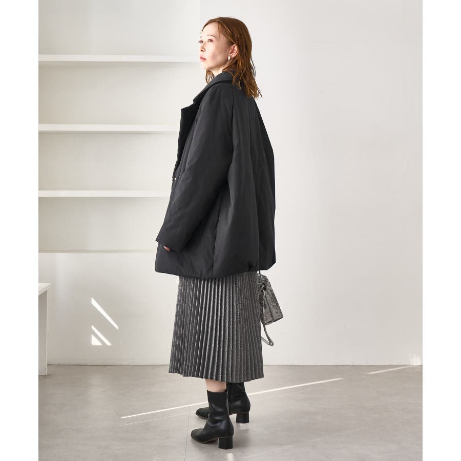 ・中綿のボリューム感がポイントのアウターにはボトムはアイラインスカートやパンツ、ナロースカートなどがベスト。