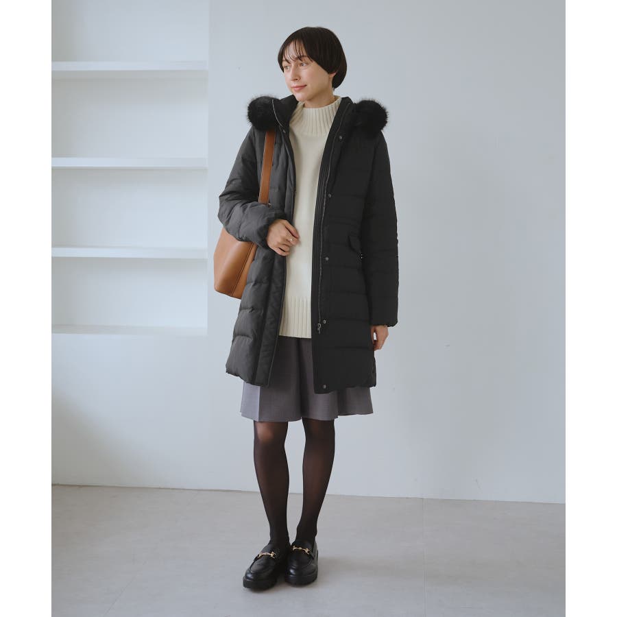 ・きれいめな装いにも合わせやすい上品なダウンコートは通勤にも活躍。