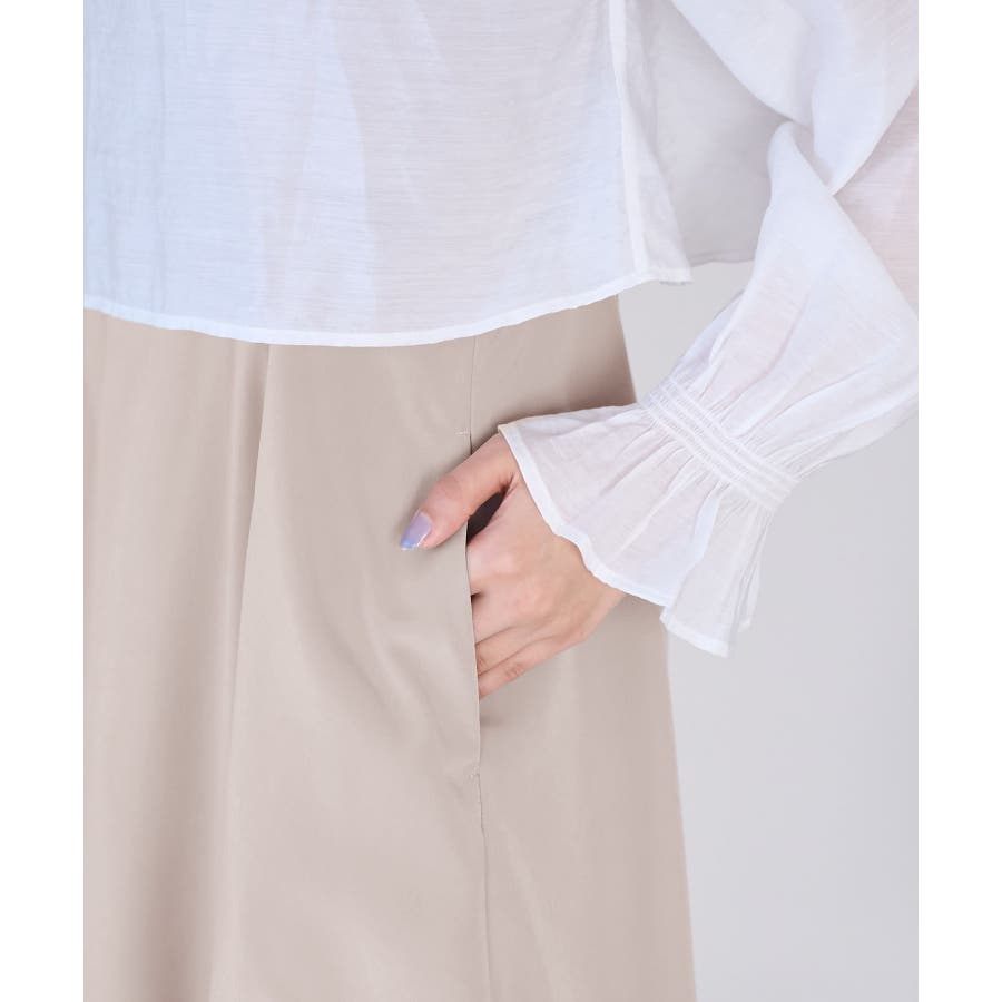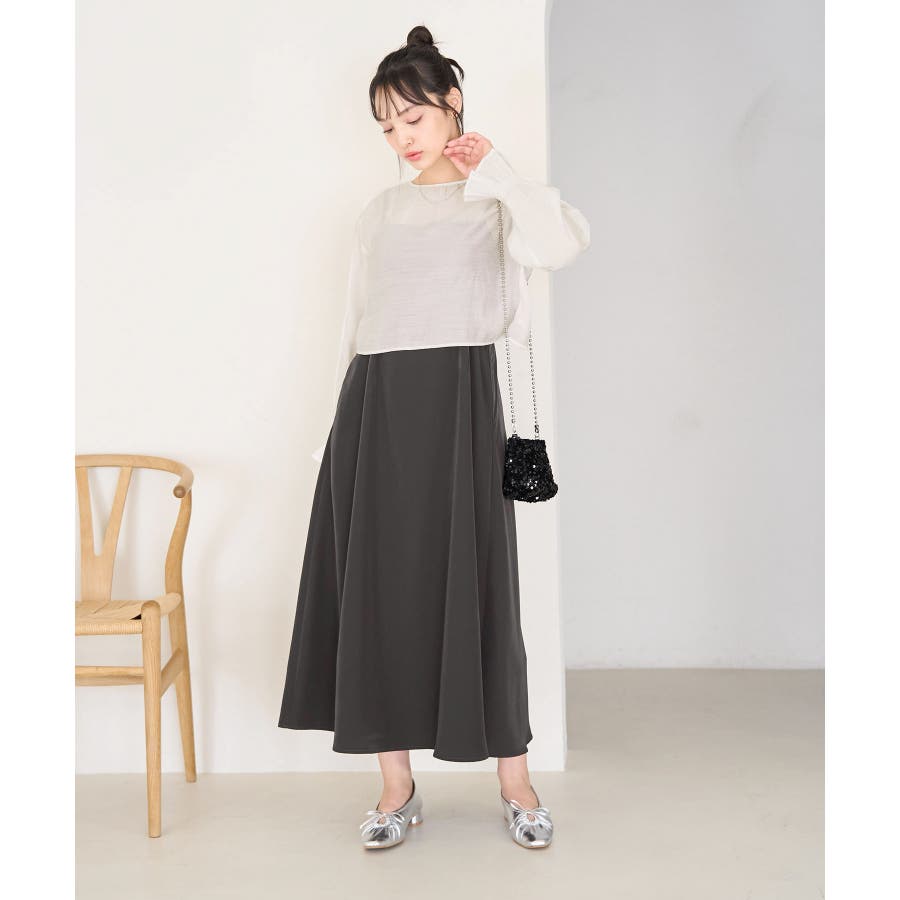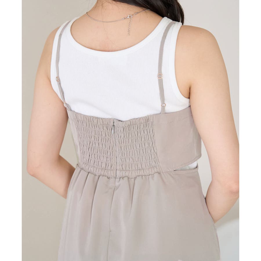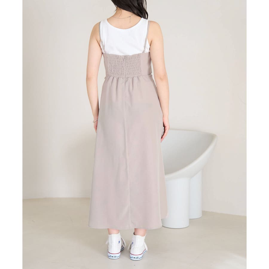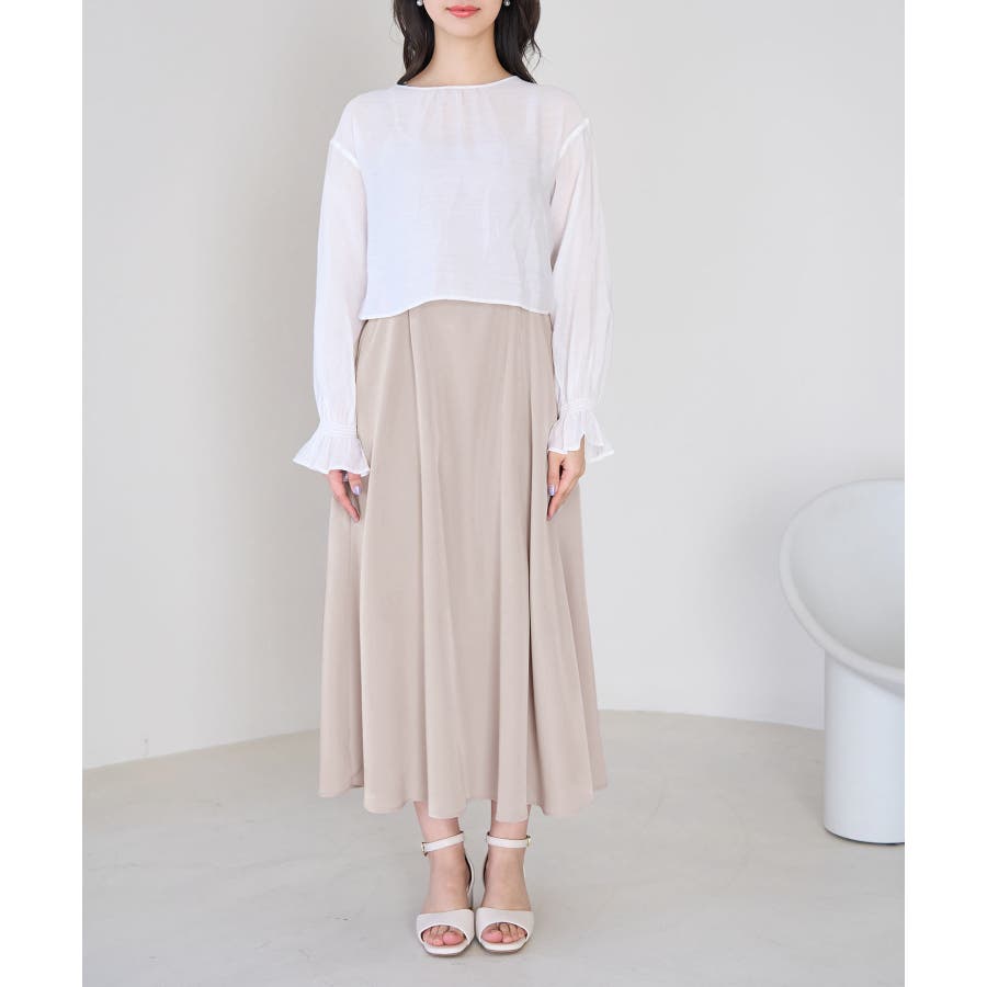 【デザイン・シルエット】 ・おしゃれなレイヤードを楽しめる、長袖ブラウスとキャミソールドレスのセットアイテム。 ・ブラウスは透け感を楽しめるシアー素材で、ギュッと袖口を絞ったキャンディスリーブがスウィート。 ・キャミソールドレスはストラップアジャスタブル仕様で、トップは後ろ側がギャザー使い。 ・ブラウスは前後2WAYで着用可能。 【カラー】 ・チャコール(06):ライトベージュブラウス×チャコールワンピース ・ベージュ系(28):オフホワイトブラウス×ベージュワンピース 【スタイリングポイント】 ・それぞれ単品でも着回し可能。 ・寒い日には、ブラウスを薄手のタートルネックプルオーバーと重ねて。 ・キャミソールドレスは、インナーにTシャツを重ねてもOK。 ----------------------------- 裏地:ブラウスはなし、ワンピースはあり 透け感:ブラウスはあり、ワンピースはなし 伸縮性:なし 生地感・厚さ:ブラウスは薄手、ワンピースは普通 ポケット:ブラウスはなし、ワンピースはあり その他仕様:ブラウスは袖口ゴム、ワンピースは後ろファスナーあり 季節:春・夏 ----------------------------- ※撮影時の光、お使いのモニター環境によって色の見え方が違う場合がございます。 ※モデル身長:163cm 着用サイズ:38