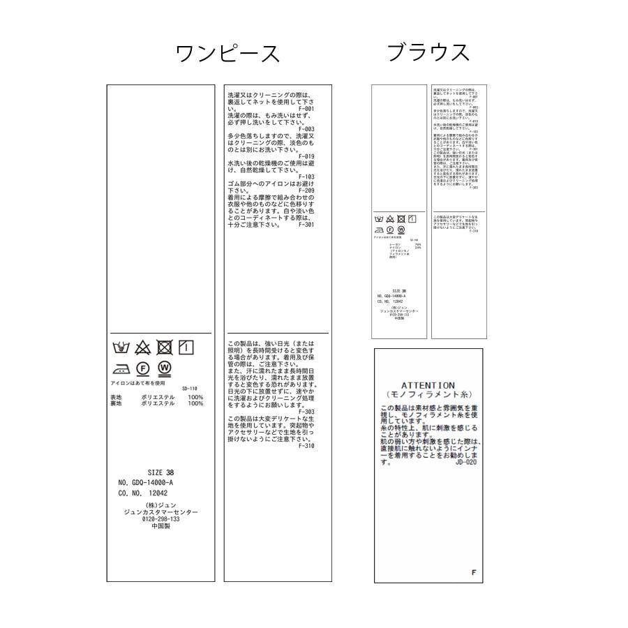 | 素材 | チャコール(06):(ブラウス) レーヨン 76% ナイロン 24% (ナイロンモノフィラメント糸使用) (ワンピース) (表地) ポリエステル 100% (裏地) ポリエステル 100%|ベージュ系(28):(ブラウス) レーヨン 76% ナイロン 24% (ナイロンモノフィラメント糸使用) (ワンピース) (表地) ポリエステル 100% (裏地) ポリエステル 100% |