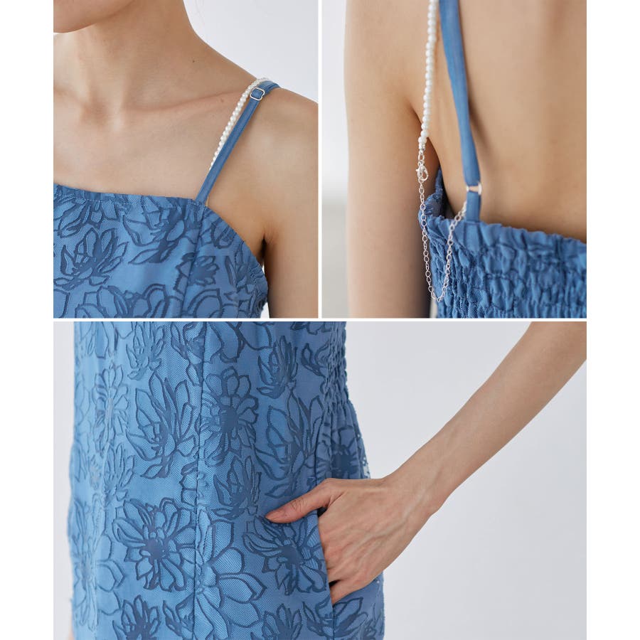 ・ワンピースは肩紐アジャスト仕様、後ろ側ギャザーで、サイドポケット付き。