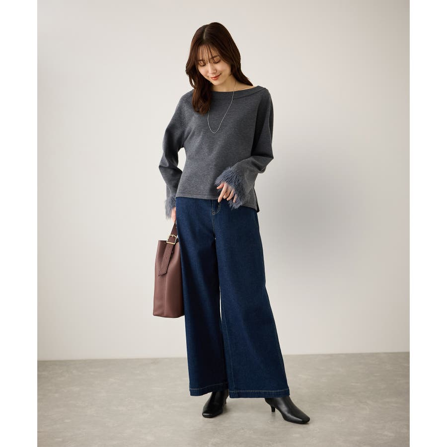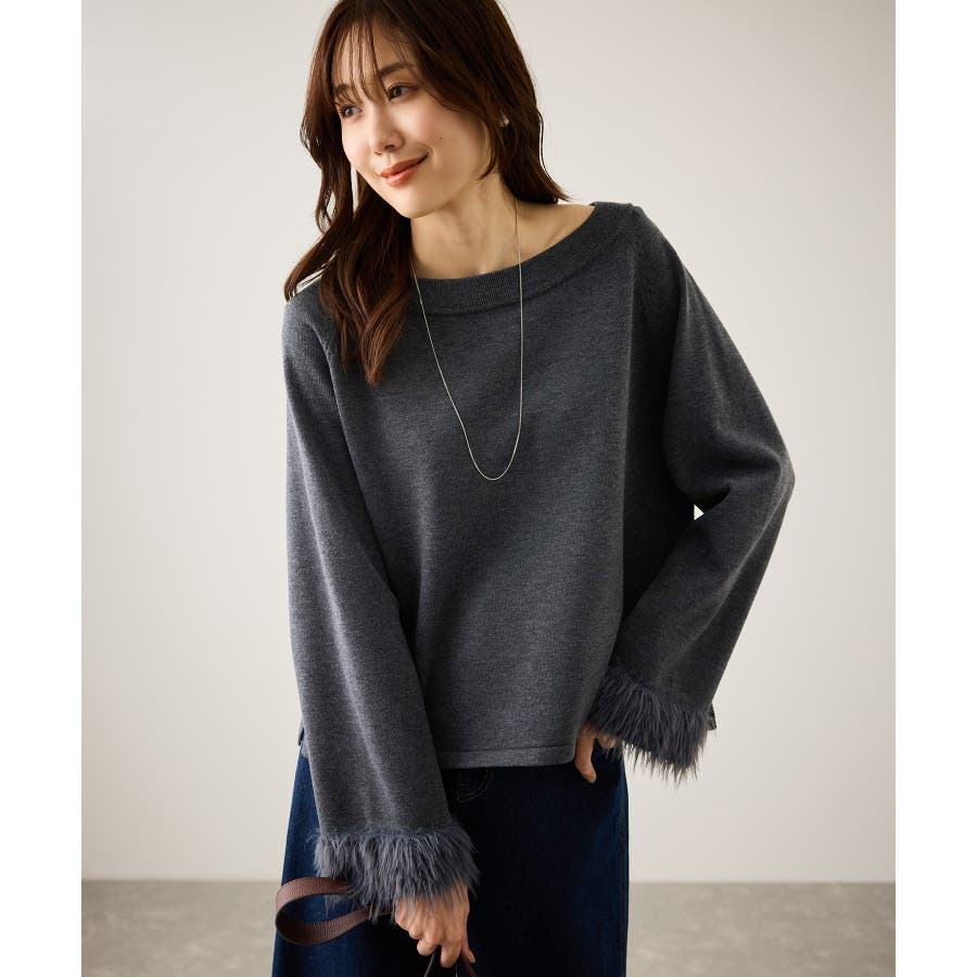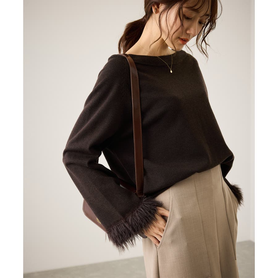 ・ゆったりとリラックス感があり、フォルムの出るシルエットと袖口のフェザー使いがポイントのトップス。