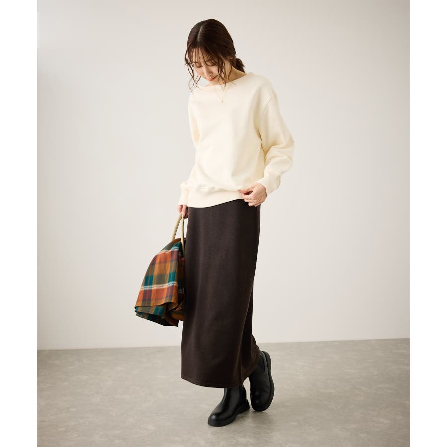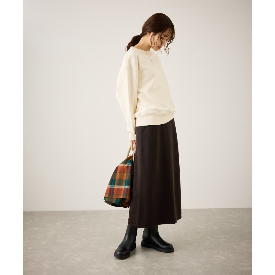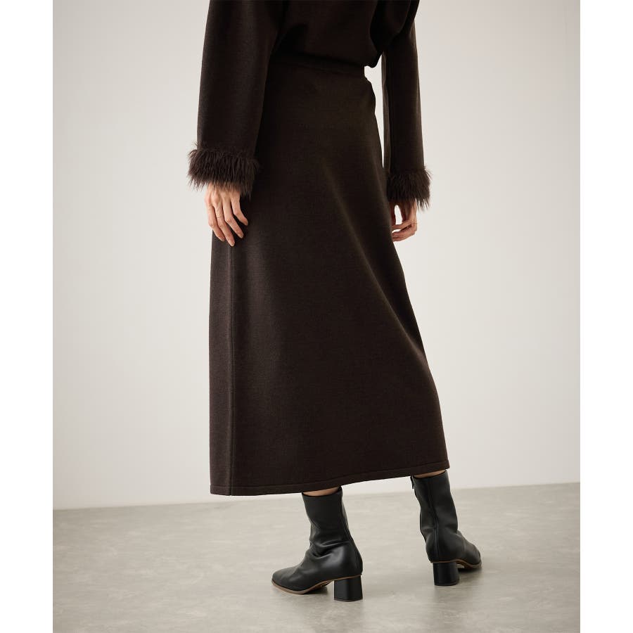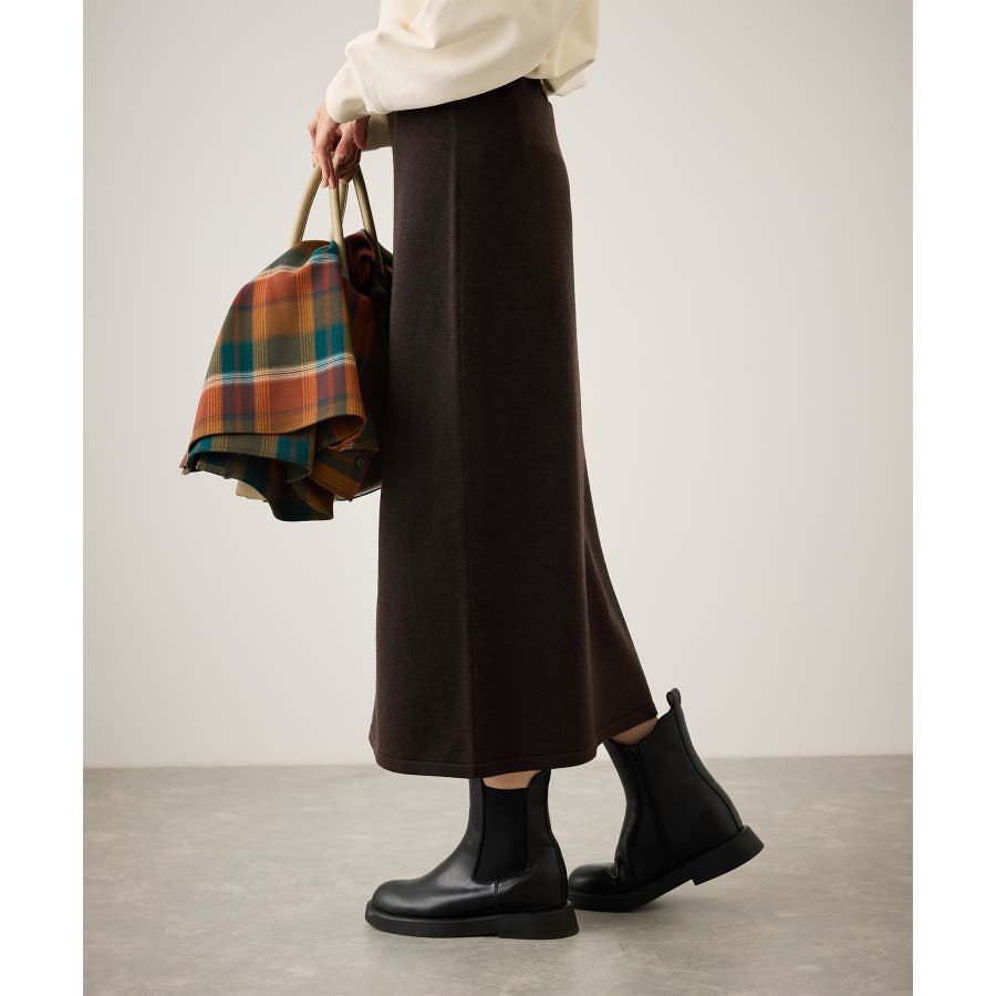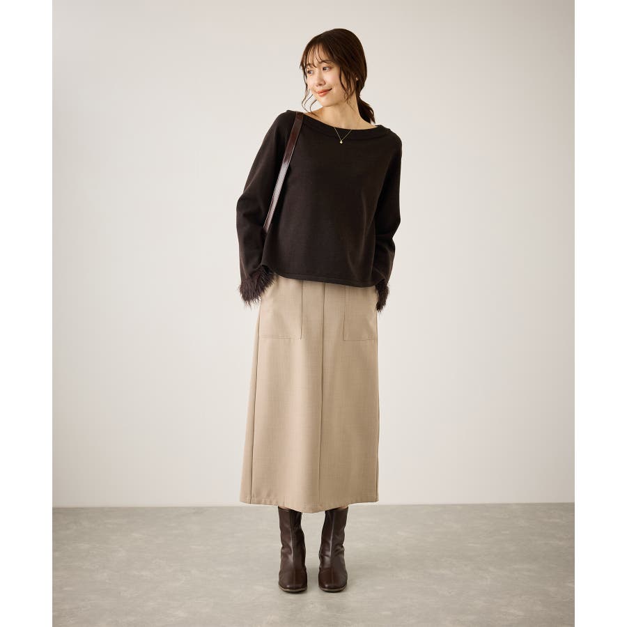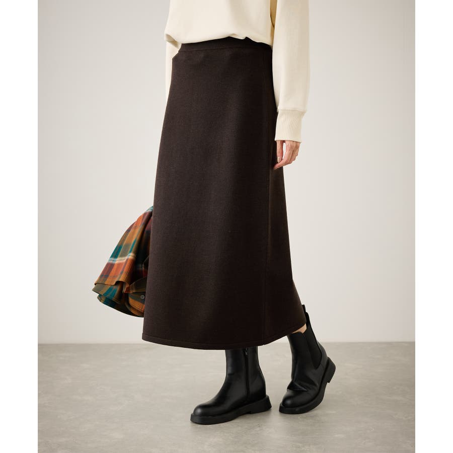 ・スッキリとしたトラペーズラインのミディ丈スカート。