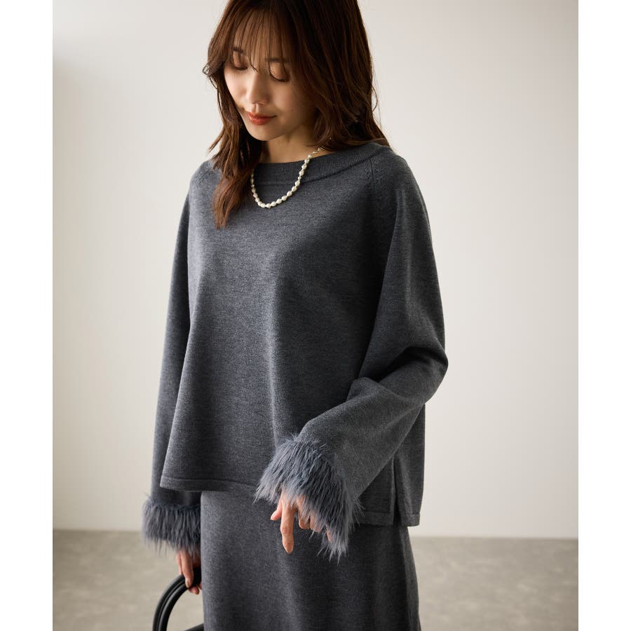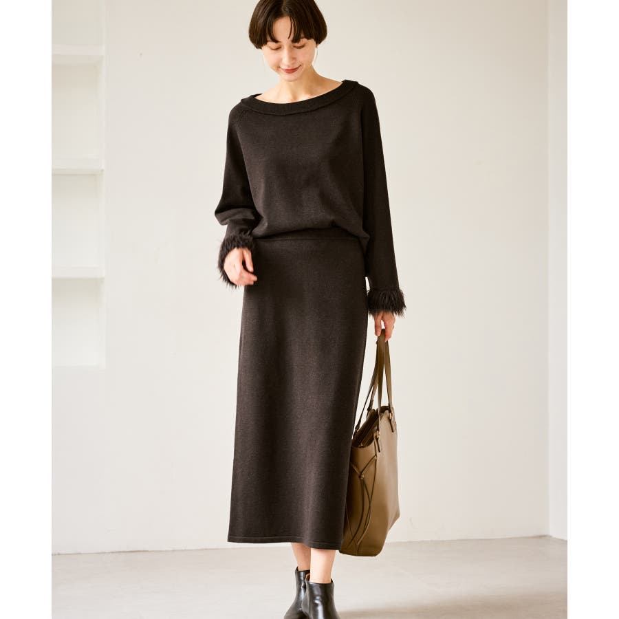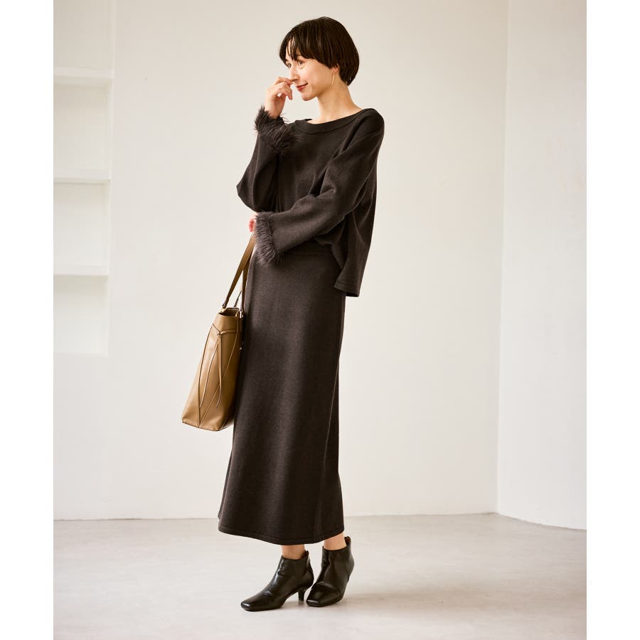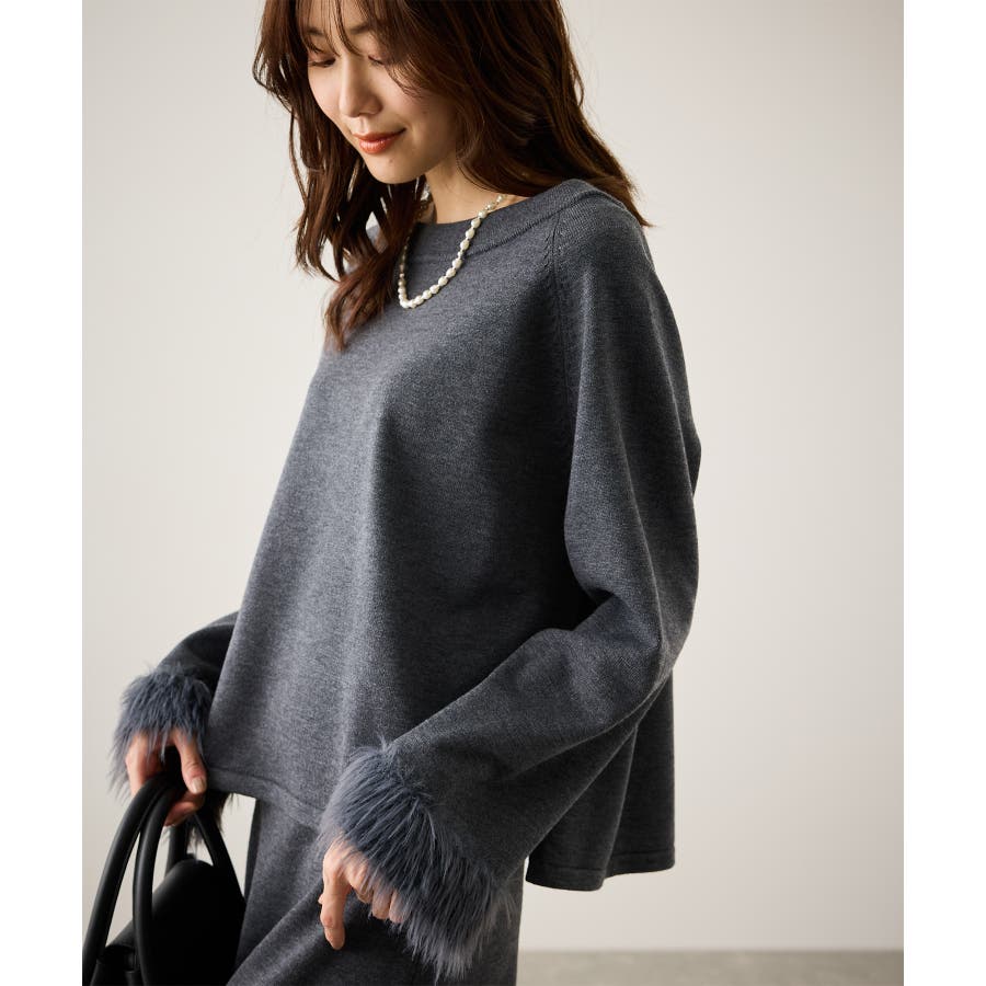 フェイクファースリーブニットセットアップ