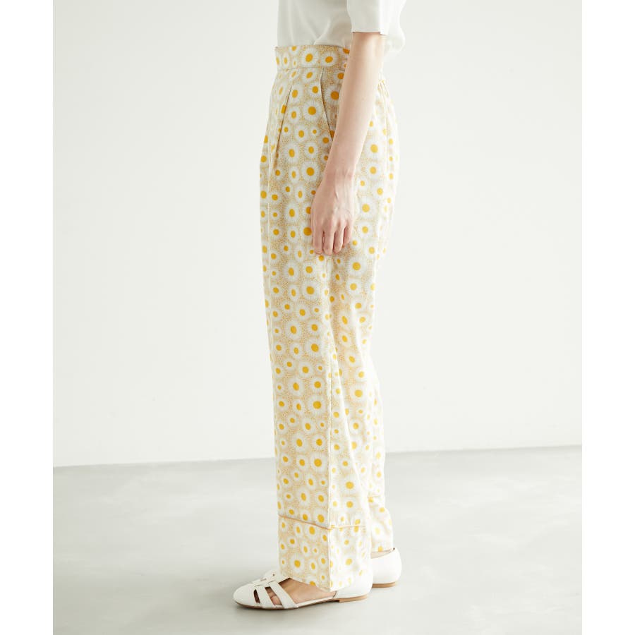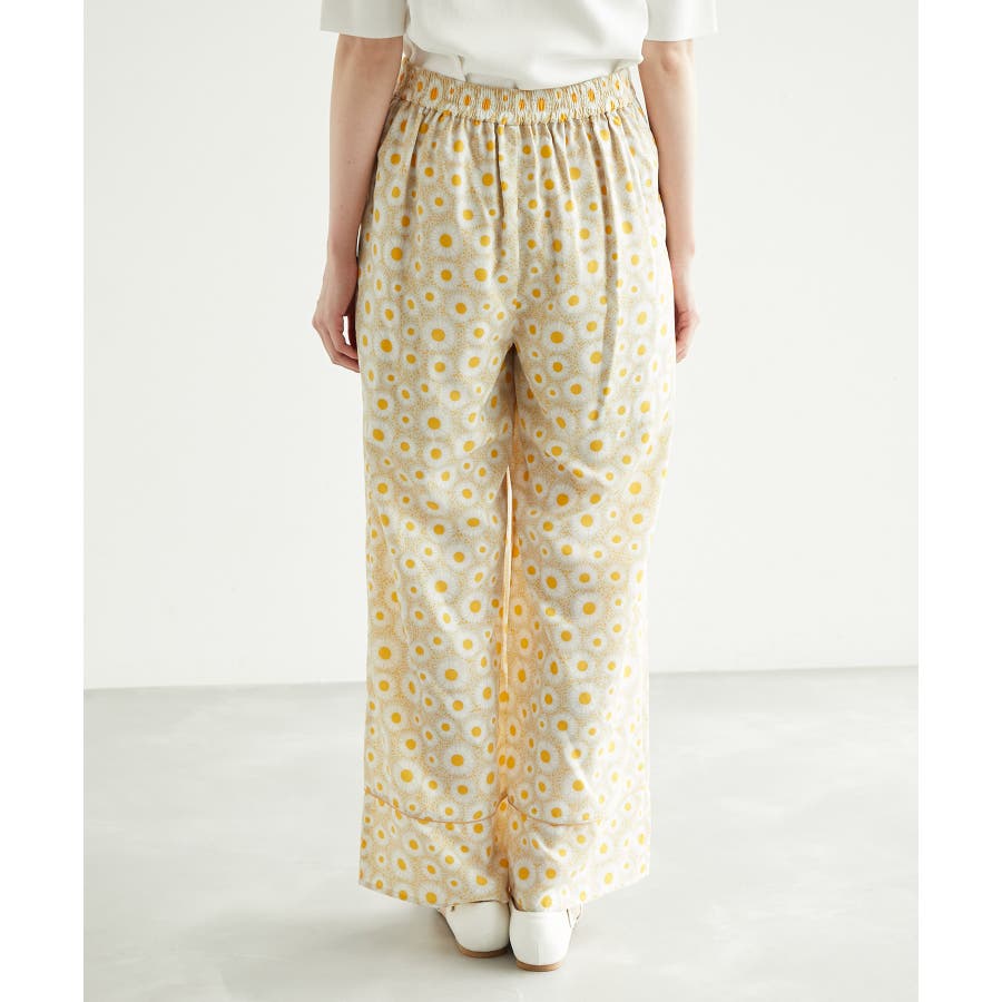 【素材感】 ・再生ポリエステルを使用したサステナブルなアイテム。 【デザイン・シルエット】 ・アデリアレトロ柄プリントのワイドパンツ。 ・裾はパイピングコードを挟んだ切り替えですっきり感をプラス。 ・ベルトラインは後ろ側のみギャザー使いに。 【カラー】 ・ネイビー、イエローの2色展開。 【スタイリングポイント】 ・開襟シャツに合わせてレトロムード満載のスタイルに。 ・タイトなリブニット合わせもおすすめ。 ----------------------------- 裏地:あり 透け感:裏地がない部分はややあり 伸縮性:なし 生地感・厚さ:やや薄手 ポケット:あり ウエスト:後ろゴム 季節:夏 ----------------------------- ※撮影時の光、お使いのモニター環境によって色の見え方が違う場合がございます。 ※モデル身長:165cm 着用サイズ:38 : 【アデリアレトロ】 アデリア創業200年を迎えたガラス製品の先駆「石塚硝子株式会社」の食器ブランド。 「アデリアレトロ」は、かつて昭和の家庭で使われていたアデリアのグラスウェアを、現代でも安心してお使い頂けるようリメイクした製品です。 当時の魅力はそのままに、今のライフスタイルでも使いやすい製品として生まれ変わりました。