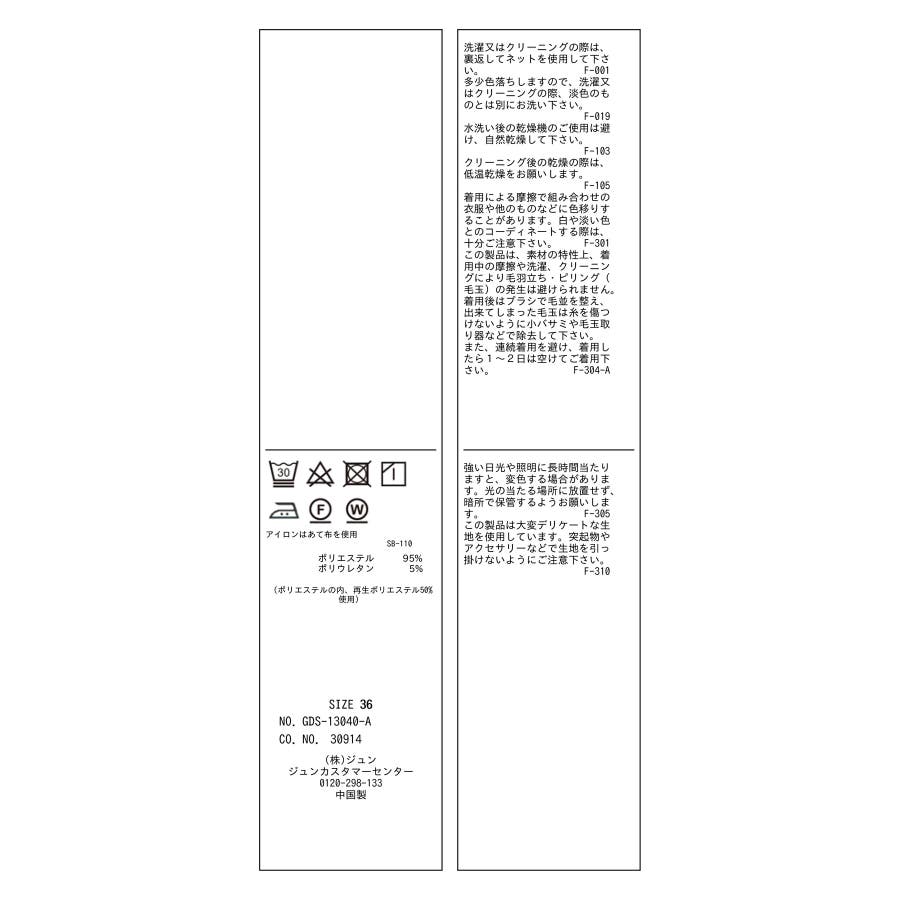 | 素材 | ブラック(01):ポリエステル 95% ポリウレタン 5%|ベージュ(27):ポリエステル 95% ポリウレタン 5%|ターコイズ(49):ポリエステル 95% ポリウレタン 5%|イエロー(80):ポリエステル 95% ポリウレタン 5% |