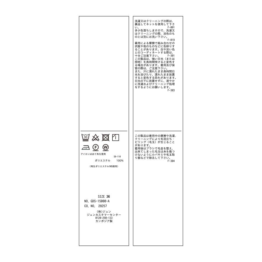【洗濯表記】洗濯機|漂白不可|タンブル乾燥不可|自然乾燥|アイロン仕上げ可|ドライ可|ウエットクリーニング可