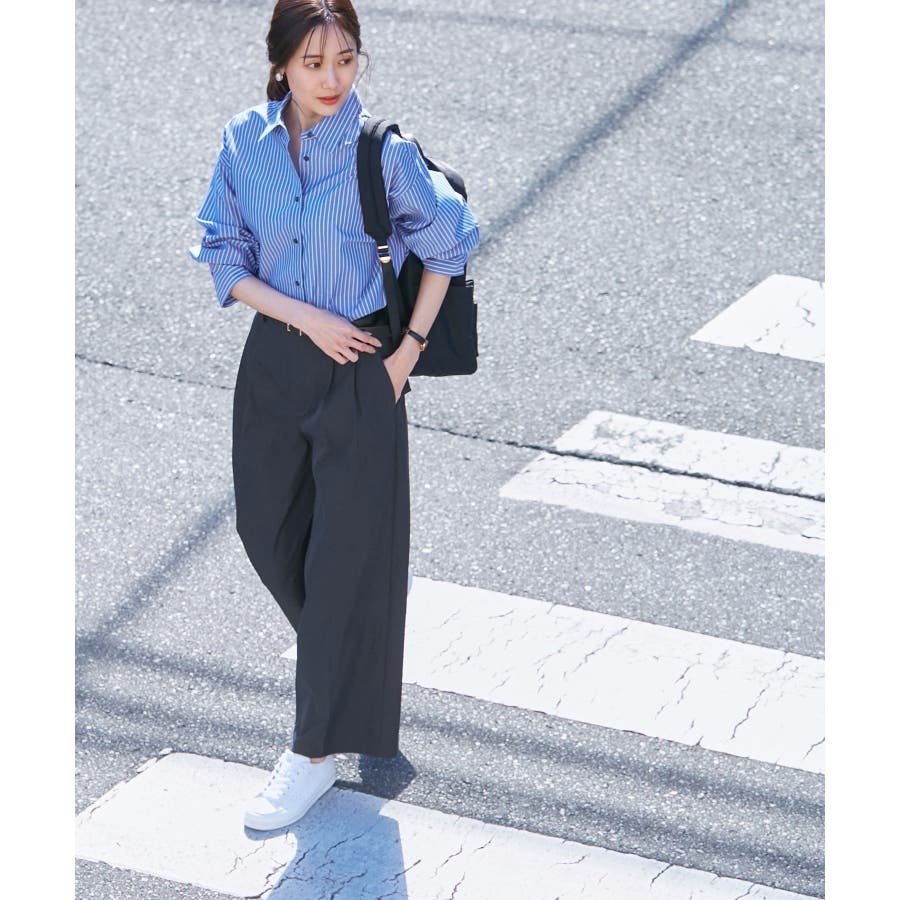 カジュアルすぎずオンオフ使え、さらにシワになりにくいのが嬉しいポイント。