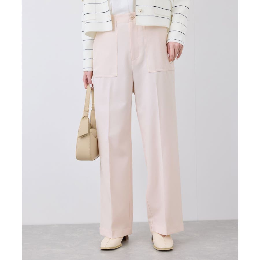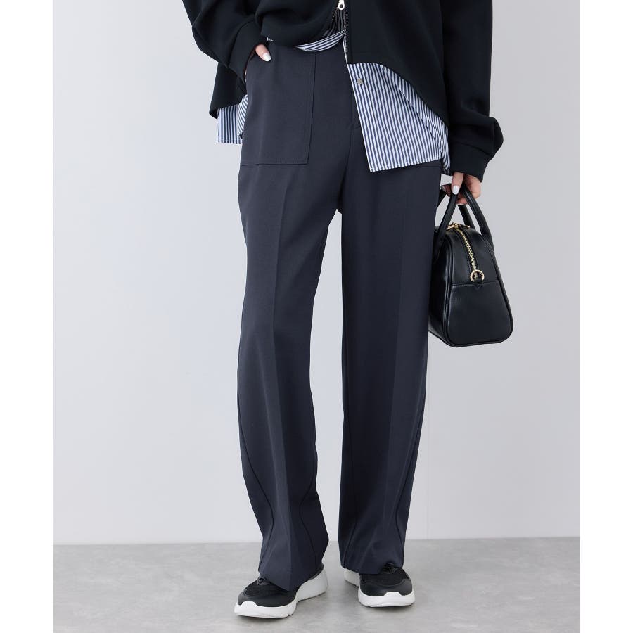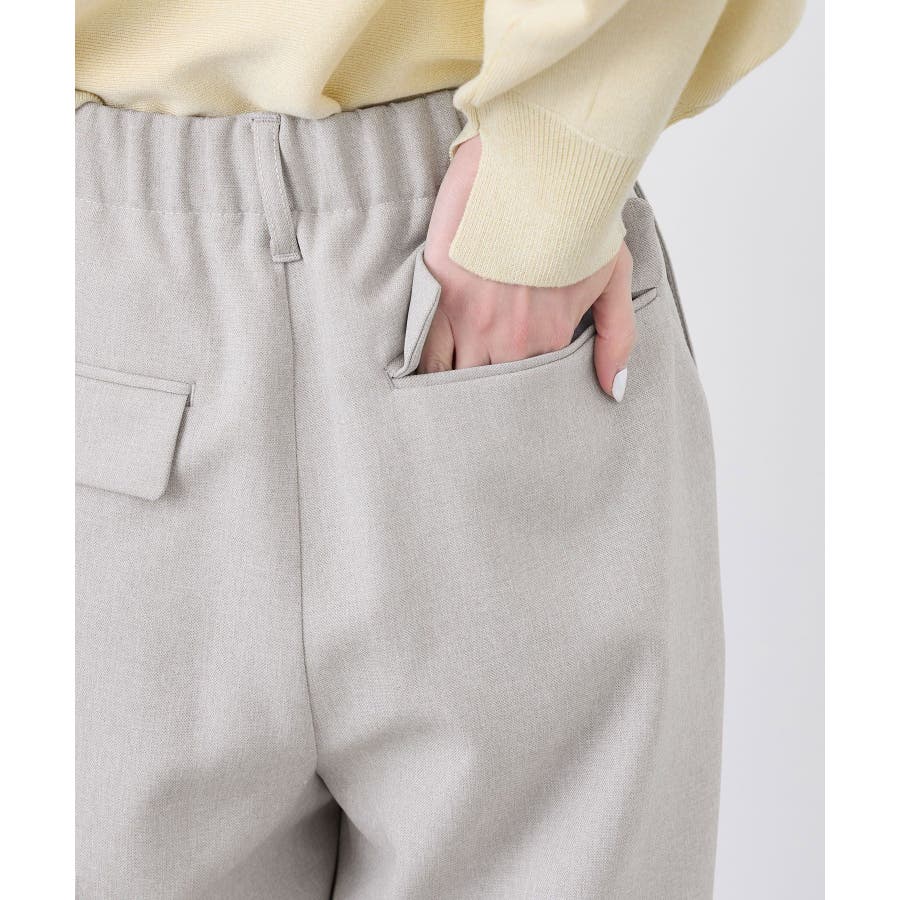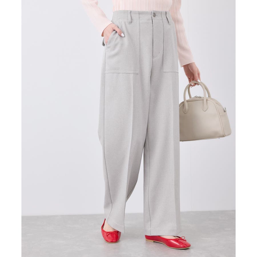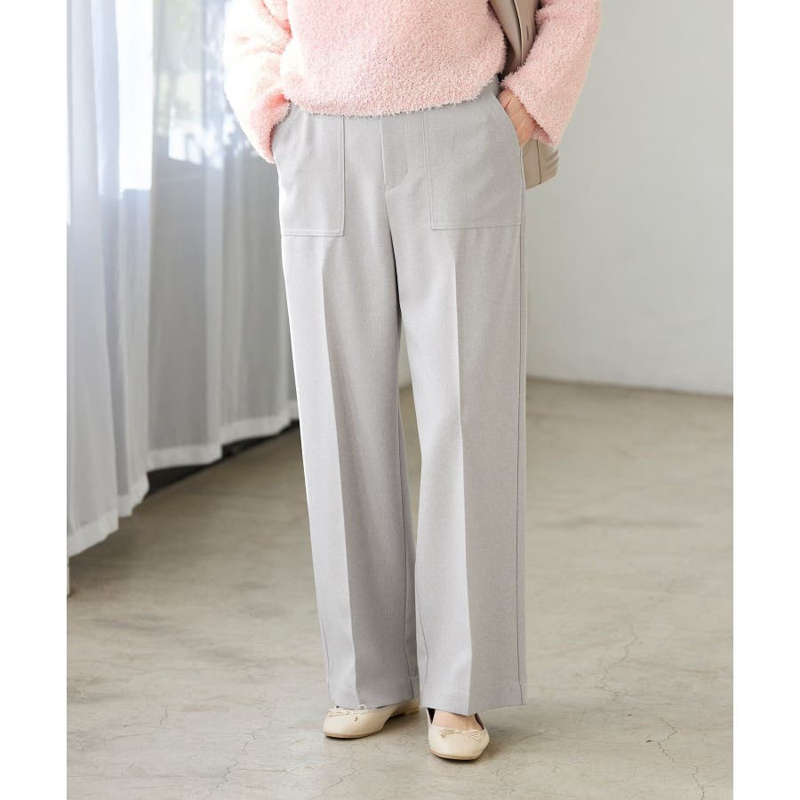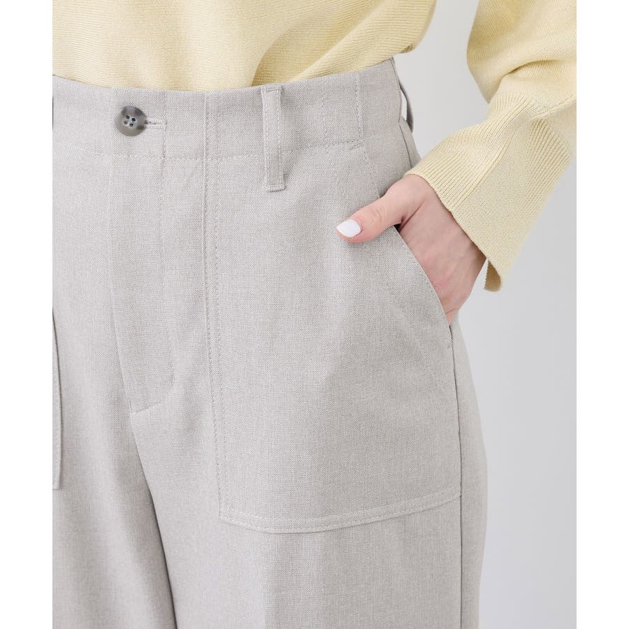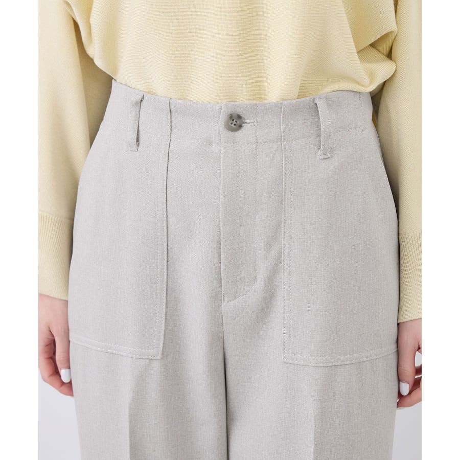 【素材感】 ・変形後の回復性能に優れたシワになりにくい素材。 ・洗濯機可能なイージー素材。 【デザイン・シルエット】 ・フロントの大きなスクエアポケットが特徴のベイカーパンツ。 ・バックスタイルは立体感のあるフラップポケットを配置。 ・センタークリース入りで、縦長のすっきりとした脚のラインを演出。 ・ベルトラインは後ろ側がギャザー使い。 【カラー】 ・カラーによって組成の混率が異なります。 グレー(07)ネイビー(40):ポリエステル 100% キナリ系(18)ピンク(63):(表地)ポリエステル 100% (裏地)ポリエステル 100% 【スタイリングポイント】 ・ハイカットスニーカー合わせがおすすめ。 ・きれいめなパンプス合わせなら大人な雰囲気に。 ・ゆるっとしたスウェットシャツやニットで抜け感をプラスして。 ----------------------------- 裏地:キナリ系(18)ピンク(63)は裏地あり、その他カラーはなし 透け感:なし 伸縮性:なし 生地感・厚さ:普通 ポケット:あり ゴム:後ろゴム 季節:春・夏・秋・冬 ----------------------------- ※撮影時の光、お使いのモニター環境によって色の見え方が違う場合がございます。 ※モデル身長:165cm 着用サイズ:38