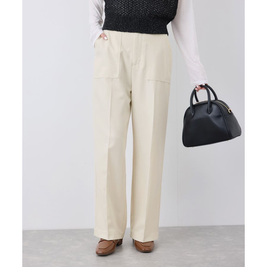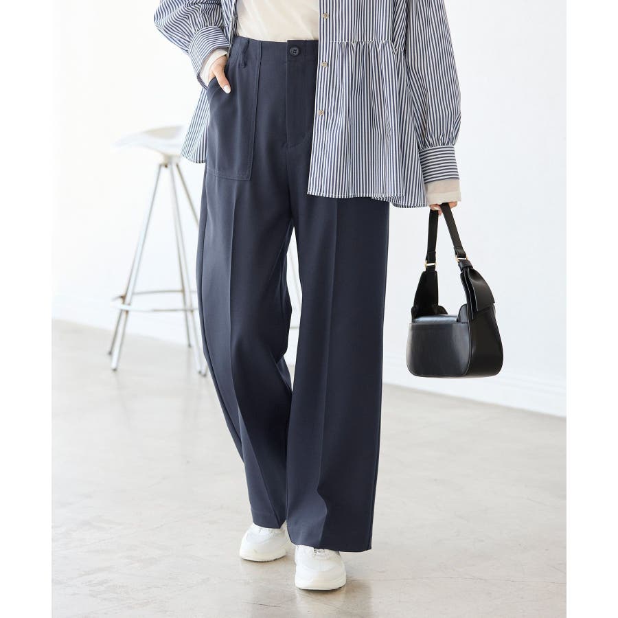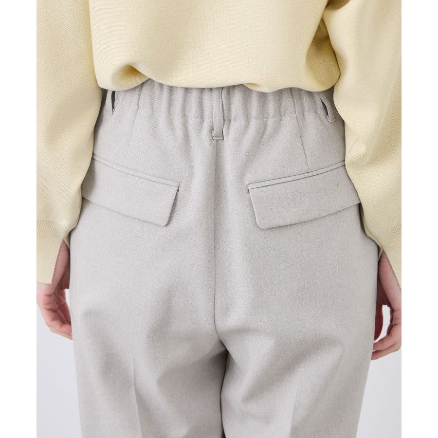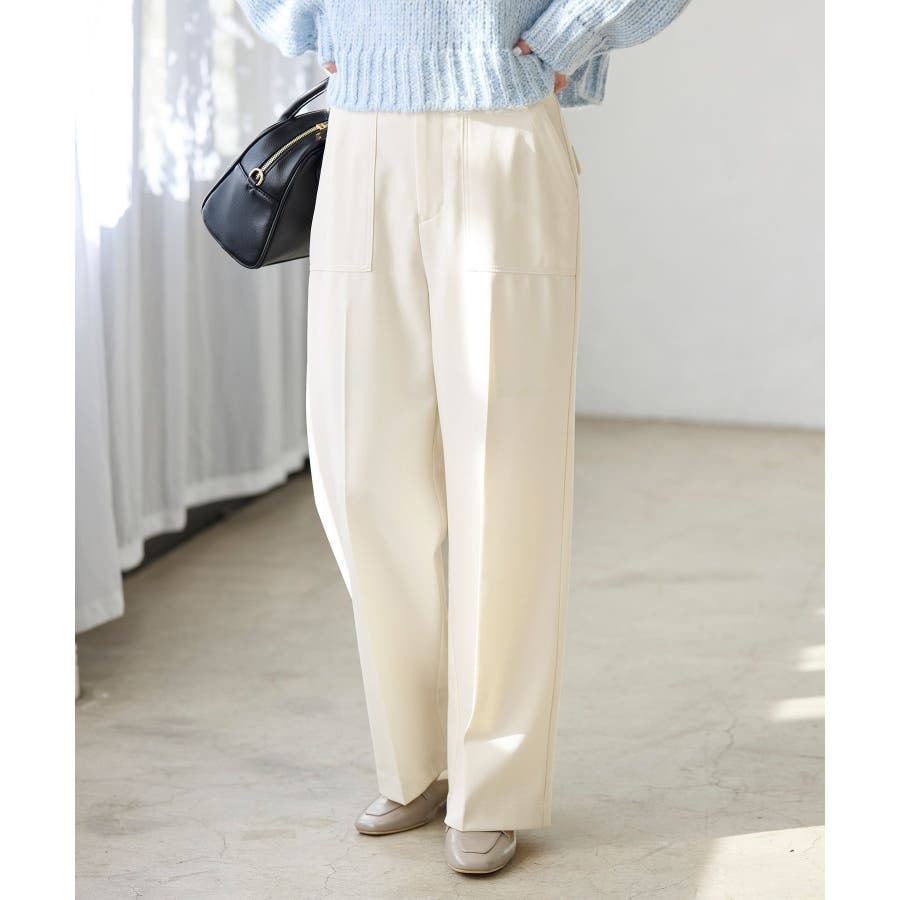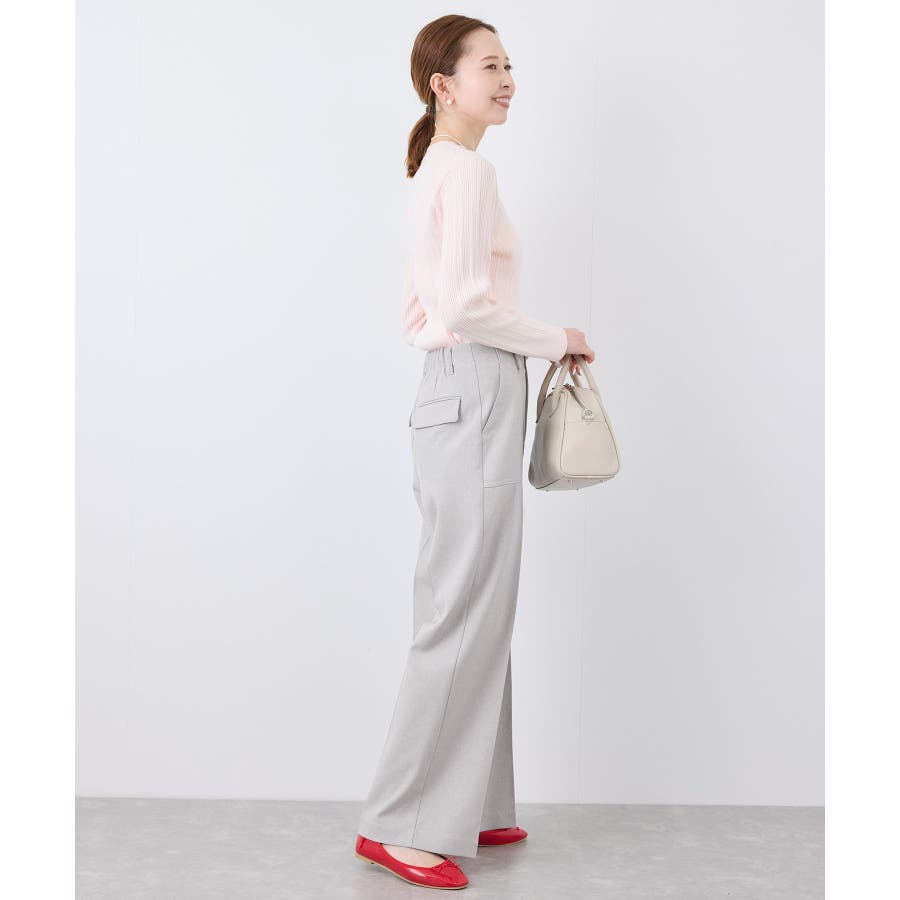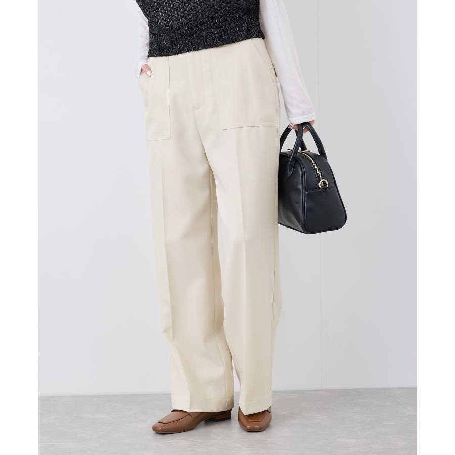 【素材感】 ・変形後の回復性能に優れたシワになりにくい素材。 ・洗濯機可能なイージー素材。 【デザイン・シルエット】 ・フロントの大きなスクエアポケットが特徴のベイカーパンツ。 ・バックスタイルは立体感のあるフラップポケットを配置。 ・センタークリース入りで、縦長のすっきりとした脚のラインを演出。 ・ベルトラインは後ろ側がギャザー使い。 【カラー】 ・カラーによって組成の混率が異なります。 グレー(07)ネイビー(40):ポリエステル 100% キナリ系(18)ピンク(63):(表地)ポリエステル 100% (裏地)ポリエステル 100% 【スタイリングポイント】 ・ハイカットスニーカー合わせがおすすめ。 ・きれいめなパンプス合わせなら大人な雰囲気に。 ・ゆるっとしたスウェットシャツやニットで抜け感をプラスして。 ----------------------------- 裏地:キナリ系(18)ピンク(63)は裏地あり、その他カラーはなし 透け感:なし 伸縮性:なし 生地感・厚さ:普通 ポケット:あり ゴム:後ろゴム 季節:春・夏・秋・冬 ----------------------------- ※撮影時の光、お使いのモニター環境によって色の見え方が違う場合がございます。 ※モデル身長:165cm 着用サイズ:38