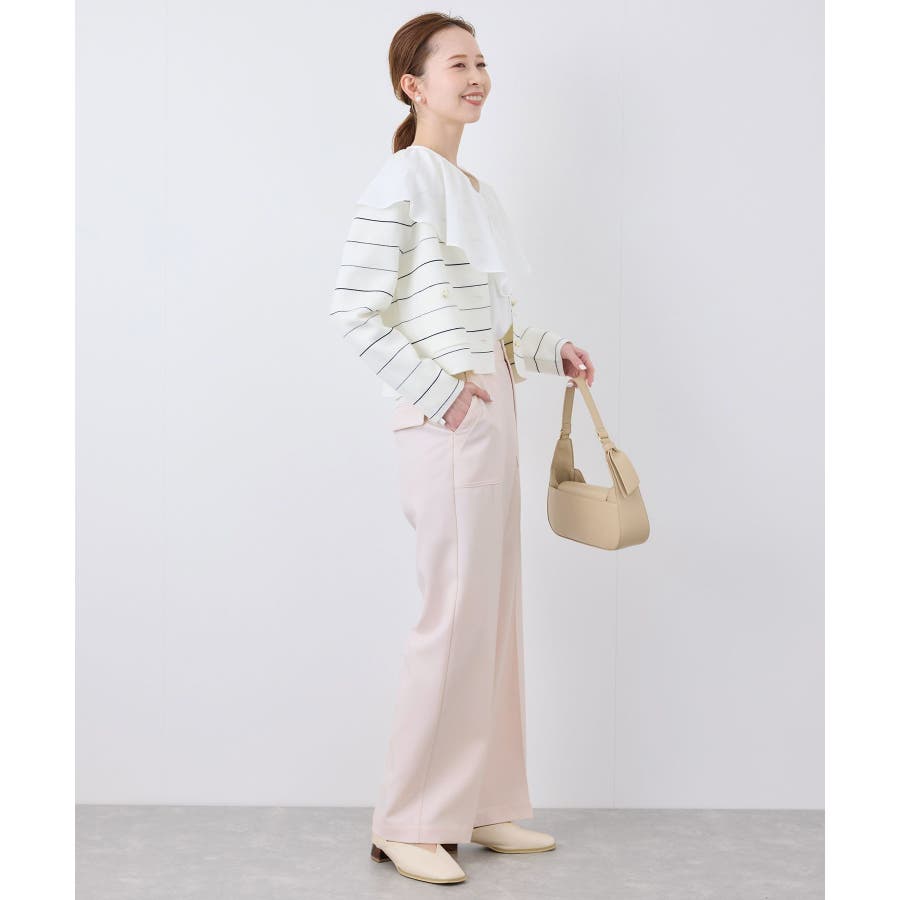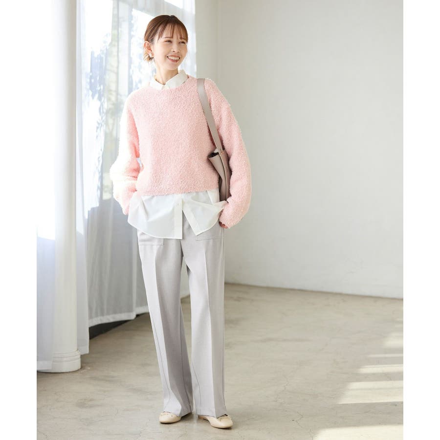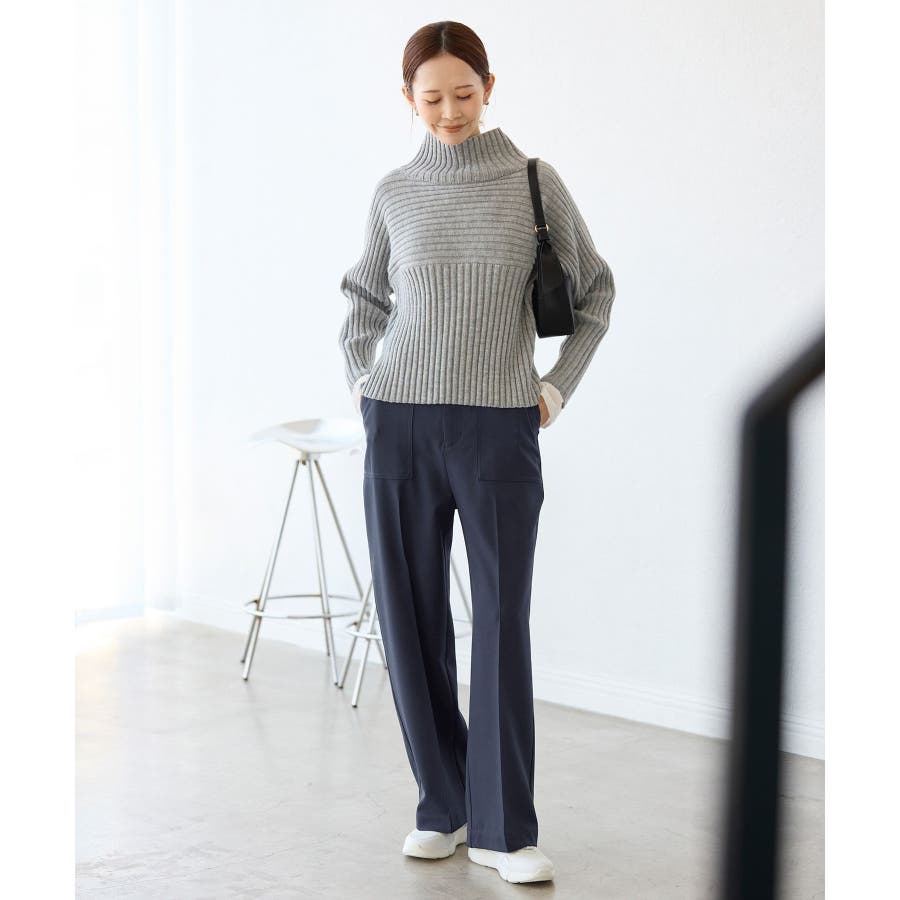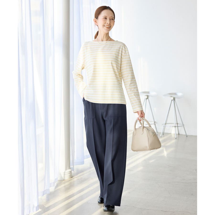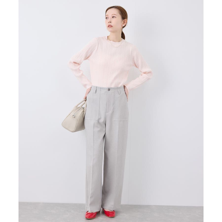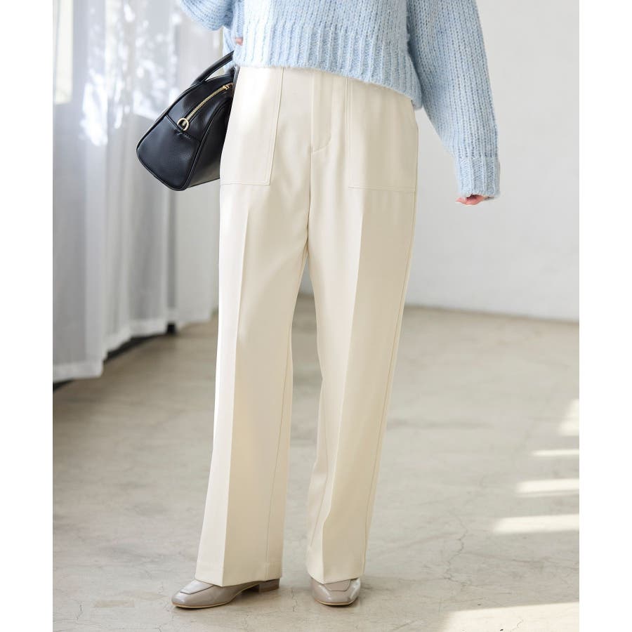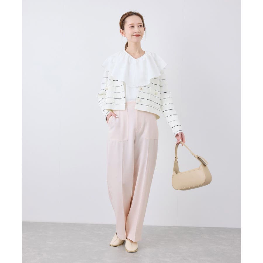 【素材感】 ・変形後の回復性能に優れたシワになりにくい素材。 ・洗濯機可能なイージー素材。 【デザイン・シルエット】 ・フロントの大きなスクエアポケットが特徴のベイカーパンツ。 ・バックスタイルは立体感のあるフラップポケットを配置。 ・センタークリース入りで、縦長のすっきりとした脚のラインを演出。 ・ベルトラインは後ろ側がギャザー使い。 【カラー】 ・カラーによって組成の混率が異なります。 グレー(07)ネイビー(40):ポリエステル 100% キナリ系(18)ピンク(63):(表地)ポリエステル 100% (裏地)ポリエステル 100% 【スタイリングポイント】 ・ハイカットスニーカー合わせがおすすめ。 ・きれいめなパンプス合わせなら大人な雰囲気に。 ・ゆるっとしたスウェットシャツやニットで抜け感をプラスして。 ----------------------------- 裏地:キナリ系(18)ピンク(63)は裏地あり、その他カラーはなし 透け感:なし 伸縮性:なし 生地感・厚さ:普通 ポケット:あり ゴム:後ろゴム 季節:春・夏・秋・冬 ----------------------------- ※撮影時の光、お使いのモニター環境によって色の見え方が違う場合がございます。 ※モデル身長:165cm 着用サイズ:38