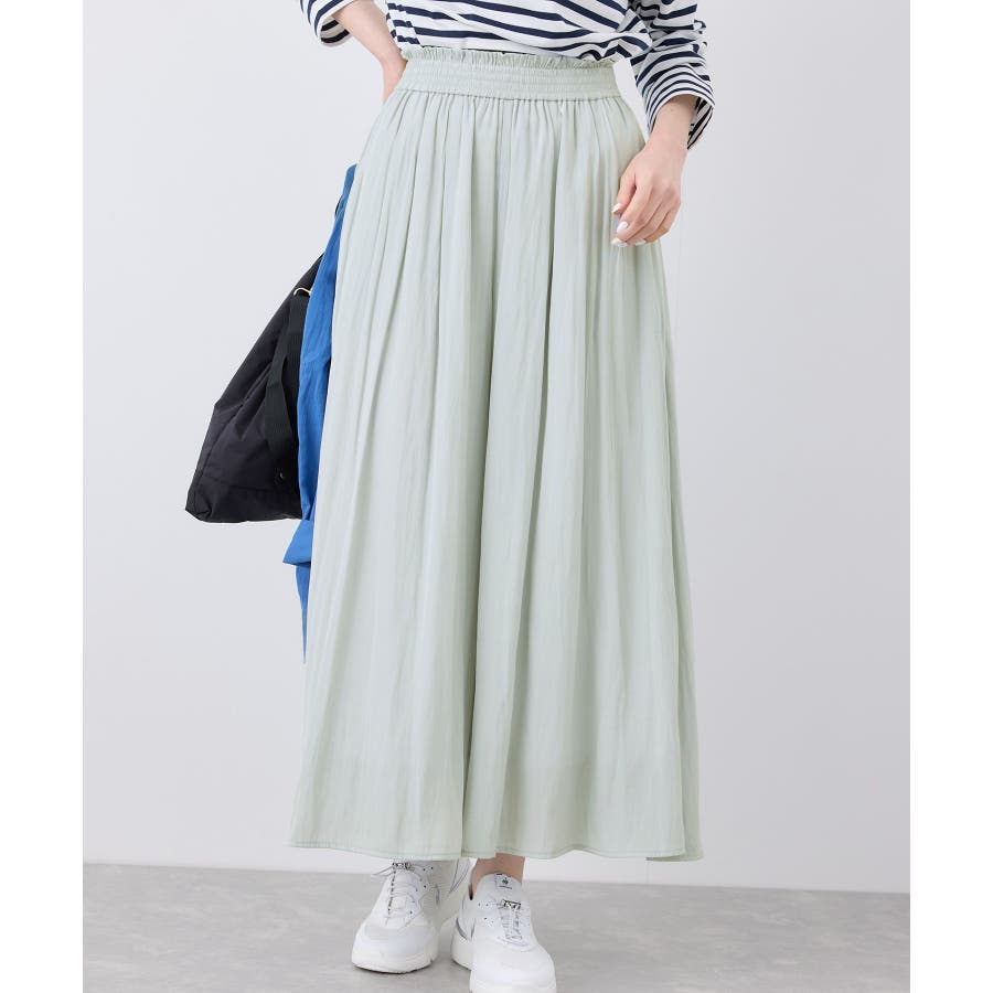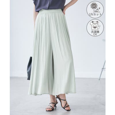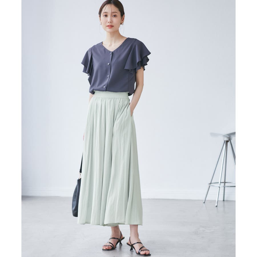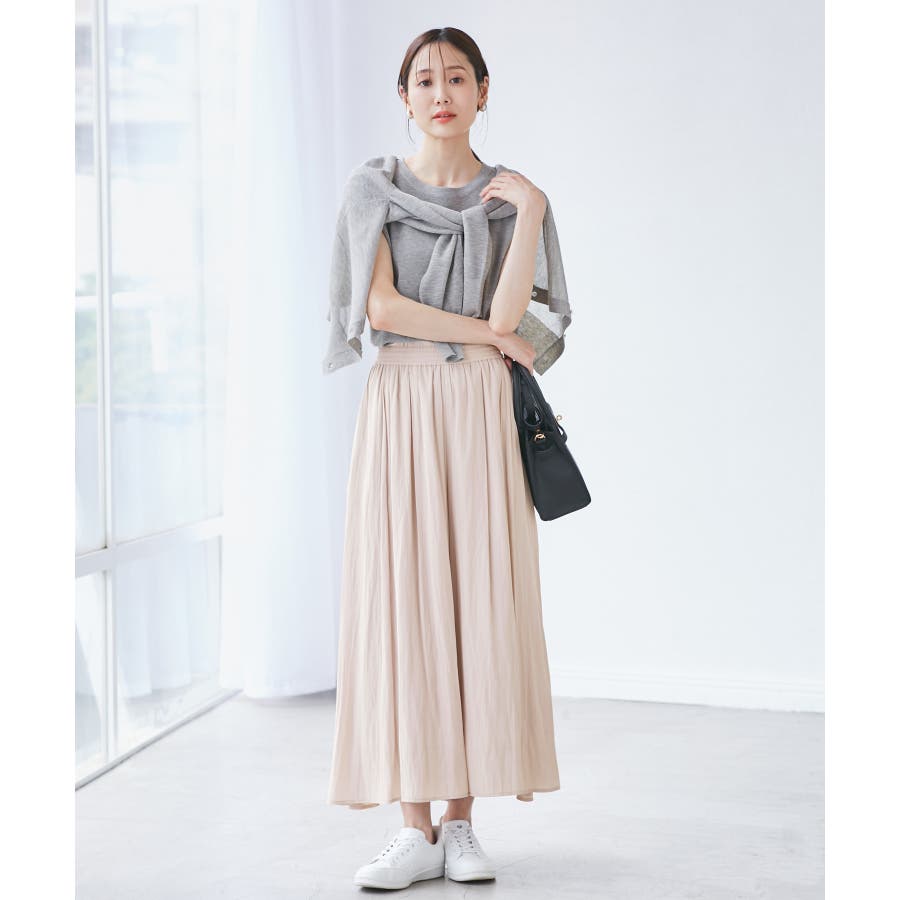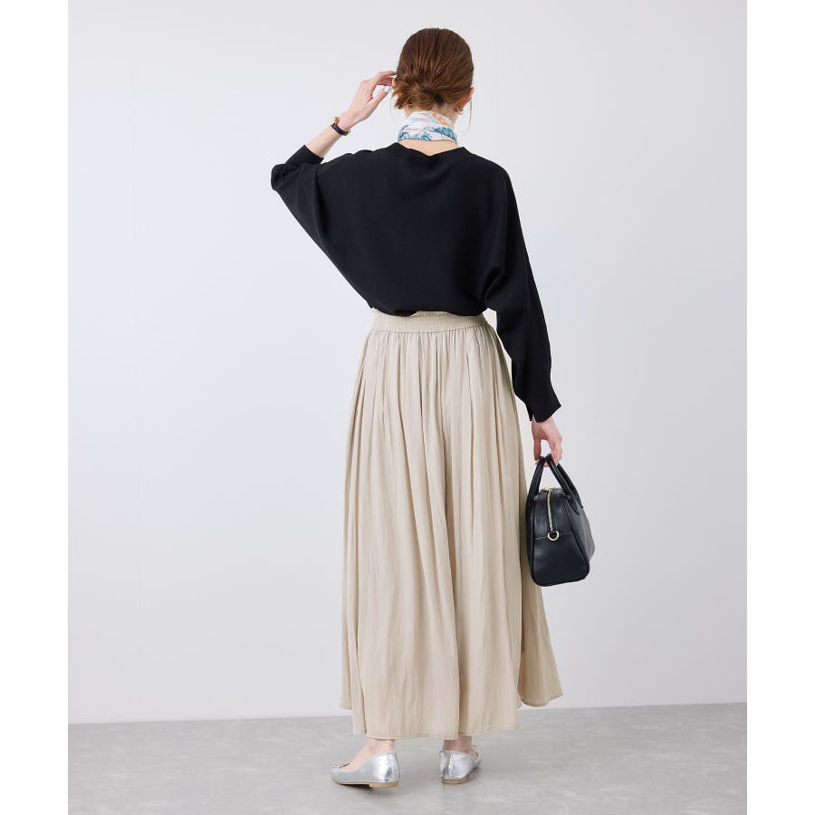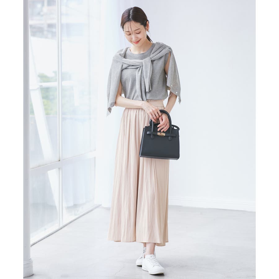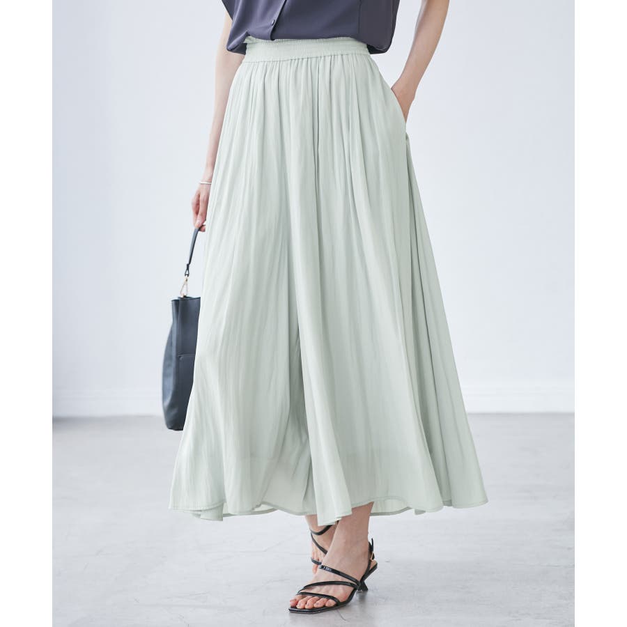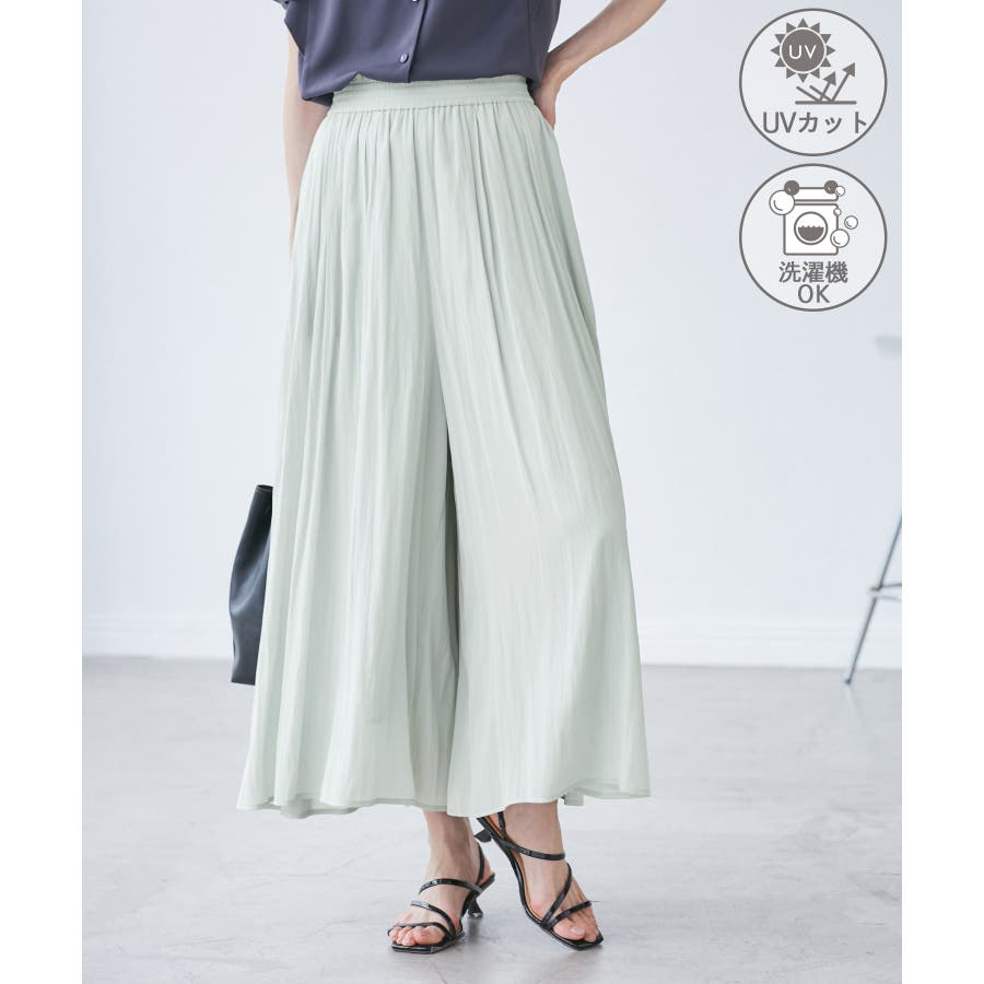 ボディラインを拾わないスカート見えするパンツで、ドレープ感が映えるなめらかなとろみ素材です。
