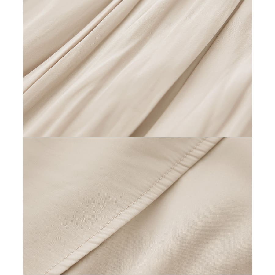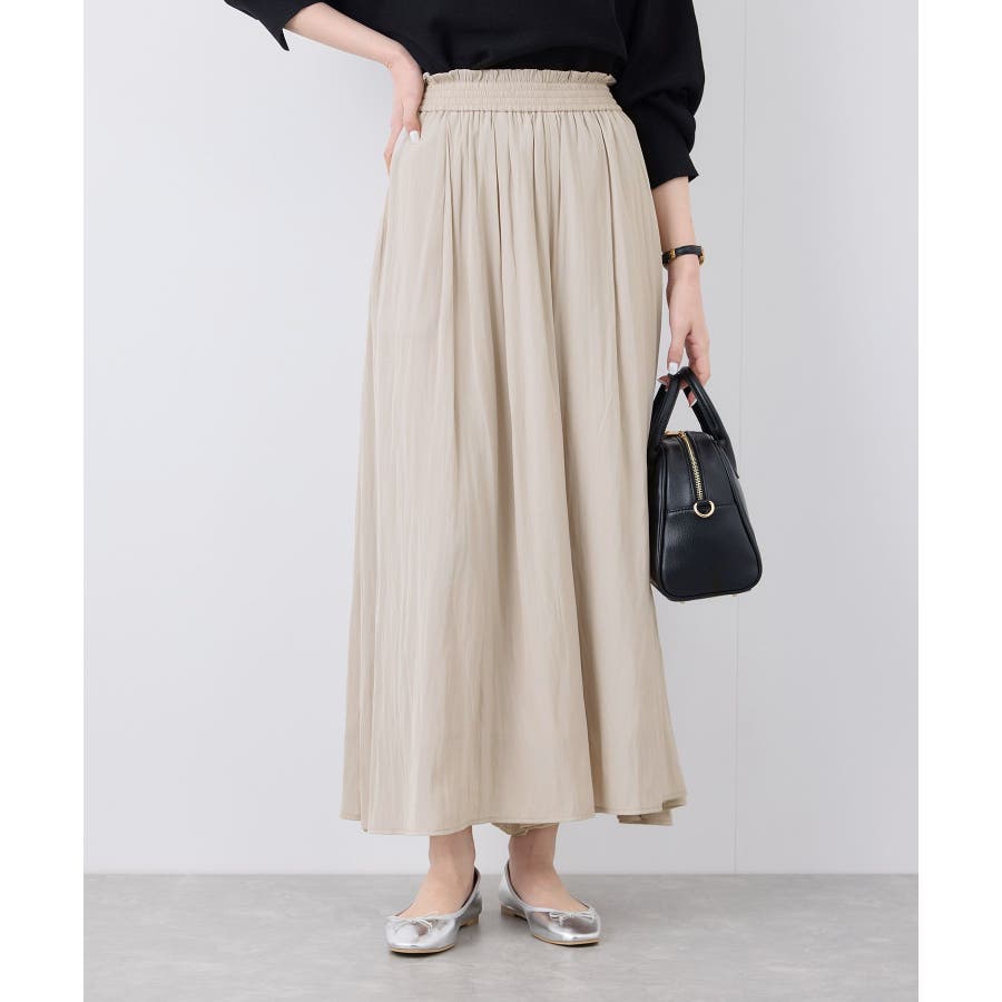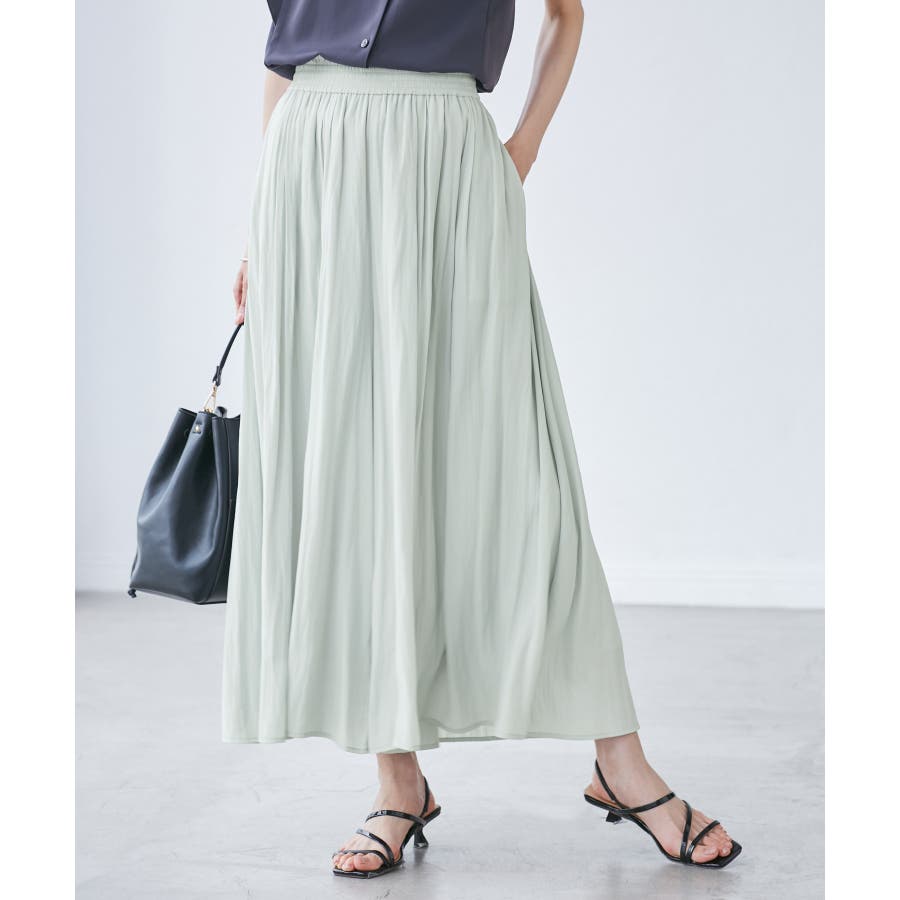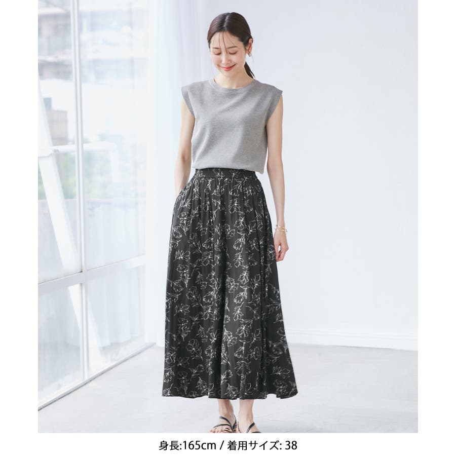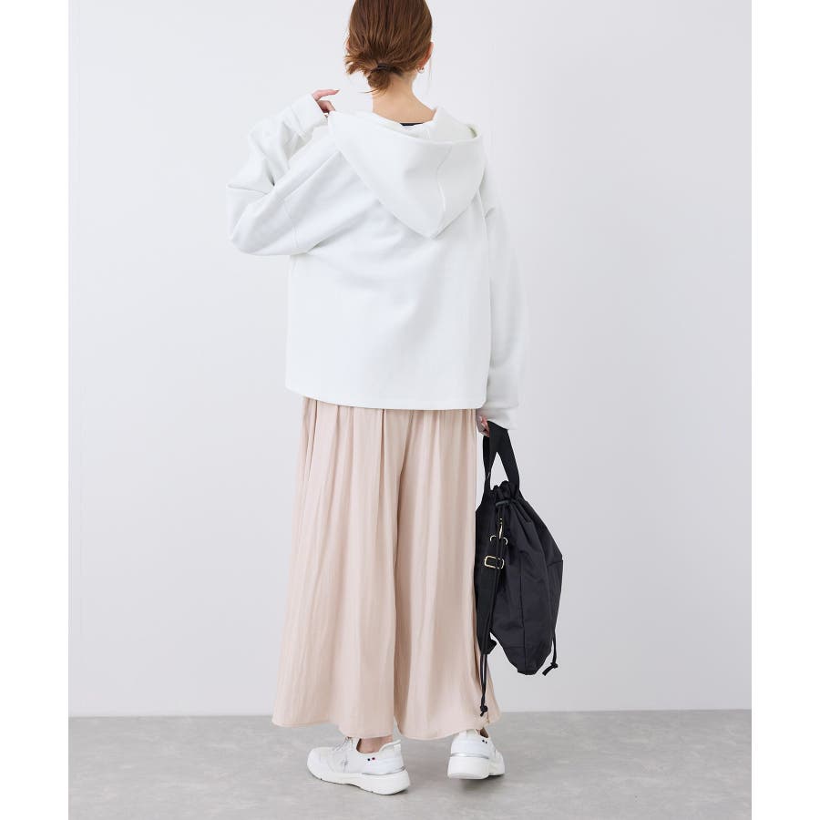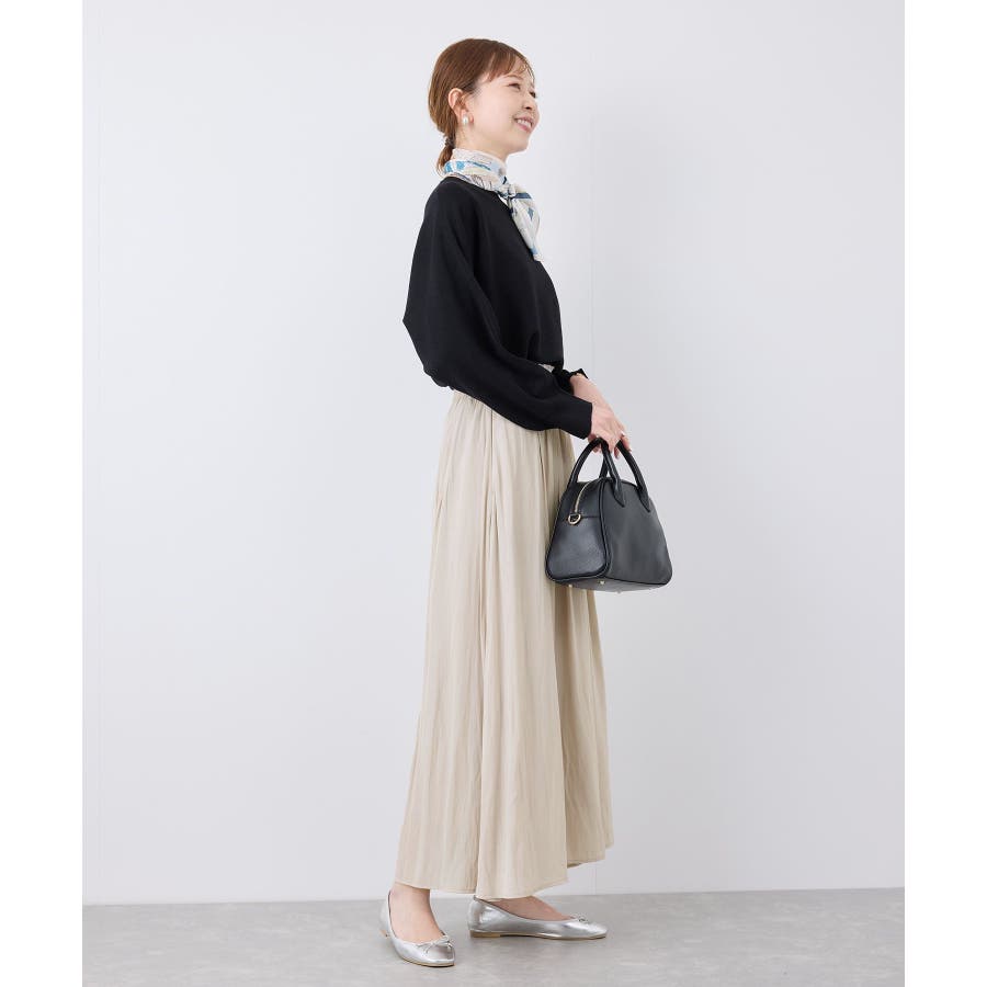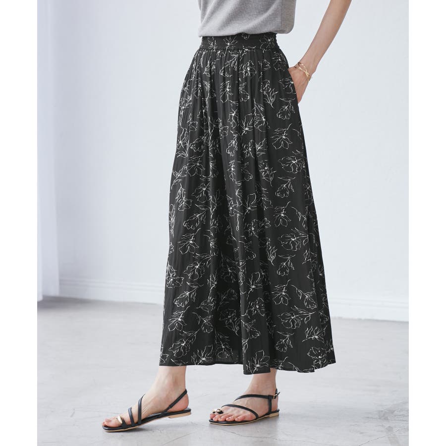 ボディラインを拾わないスカート見えするパンツで、ドレープ感が映えるなめらかなとろみ素材です。