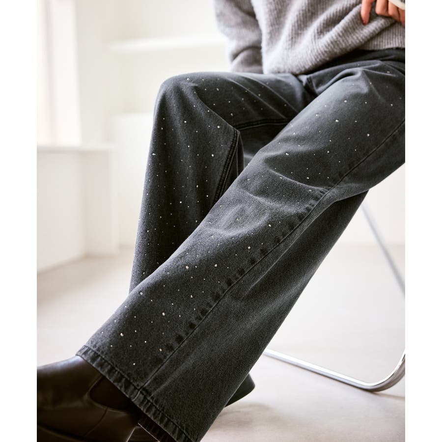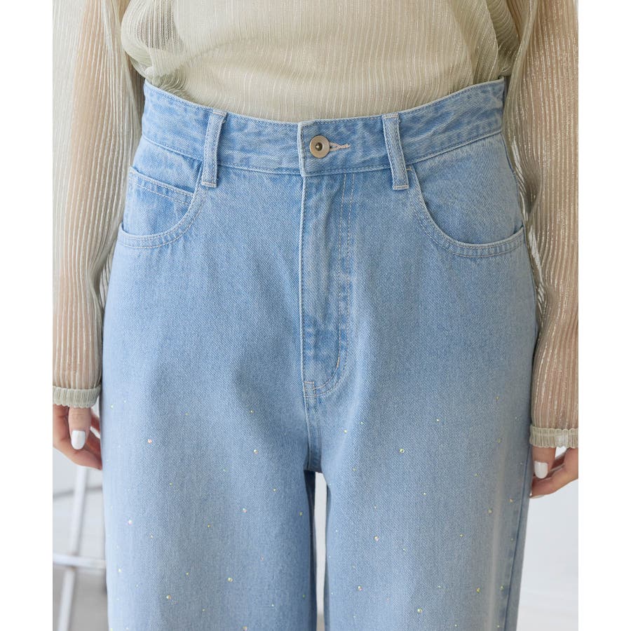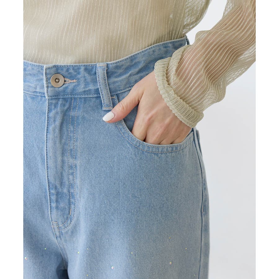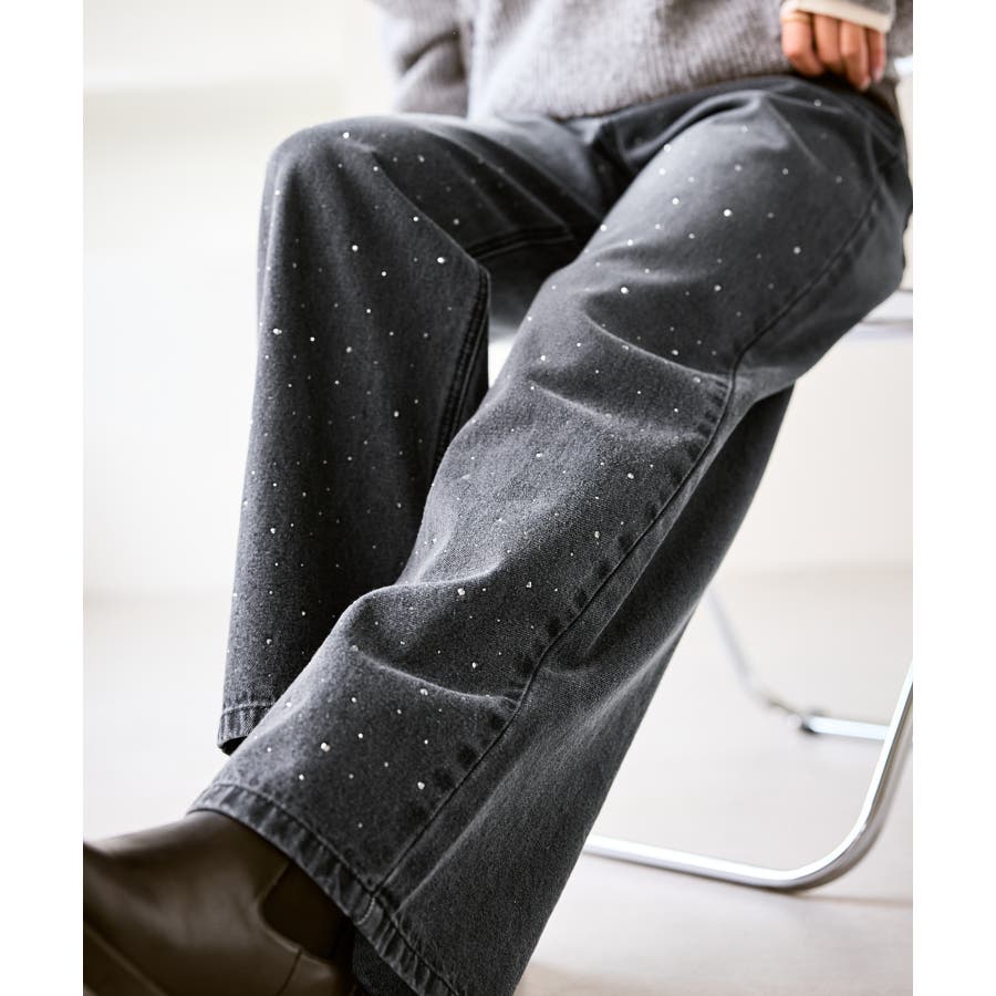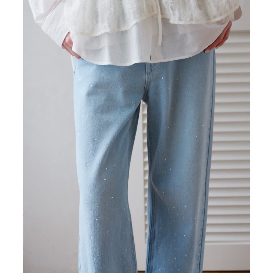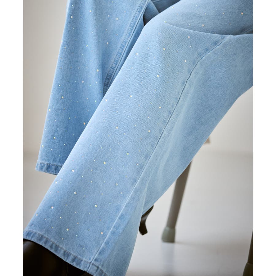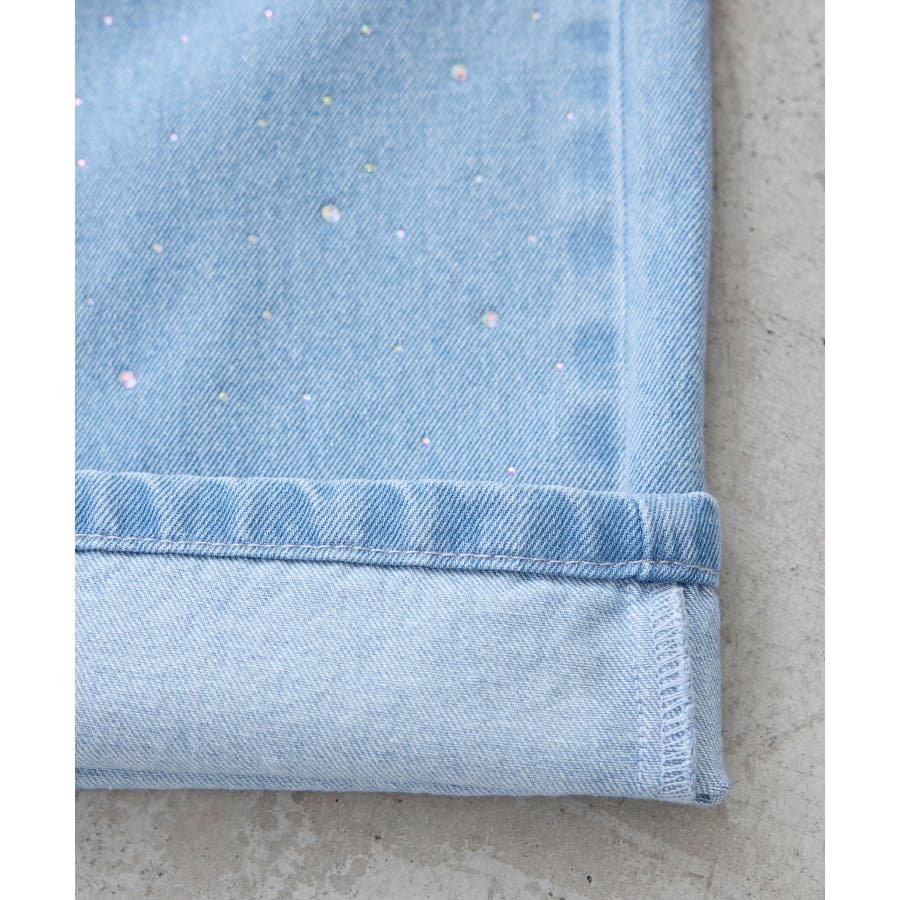 ・きらめくビジューを散りばめたゴージャスなデニムパンツ。