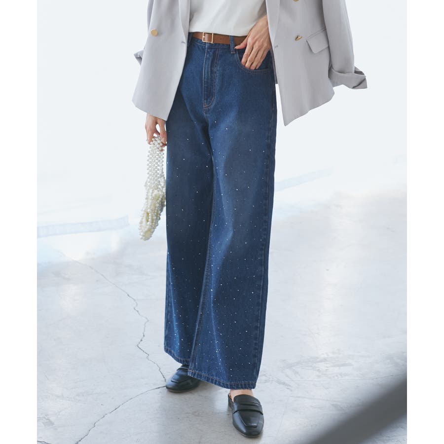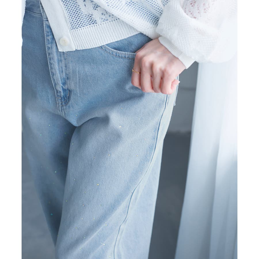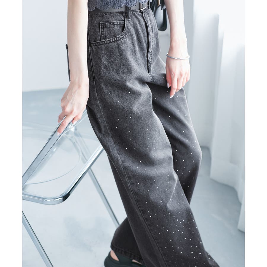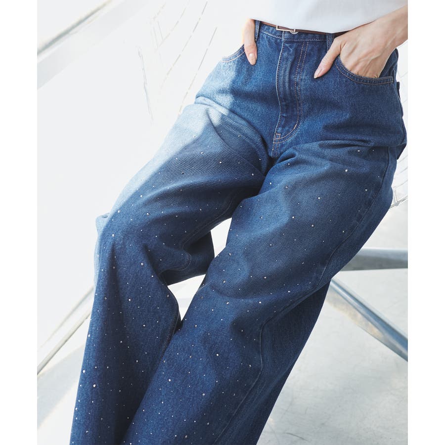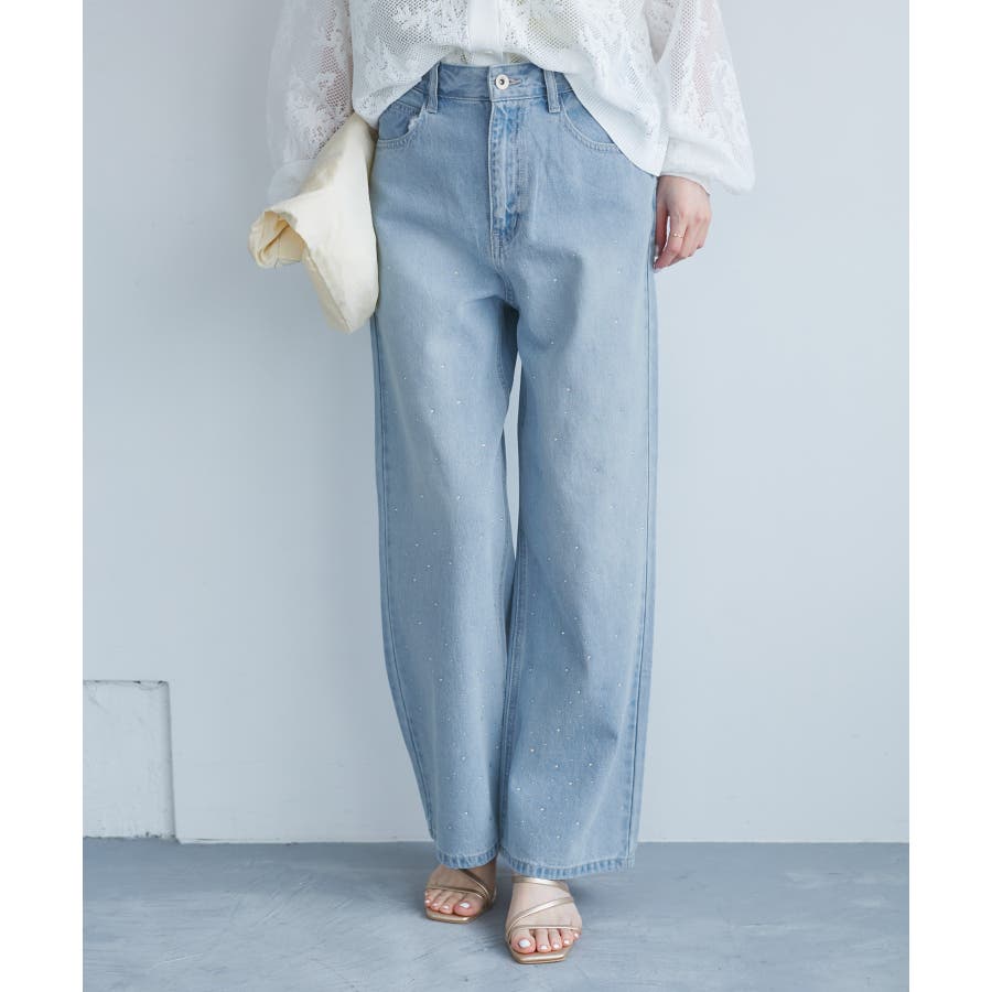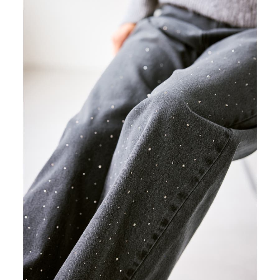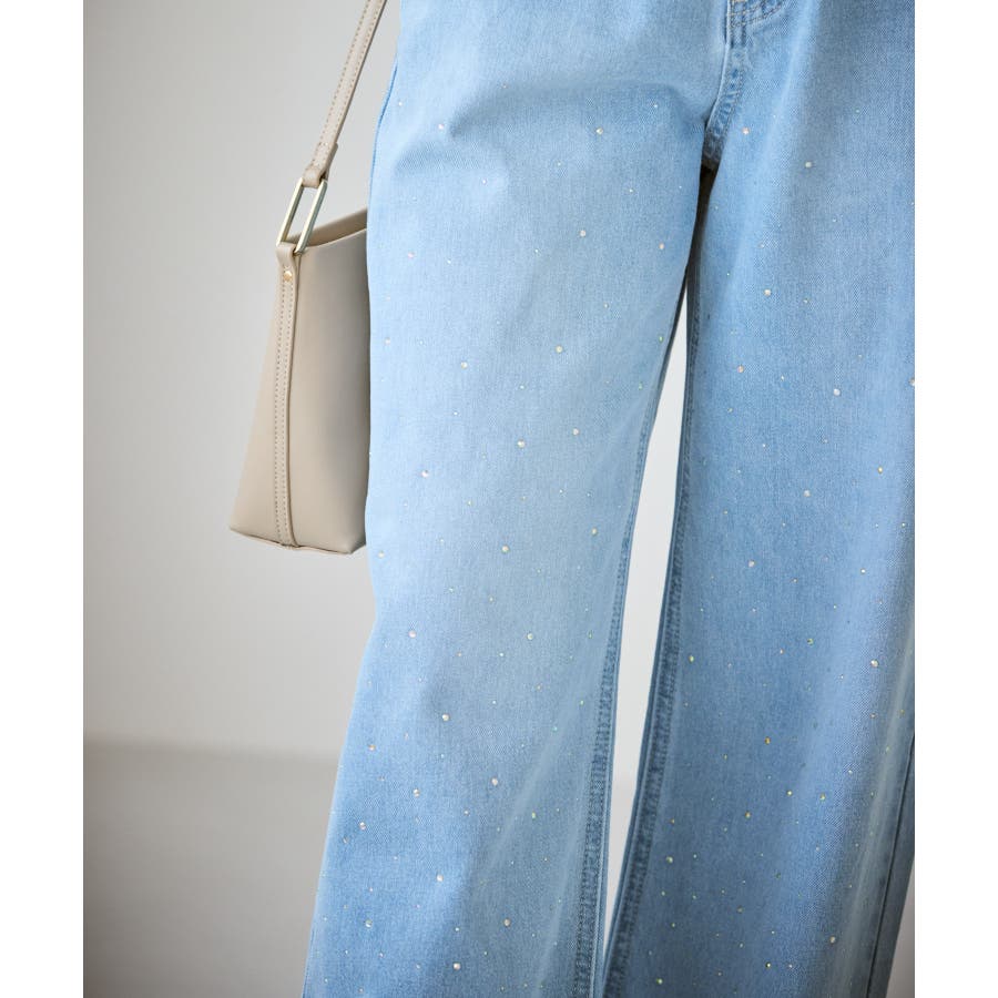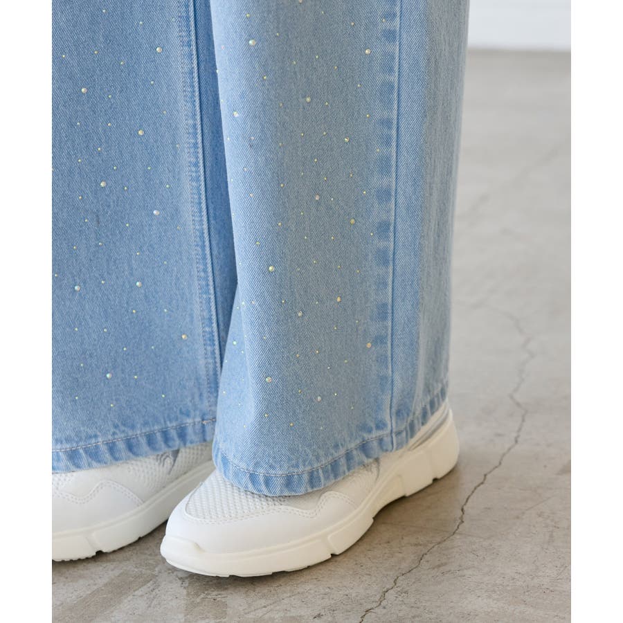 ・きらめくビジューを散りばめたゴージャスなデニムパンツ。
