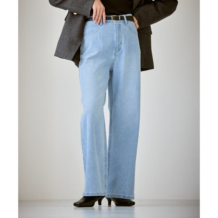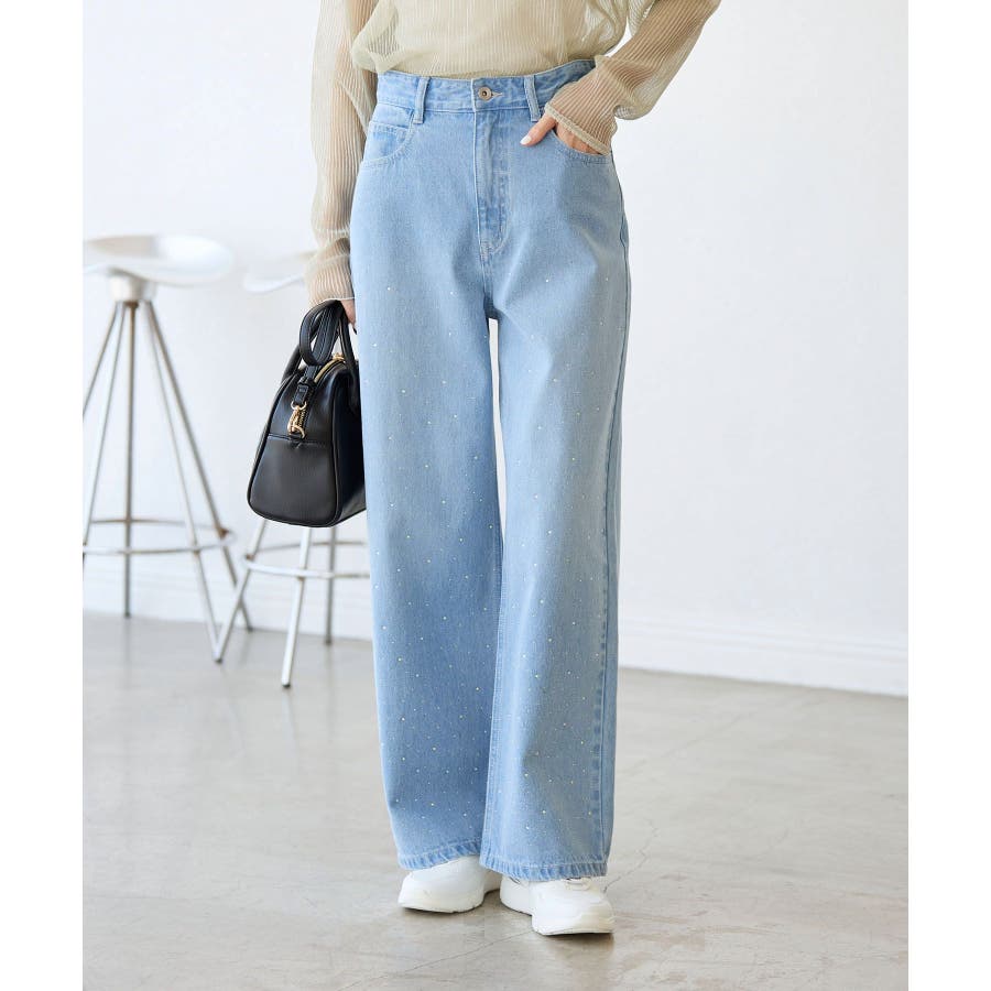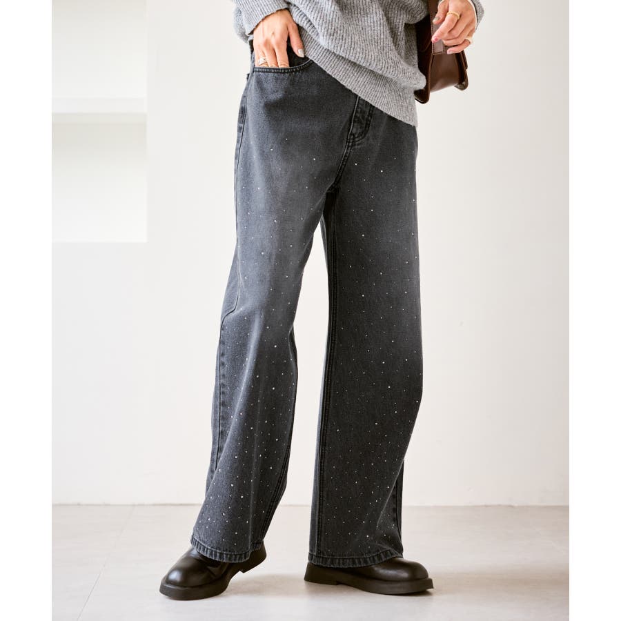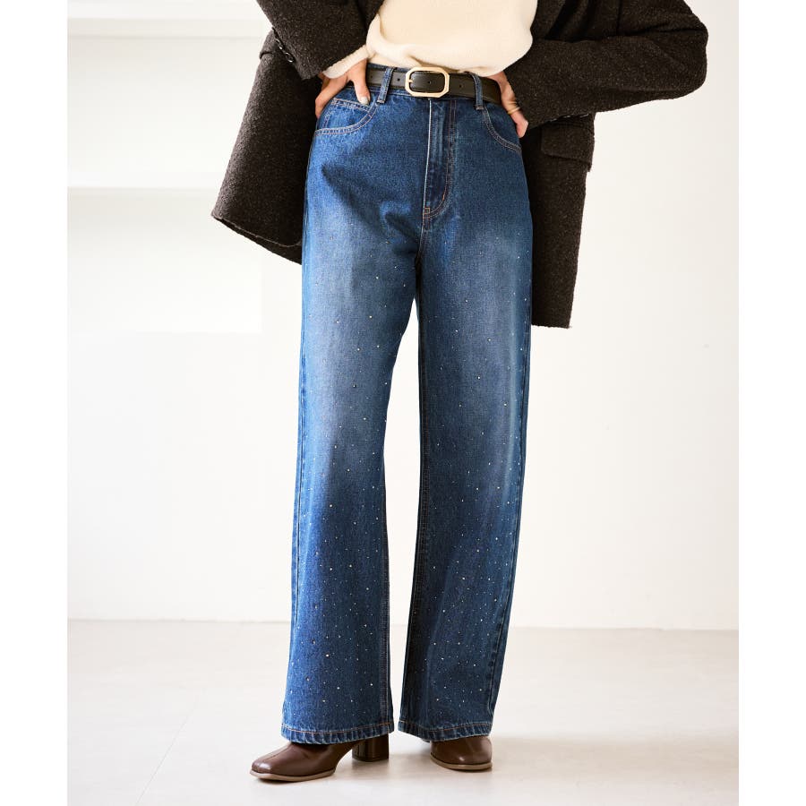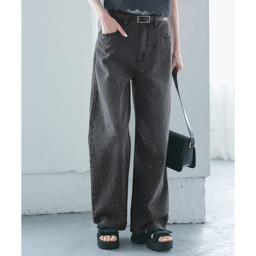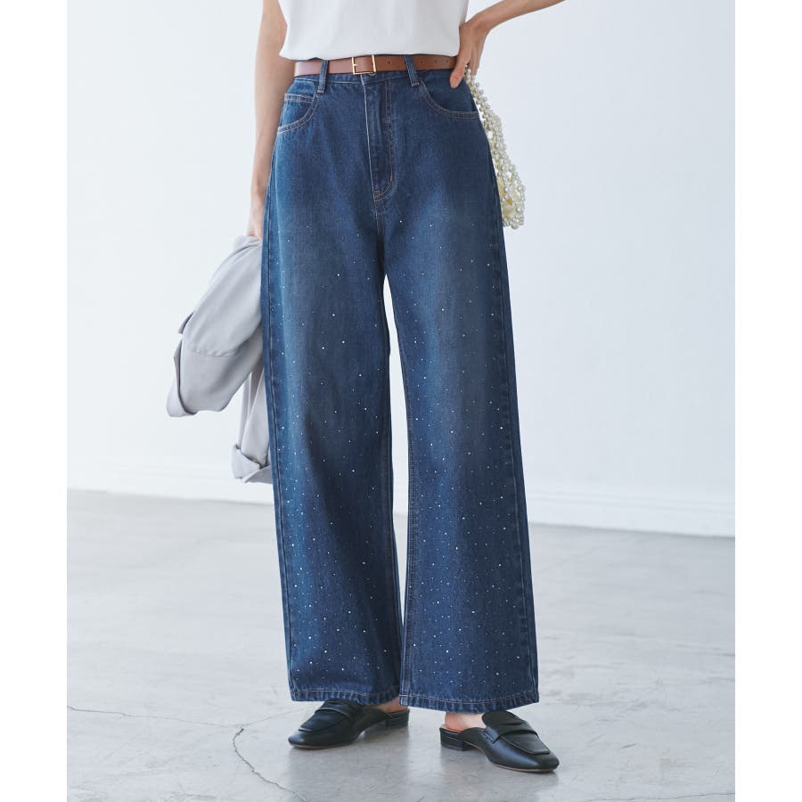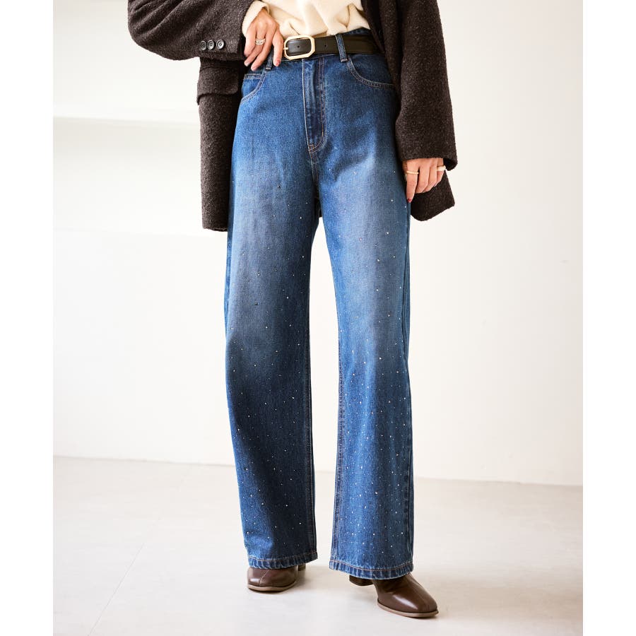 ・きらめくビジューを散りばめたゴージャスなデニムパンツ。