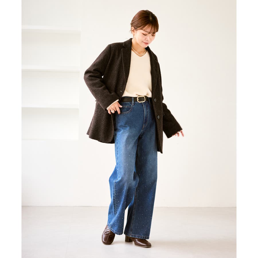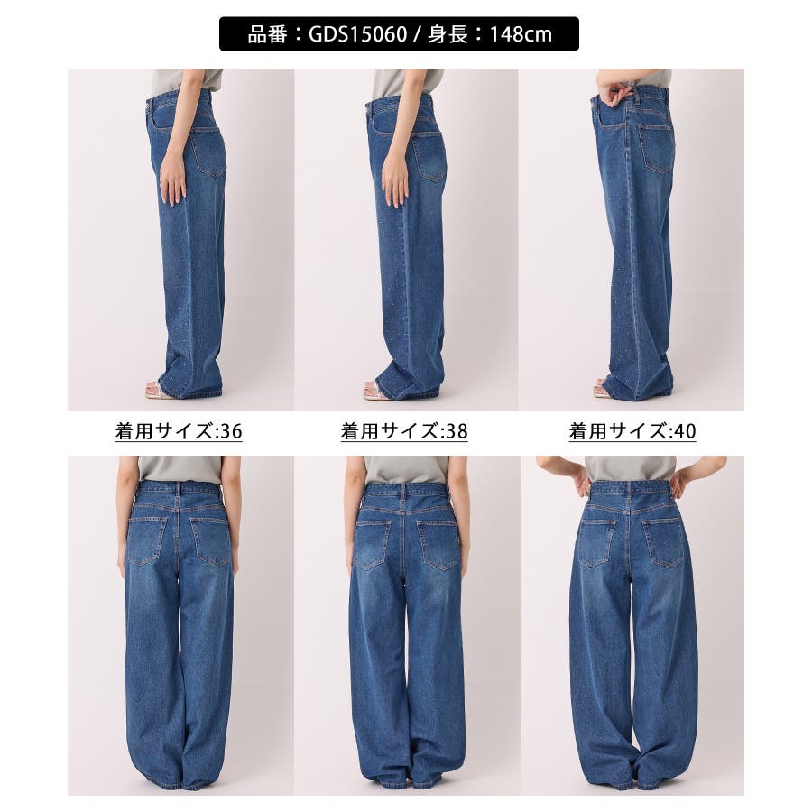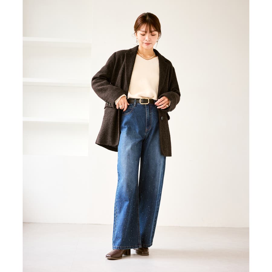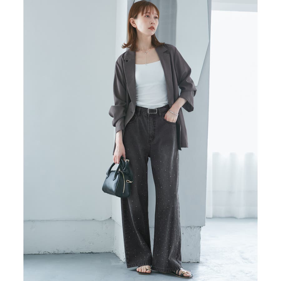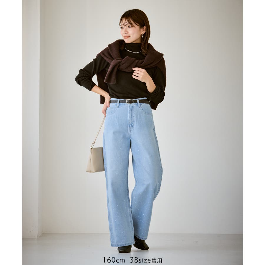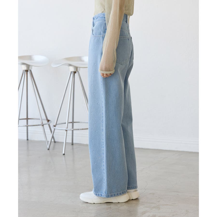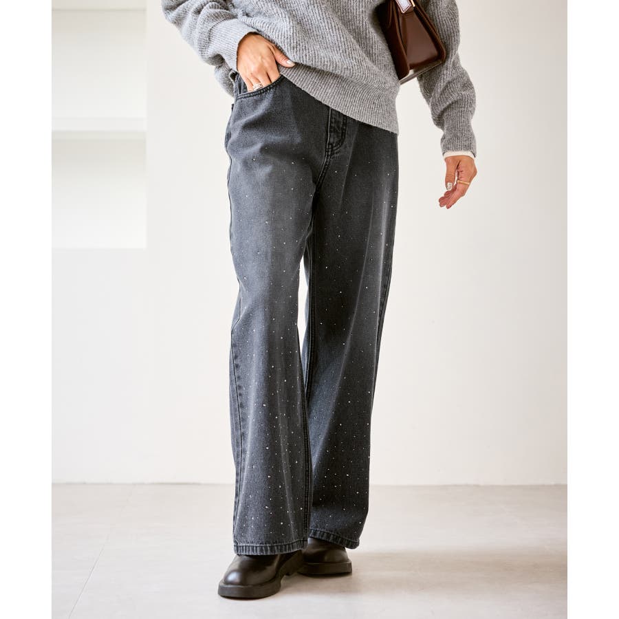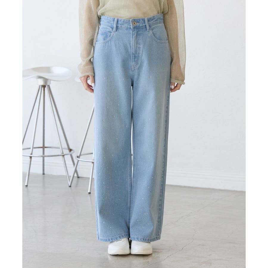 ・きらめくビジューを散りばめたゴージャスなデニムパンツ。